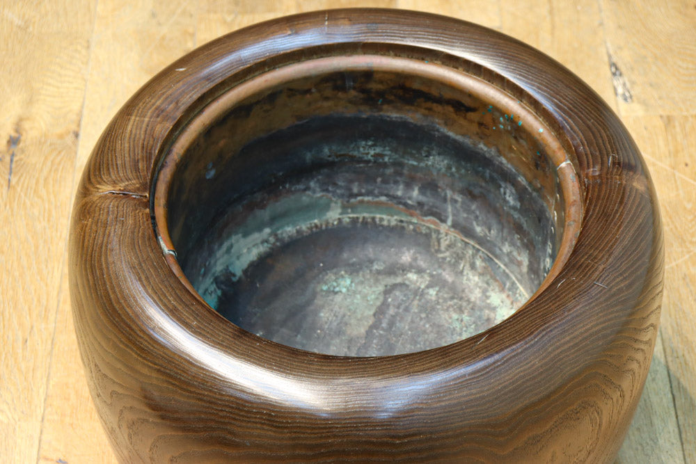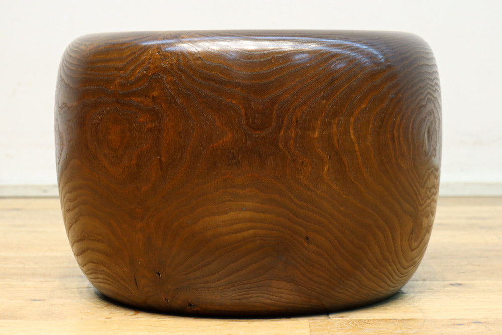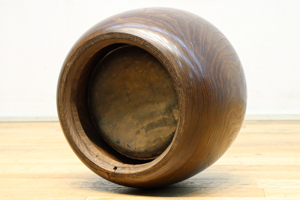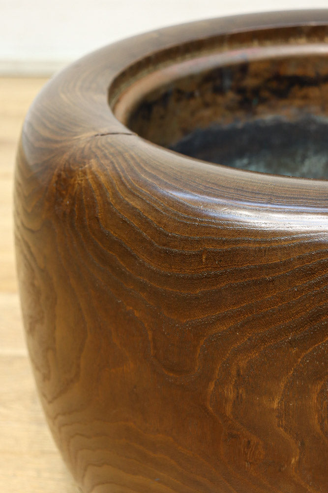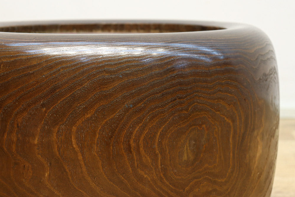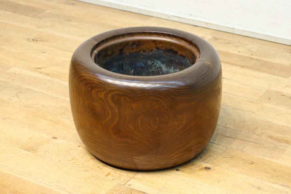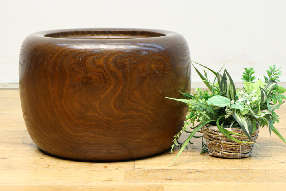 杢目が素晴らしい重厚感のある木製の丸火鉢 DC8274