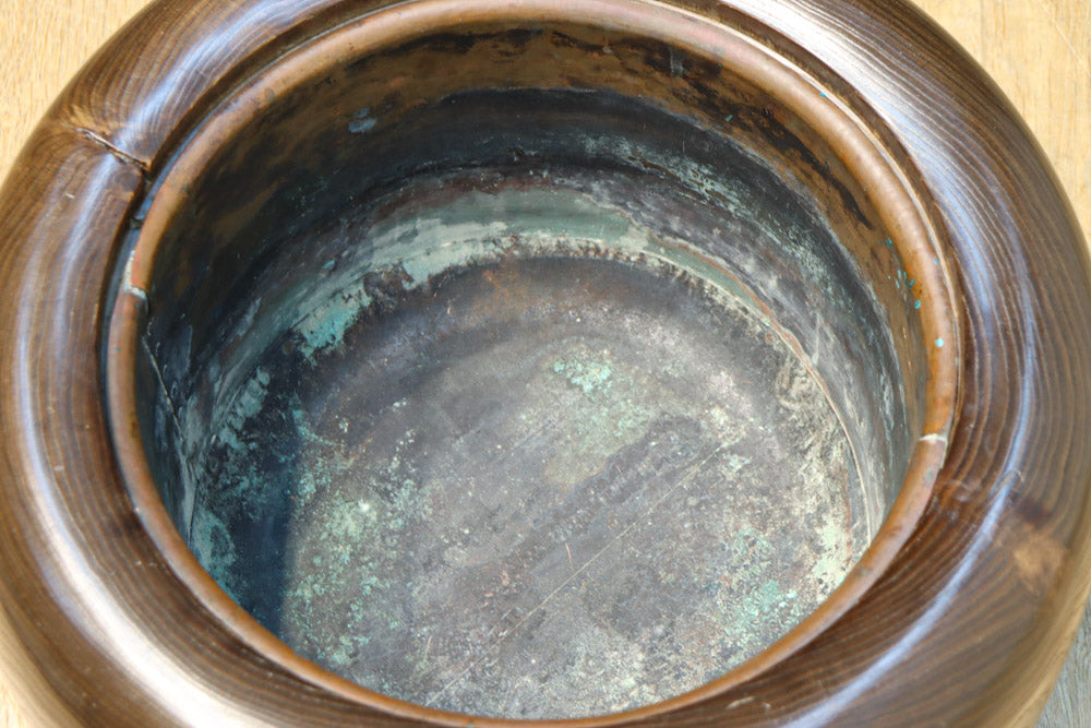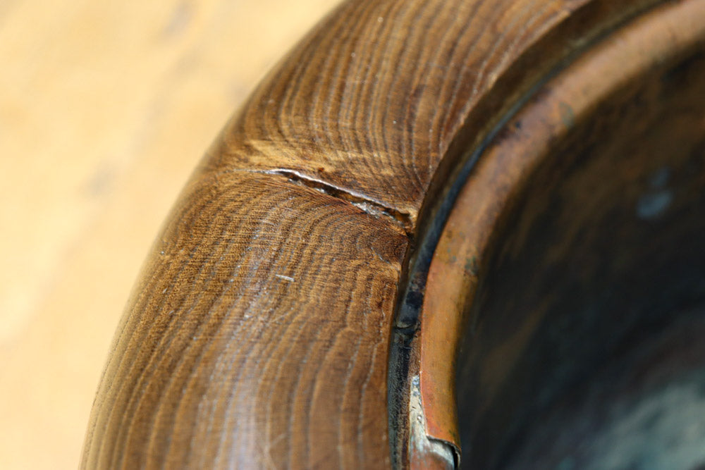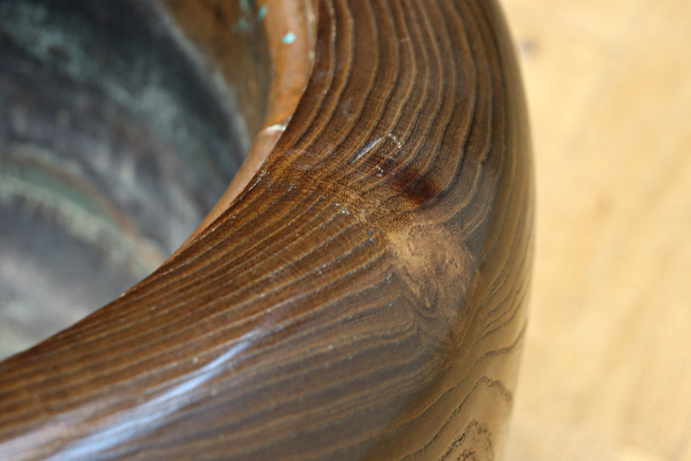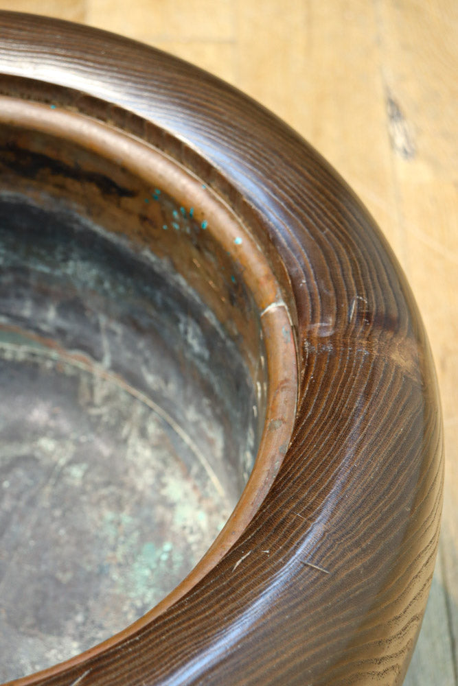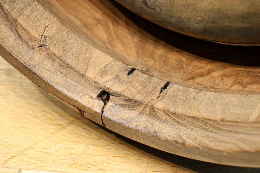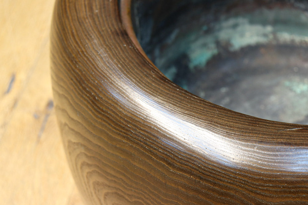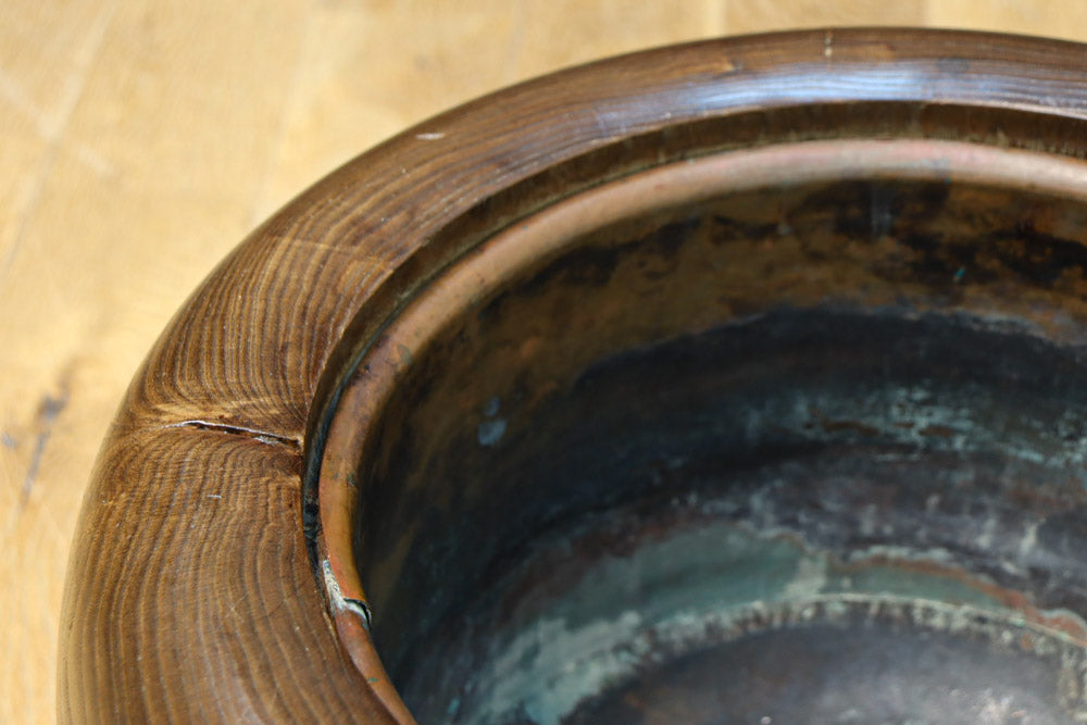 杢目が素晴らしい重厚感のある木製の丸火鉢 DC8274