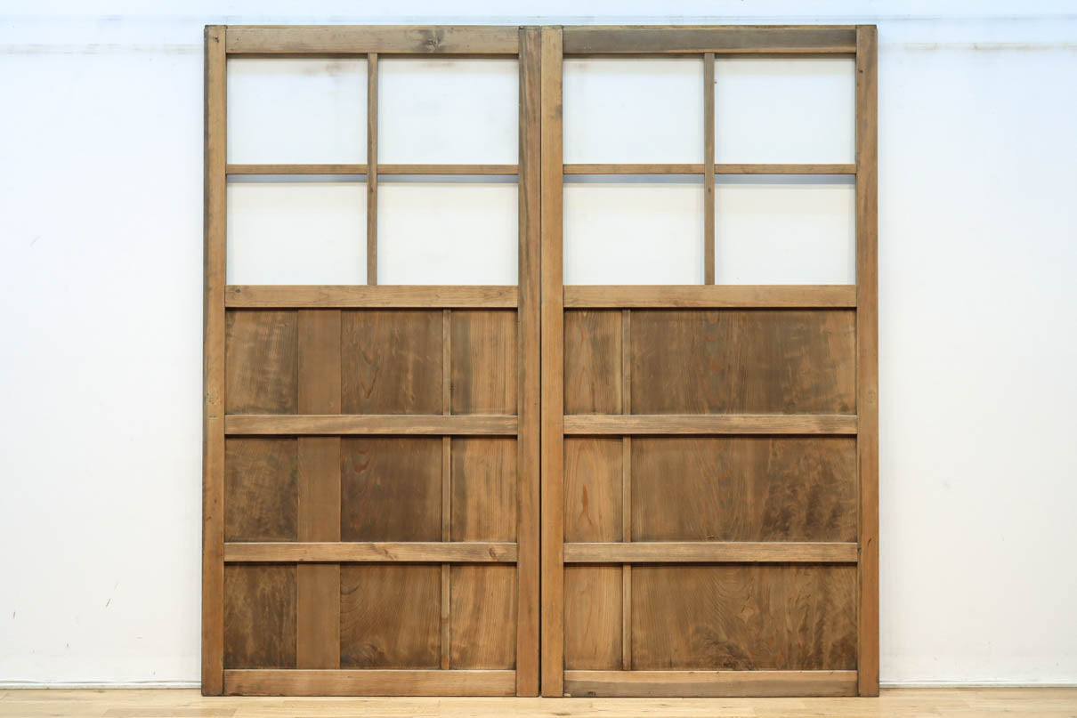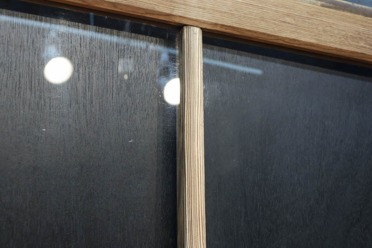 幅904ミリ 時代感溢れる懐かしい木地色のガラス戸 F8390 在庫2枚