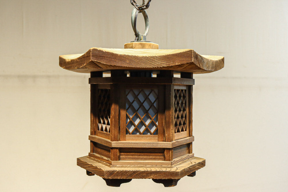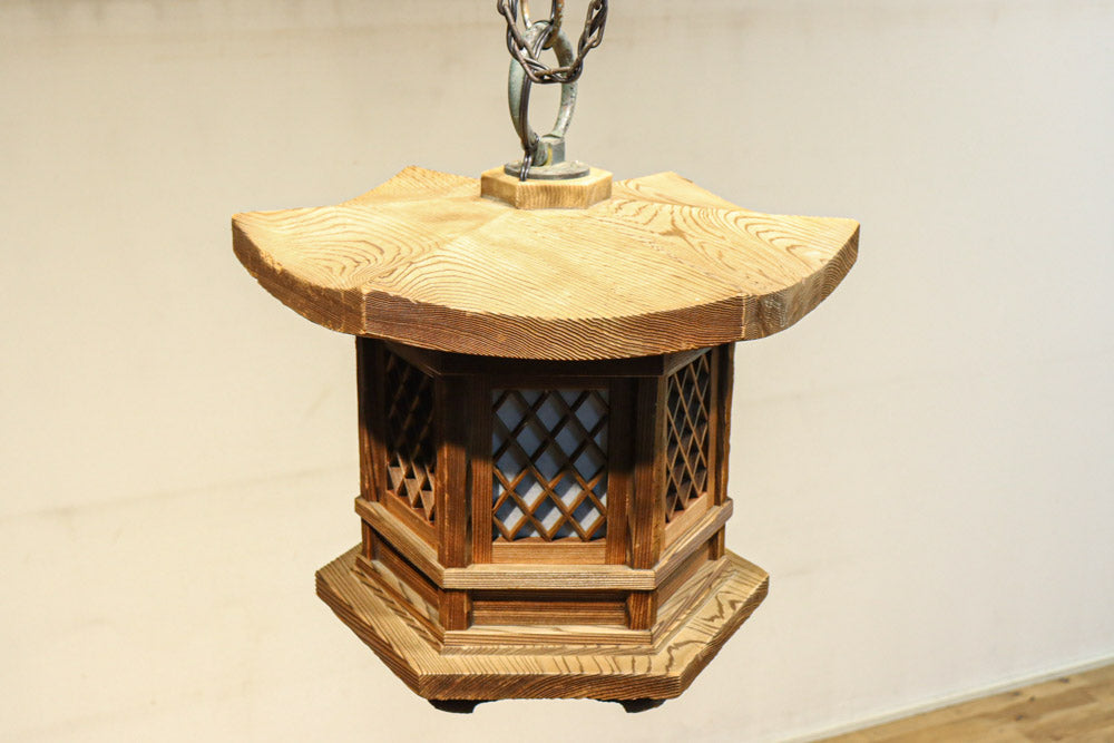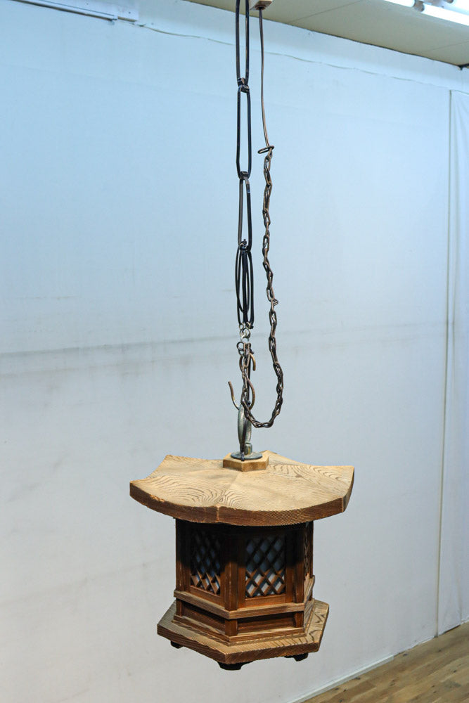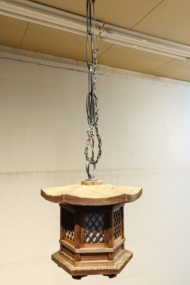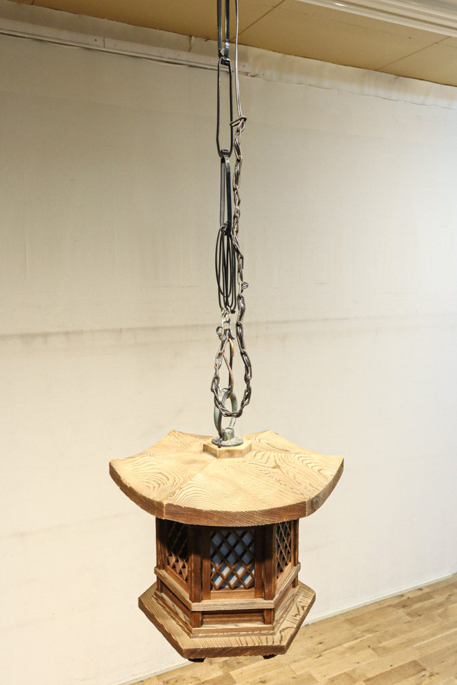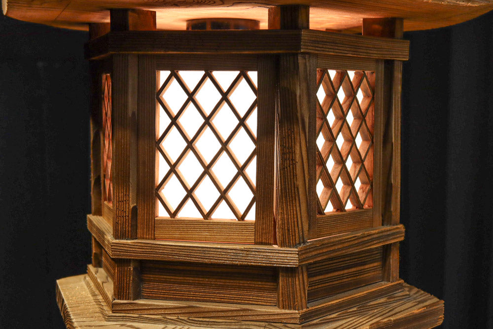 珍品!! 自然の風合いが温かみある木製の灯籠 DC8327