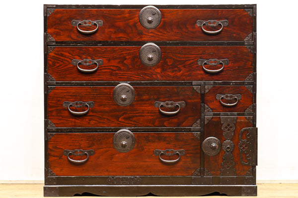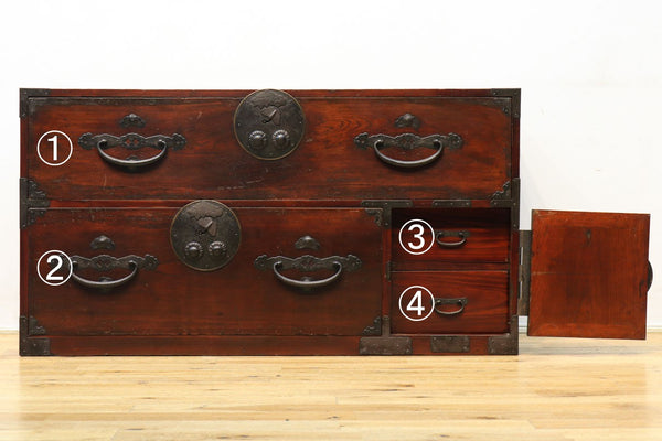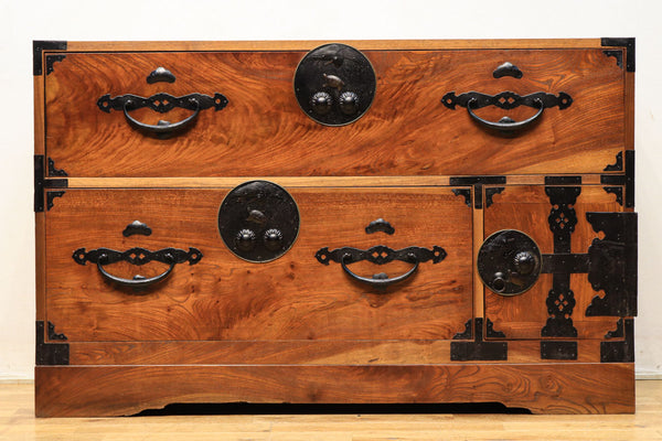 時代の貫禄を纏うアイアンフレーム付き佐渡帳場箪笥 BB3154