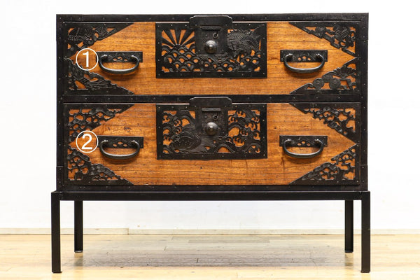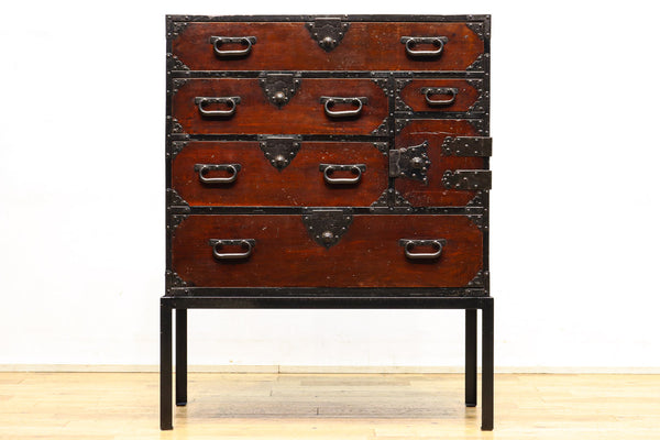 美しい艶色が存在感を放つアイアンフレーム付き庄内枕箪笥 BB3165