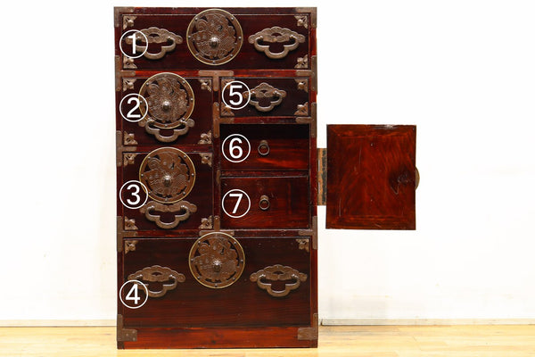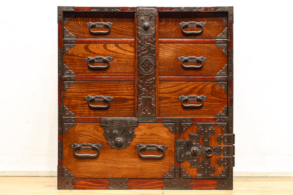縁起の良い装飾金具に覆われたアイアンフレーム付き衣裳箪笥 BB3286