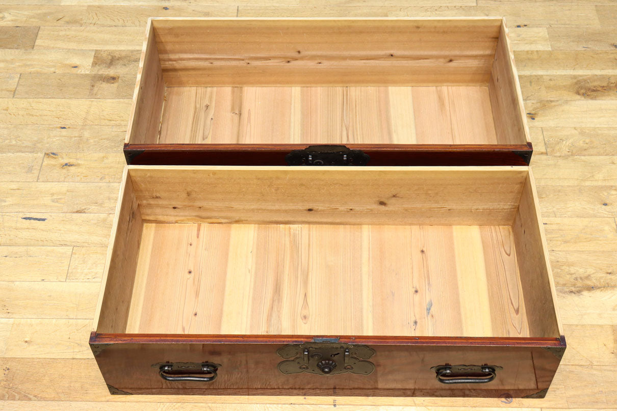 優美な杢目と装飾金具で味わいのある庄内衣裳箪笥 BB3108