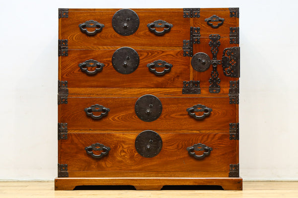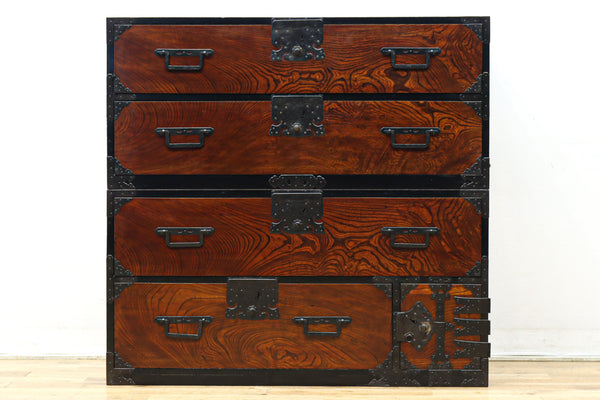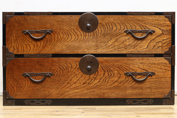時代の貫禄を纏うアイアンフレーム付き佐渡帳場箪笥 BB3154