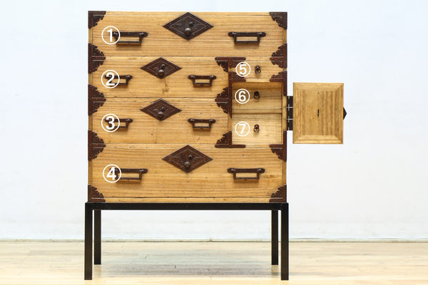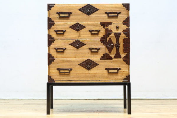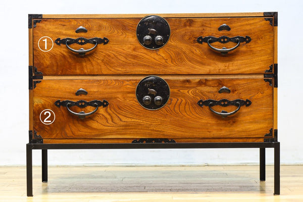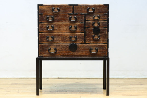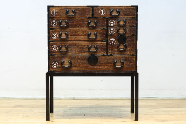 美しい艶色が存在感を放つアイアンフレーム付き庄内枕箪笥 BB3165