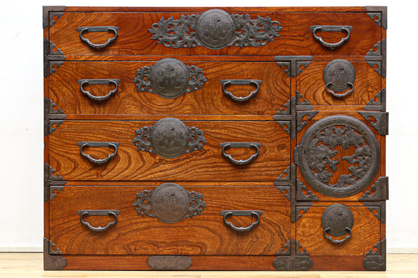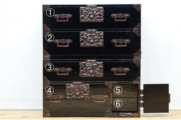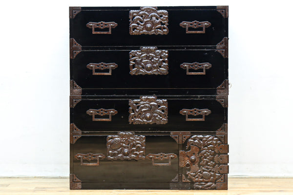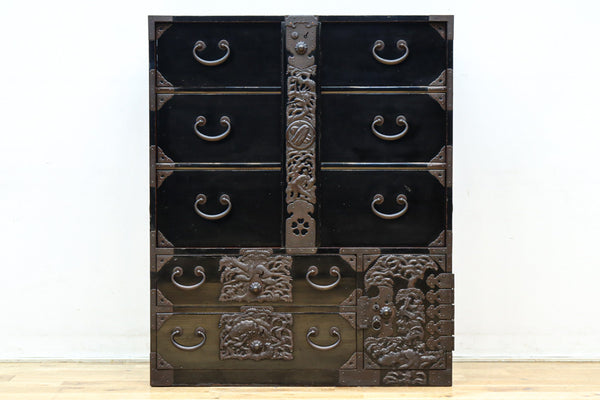 縁起の良い装飾金具に覆われたアイアンフレーム付き衣裳箪笥 BB3286