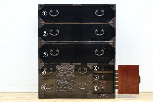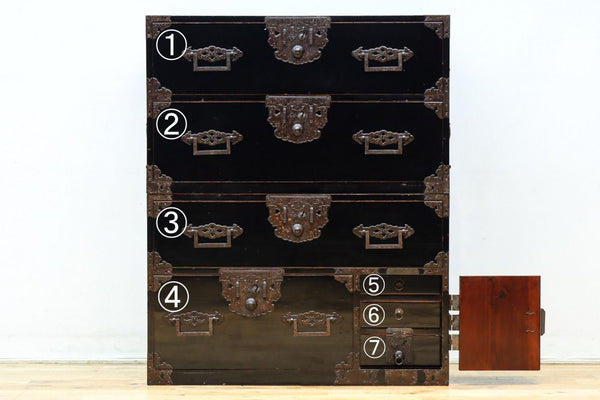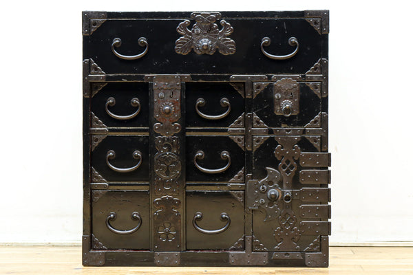 黒漆で装飾金具を引き立てる格調高い枕箪笥 BB3281