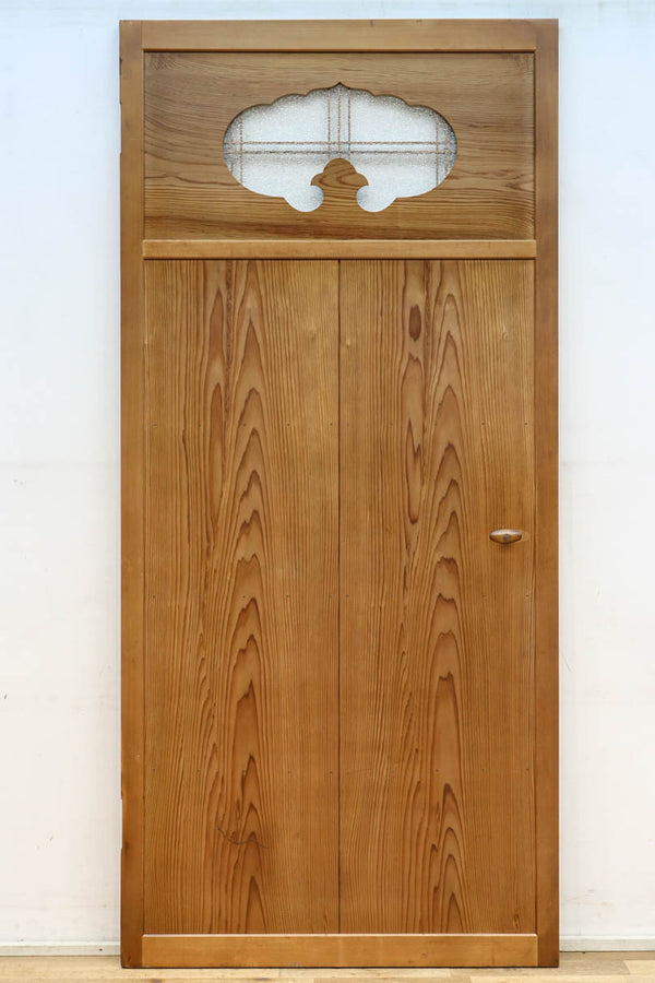 幅840ミリ 障子入りの小窓が風流な片面ワーロン入り上品な柾目板戸 F8551 在庫2枚