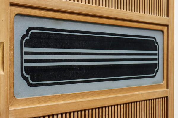 幅888ミリ 腰板の年輪の模様が美しいスリガラス入り大阪格子戸 F8525 在庫2枚