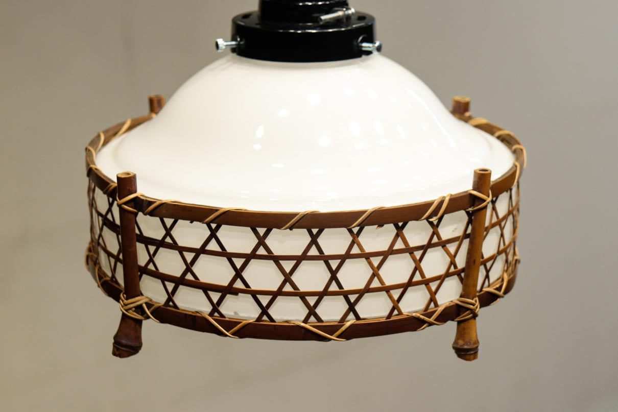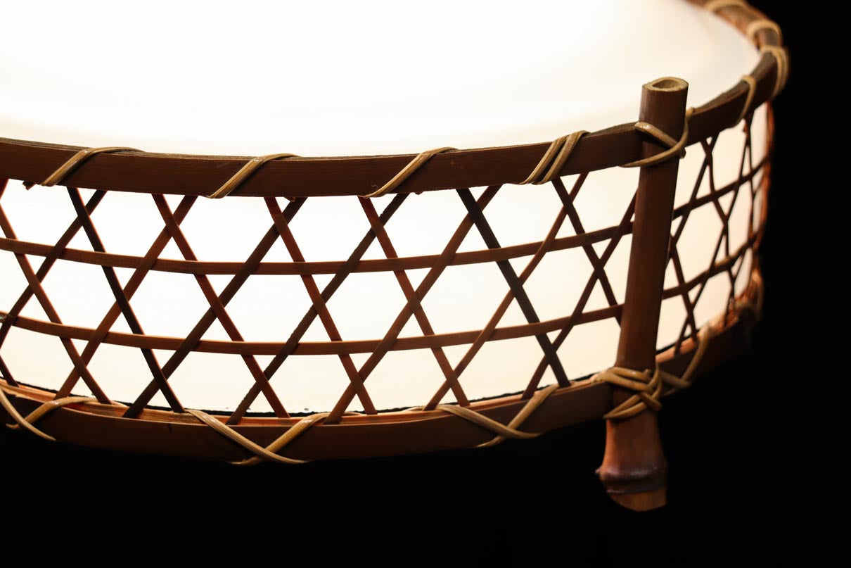 籠目模様の格子を備えた竹製フレームで囲って