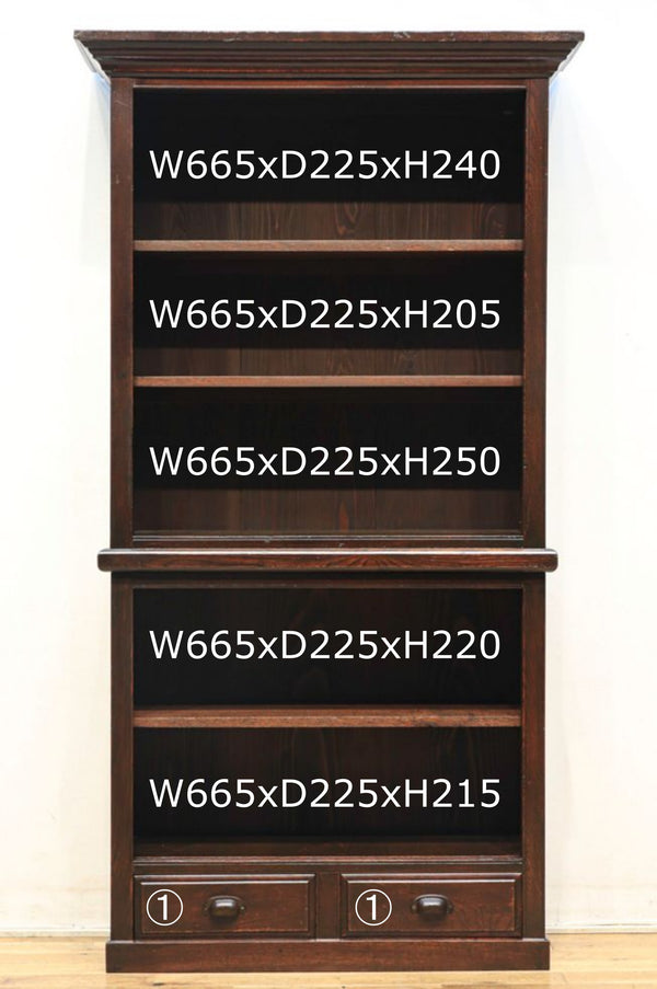 引き出し30杯!! 温かみのある前面総オーク造りの木地色レトロガラスケース BB3289