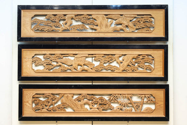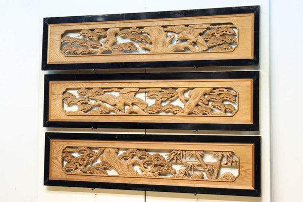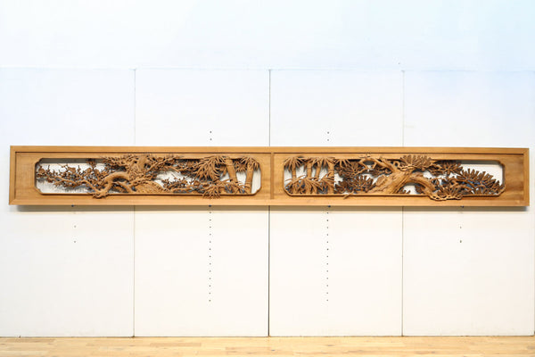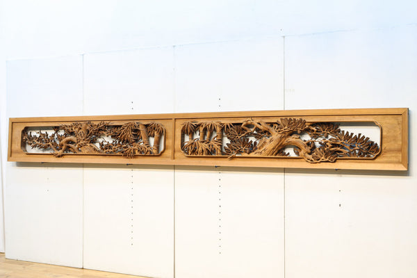 松竹梅を描いた見応えのある深掘り彫刻欄間 EZ2811