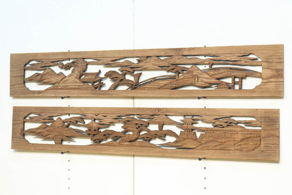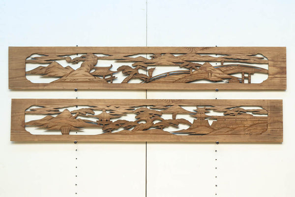 雄大な富士山と松の風景が美しい彫刻欄間 EZ2810 在庫1枚