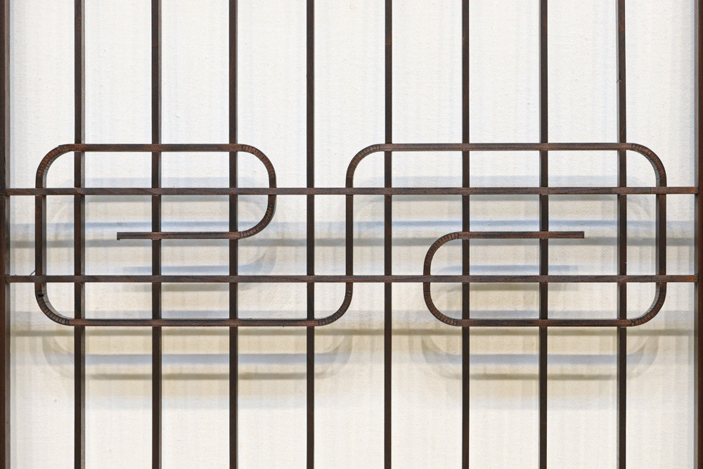 直線的な格子に繊細な雷文帯装飾を合わせた