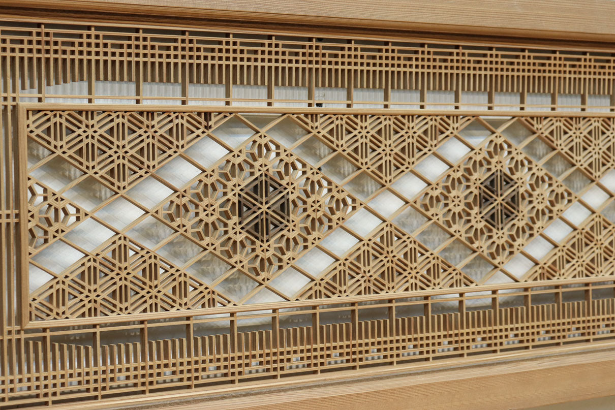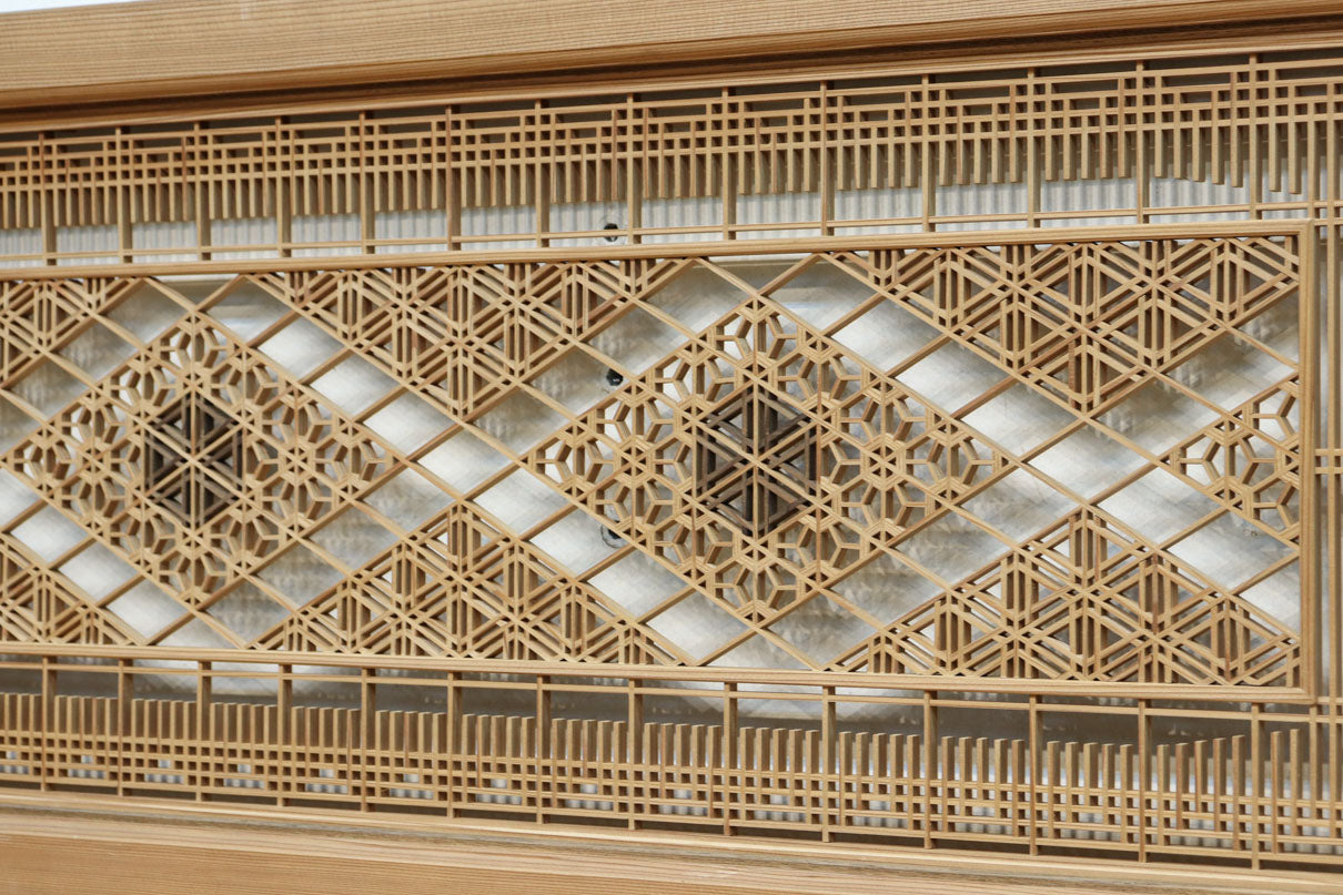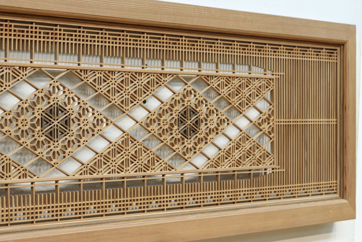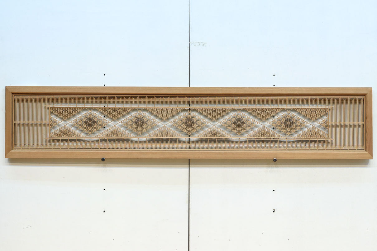 繊細な組子を合わせて描く、菱型の大きな帯模様は気品があり、