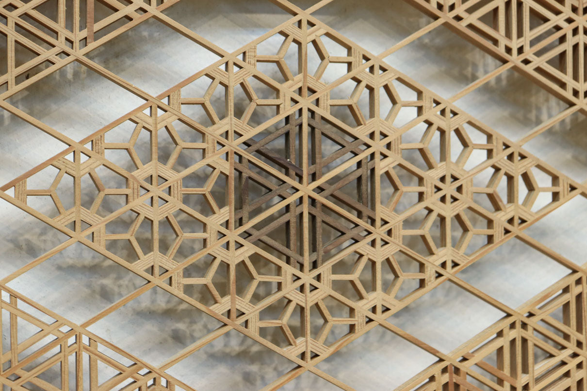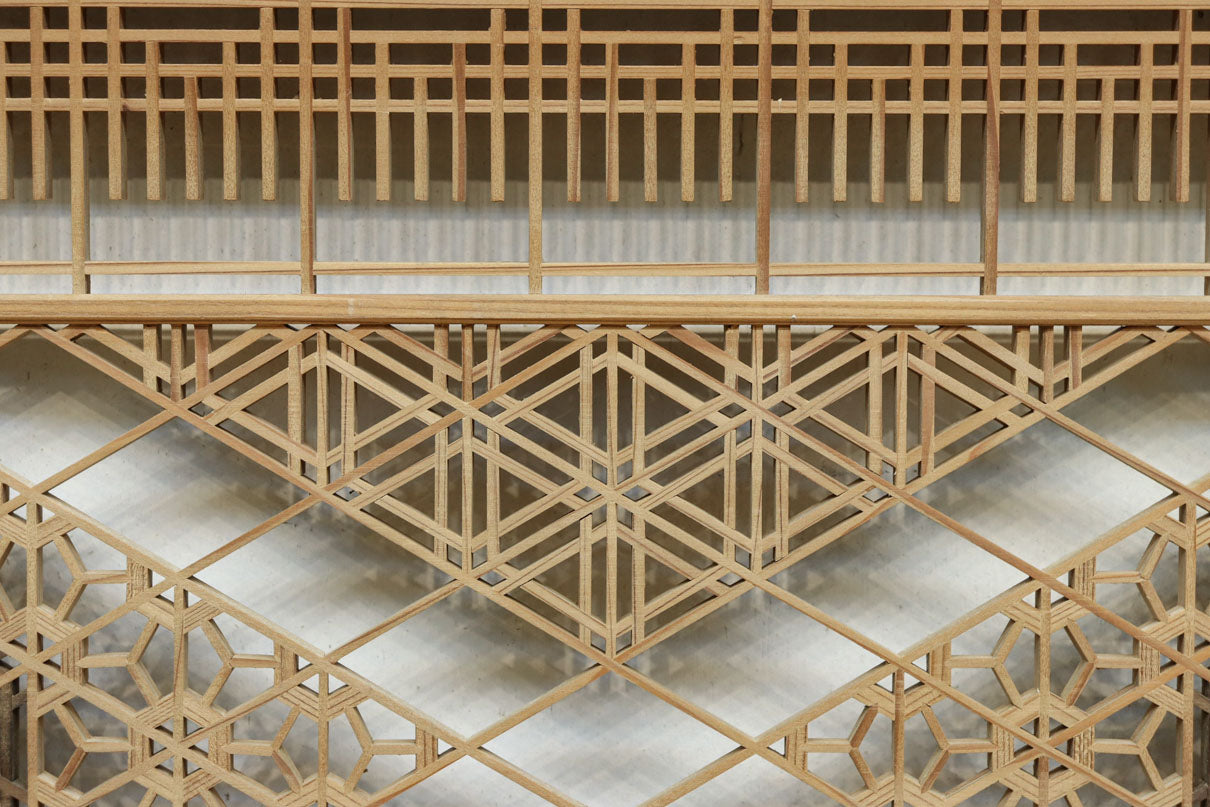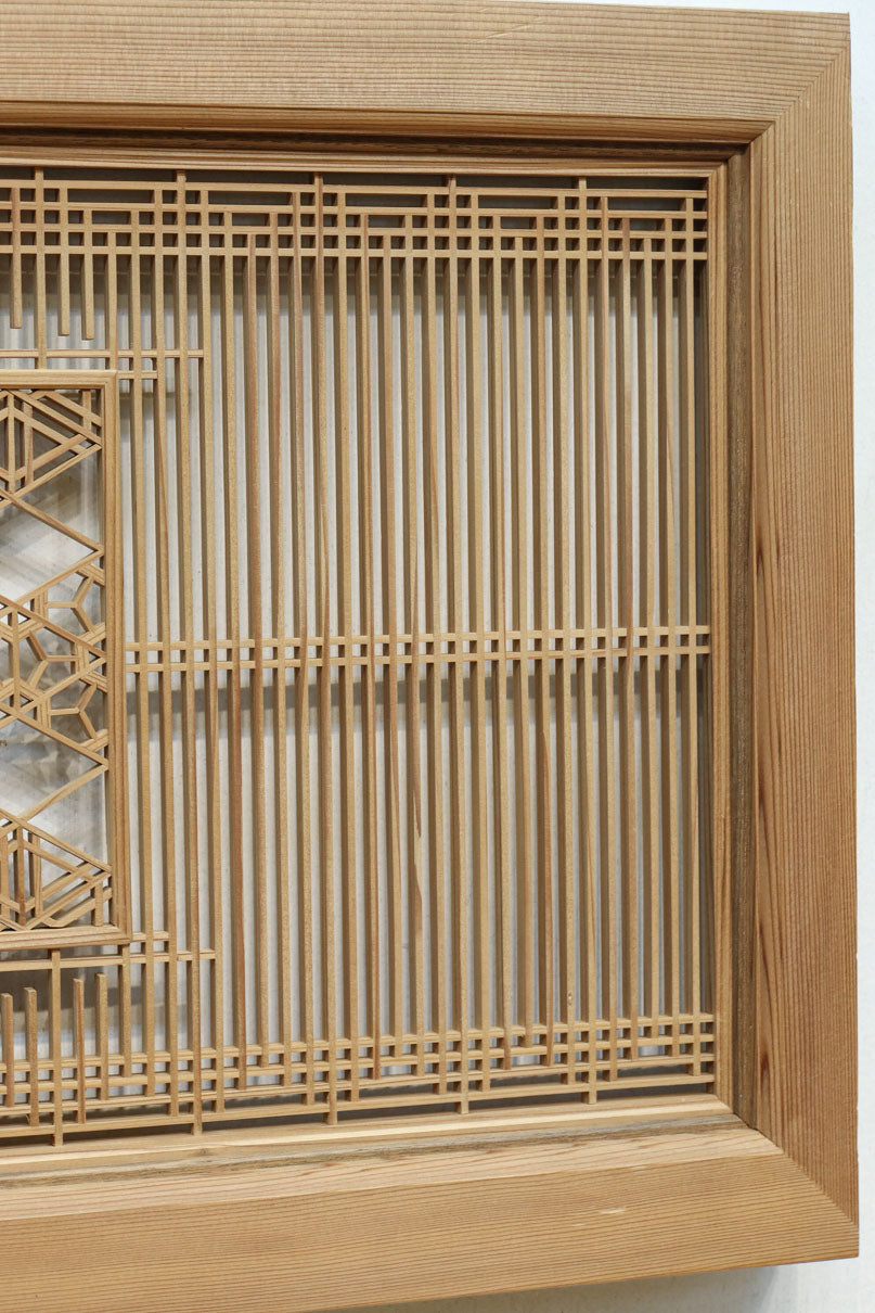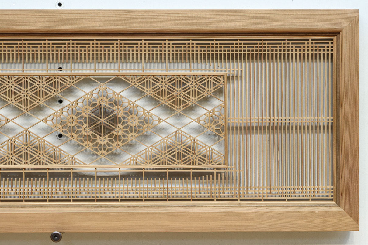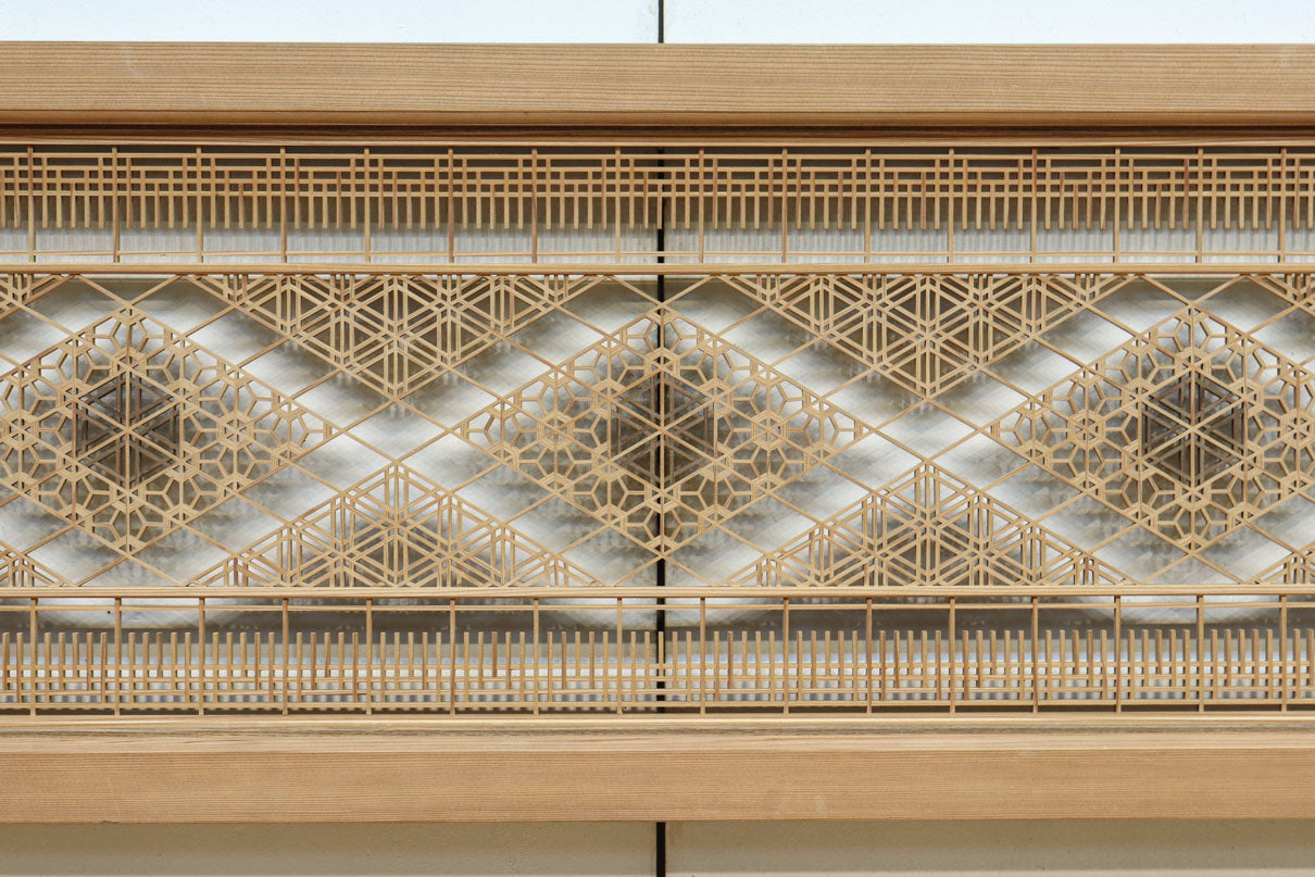 繊細な組子を合わせて描く、菱型の大きな帯模様は気品があり、