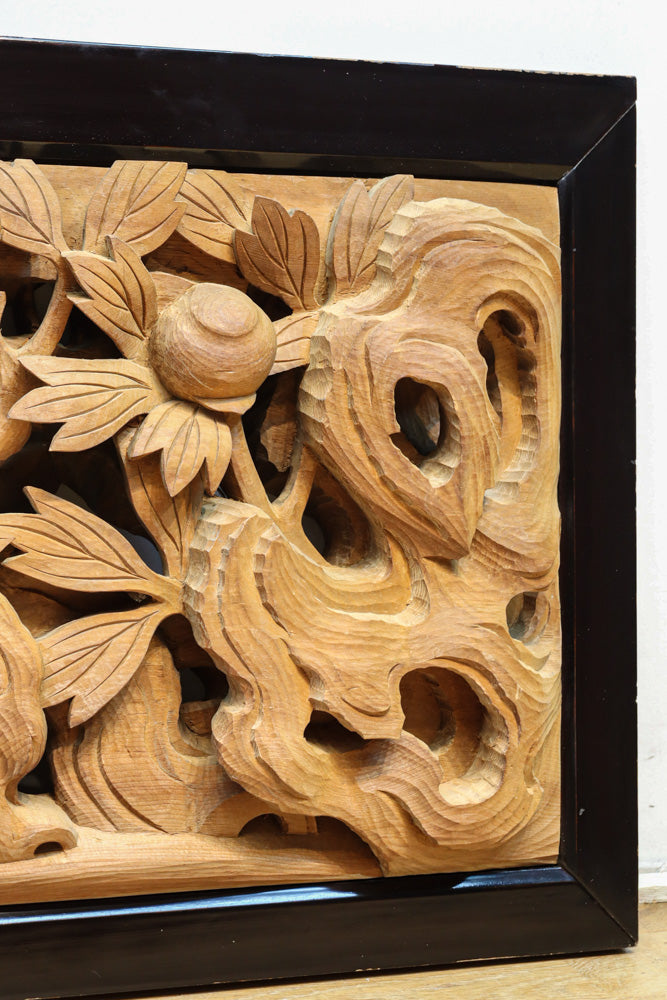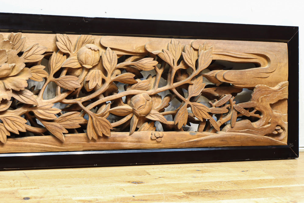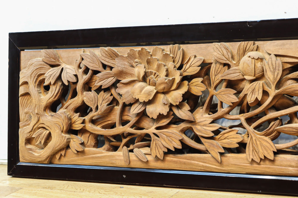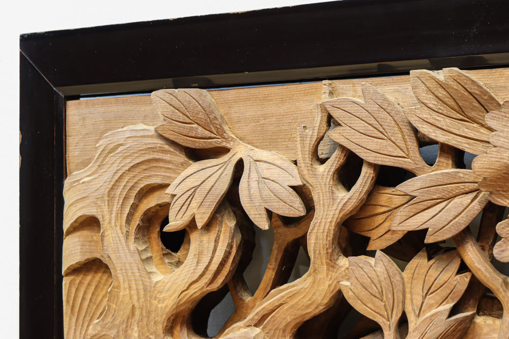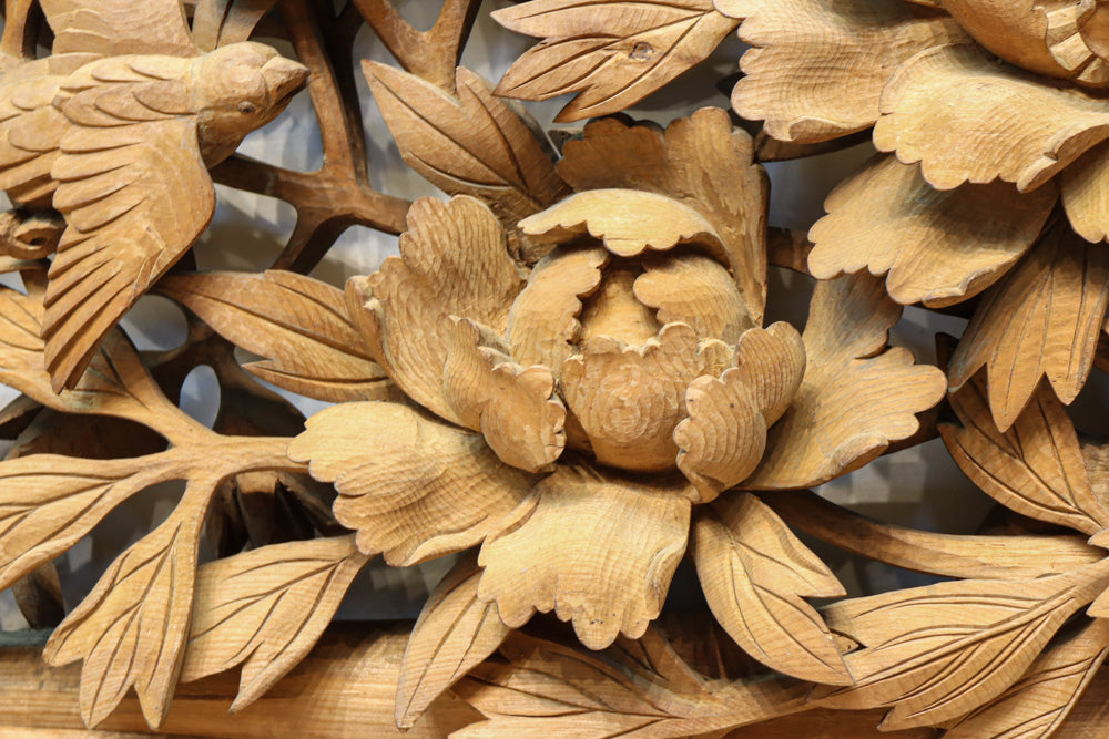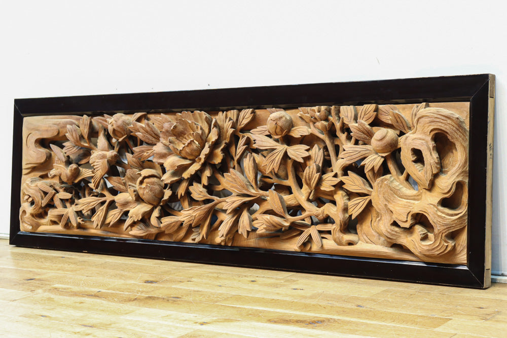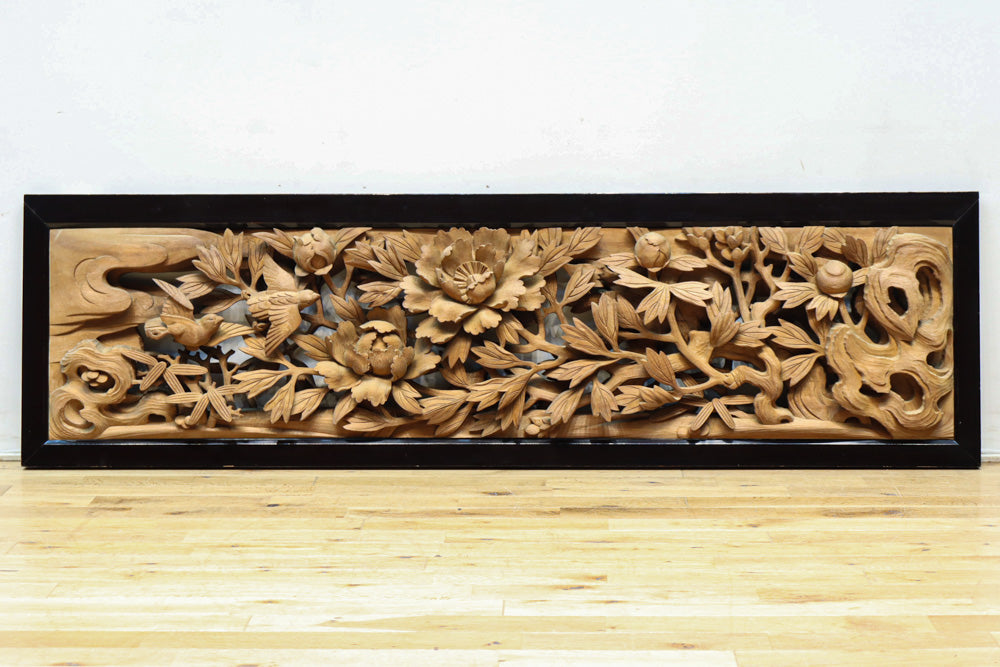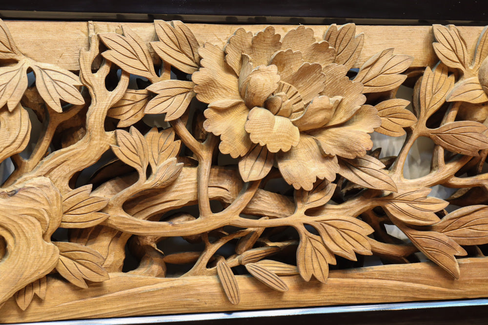 繊細な彫刻で鳥と牡丹を描いた彫刻欄間 EZ2537a 在庫1枚