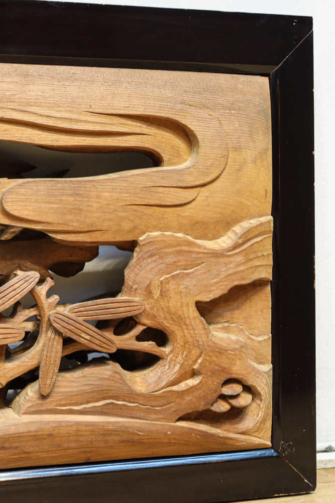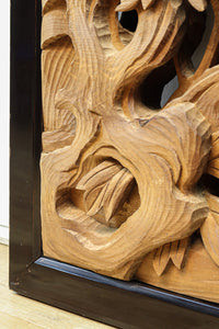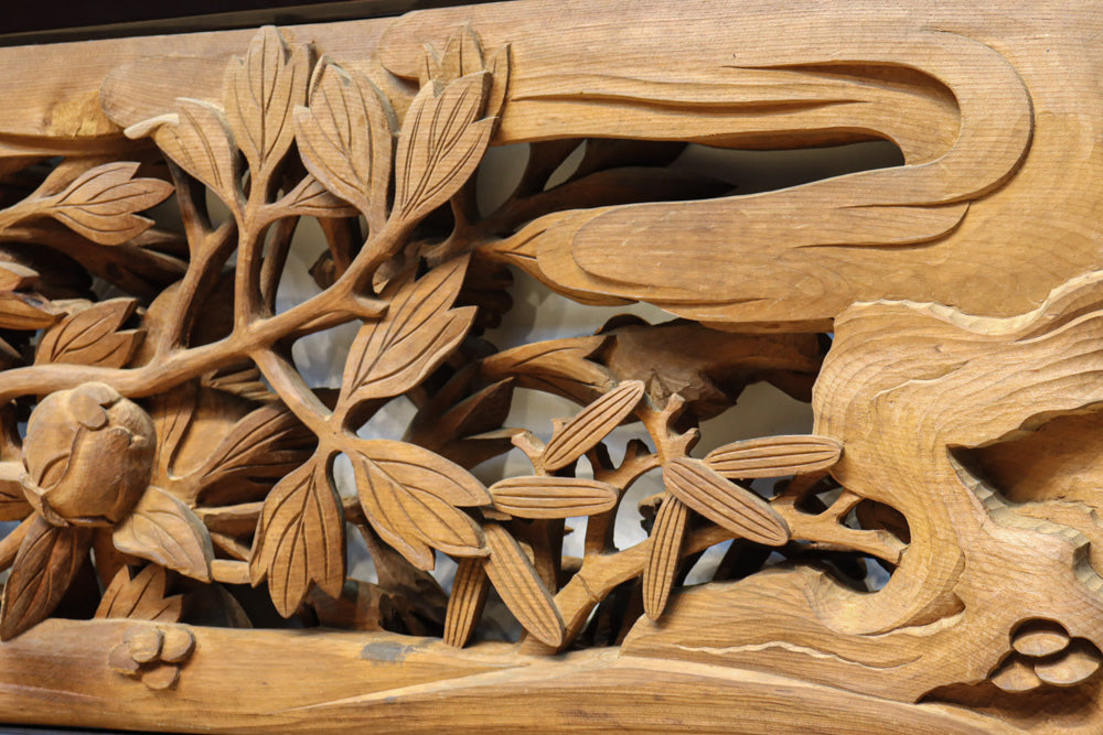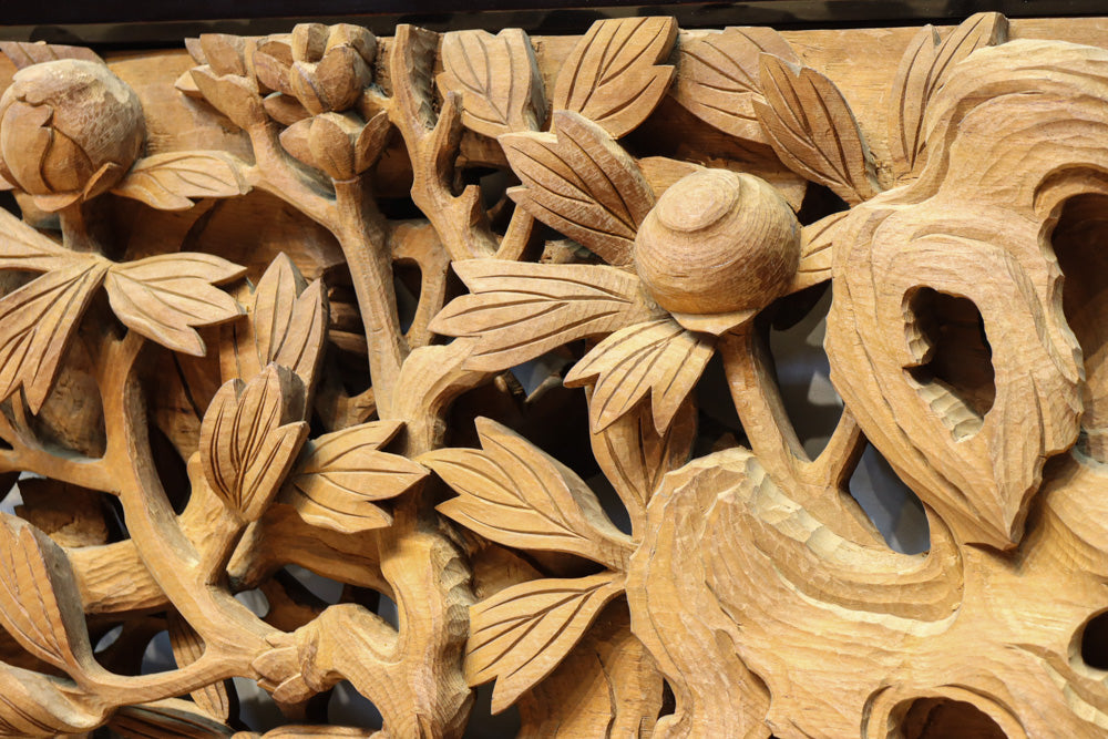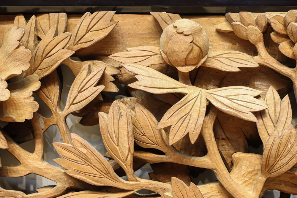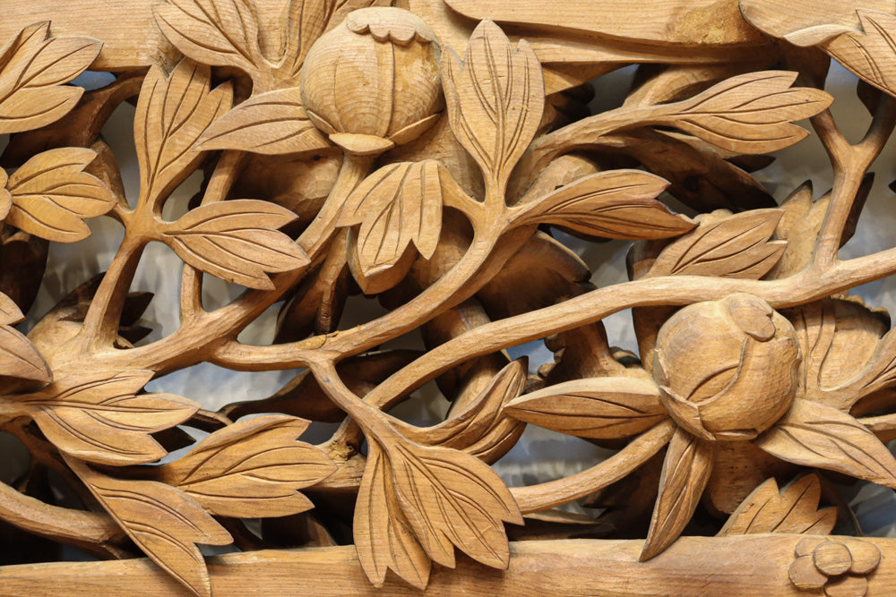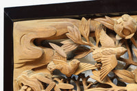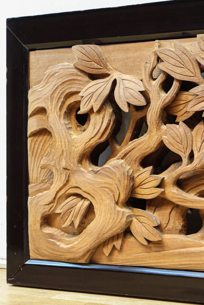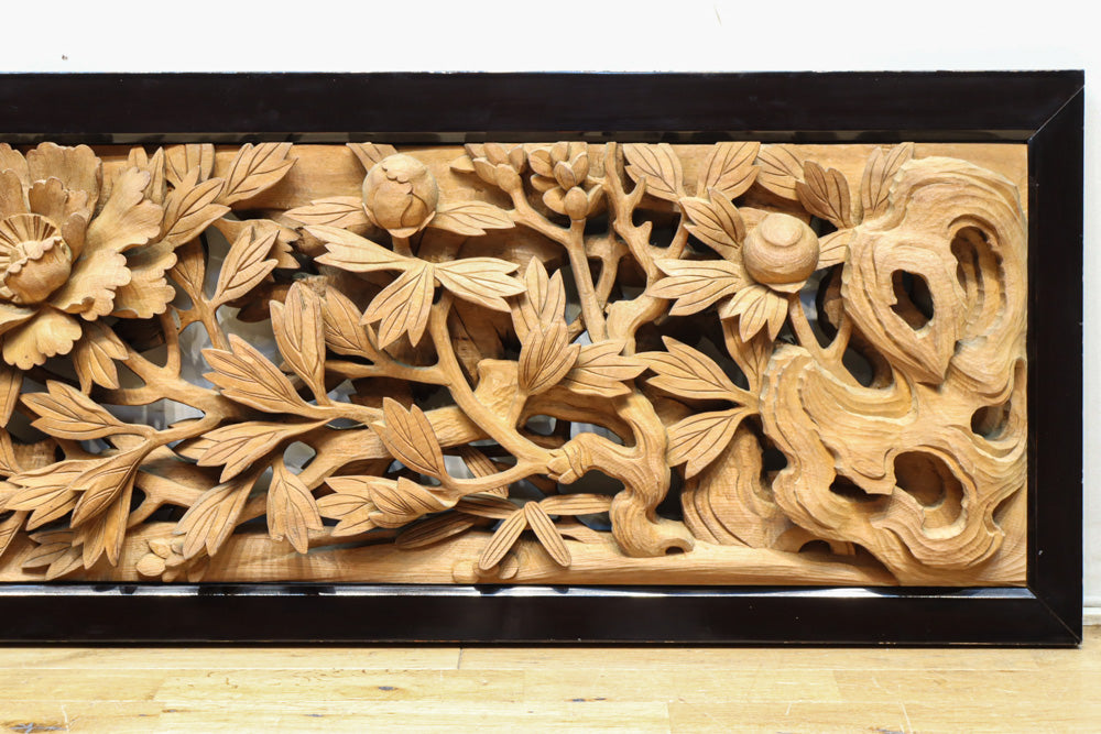 繊細な彫刻で鳥と牡丹を描いた彫刻欄間 EZ2537a 在庫1枚
