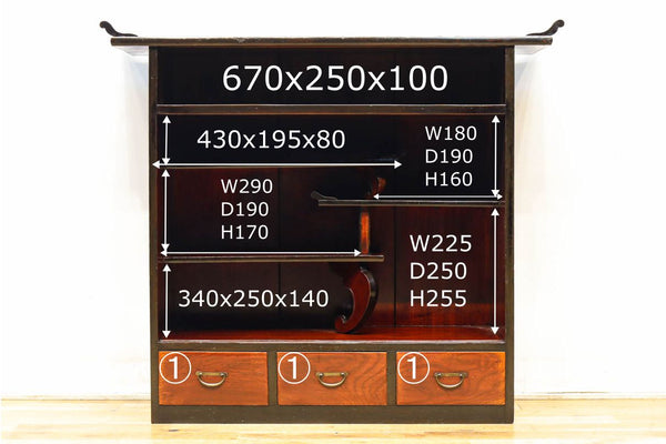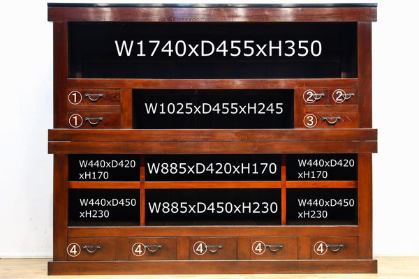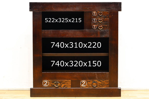 黒柿の上質な風合いで見映えの良い四枚引き戸の京水屋箪笥 BB3311