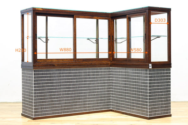 品よく可愛らしい佇まいの上質なレトロ3面高脚ガラスケース BB3294