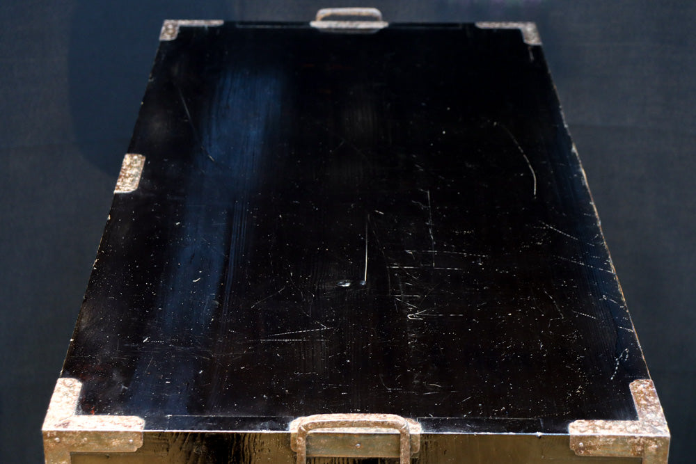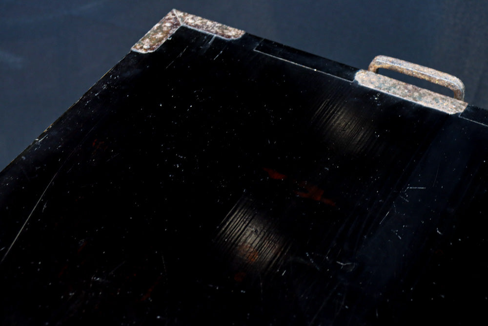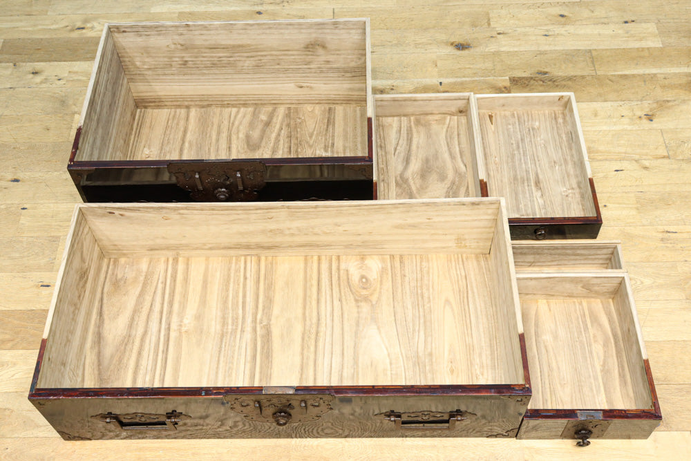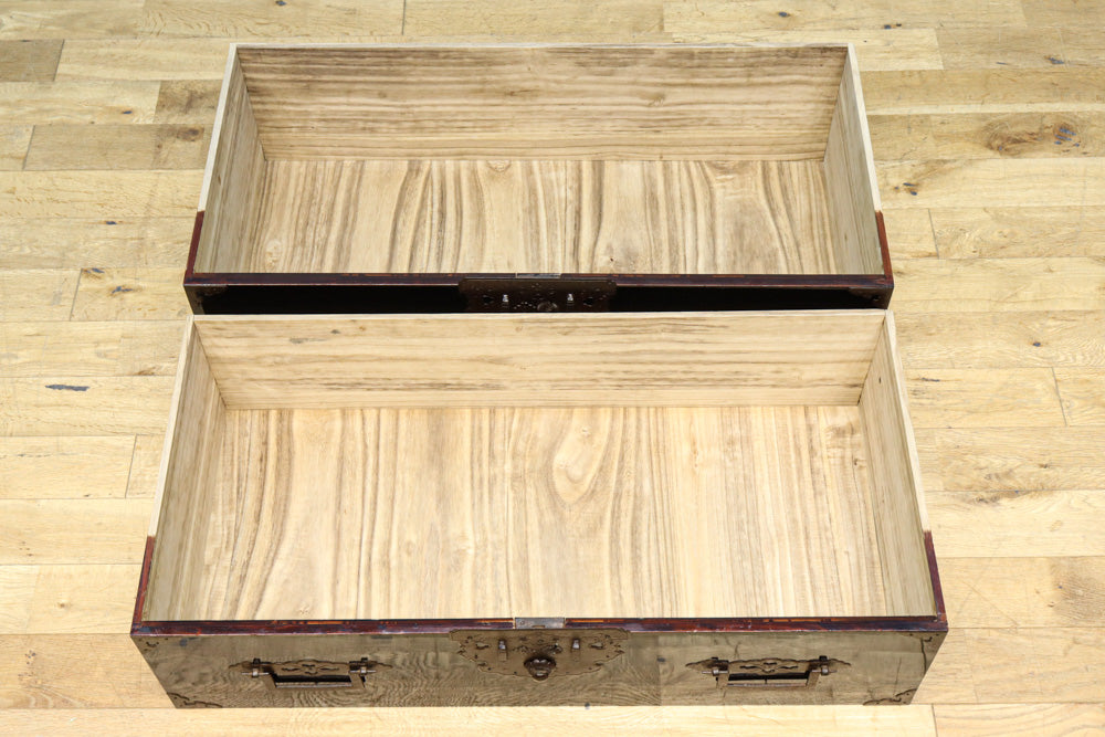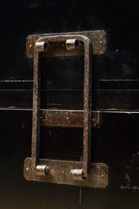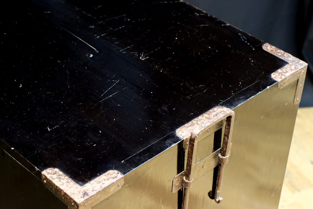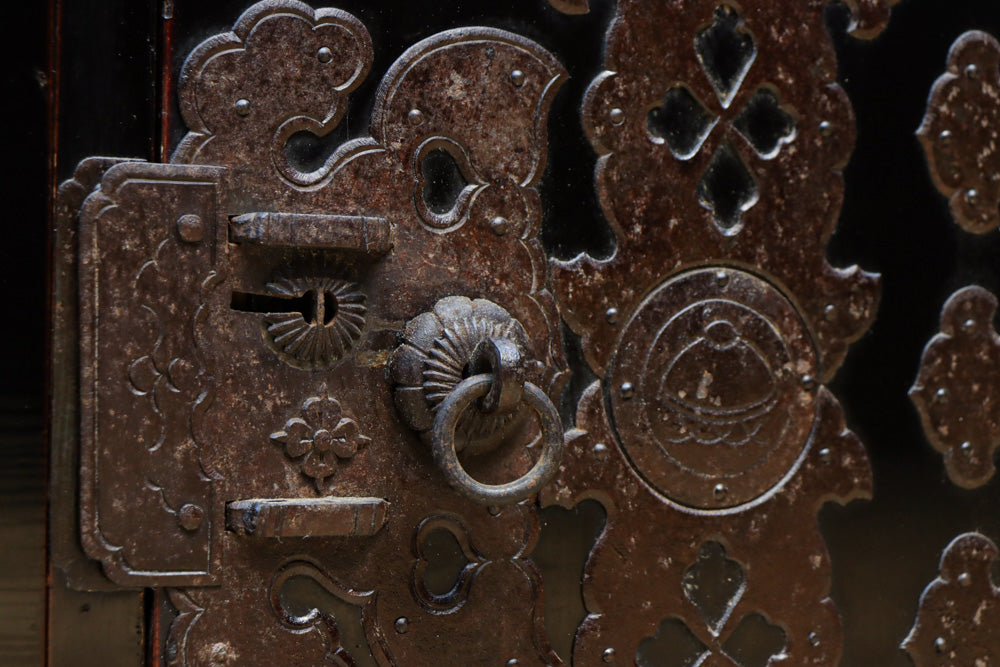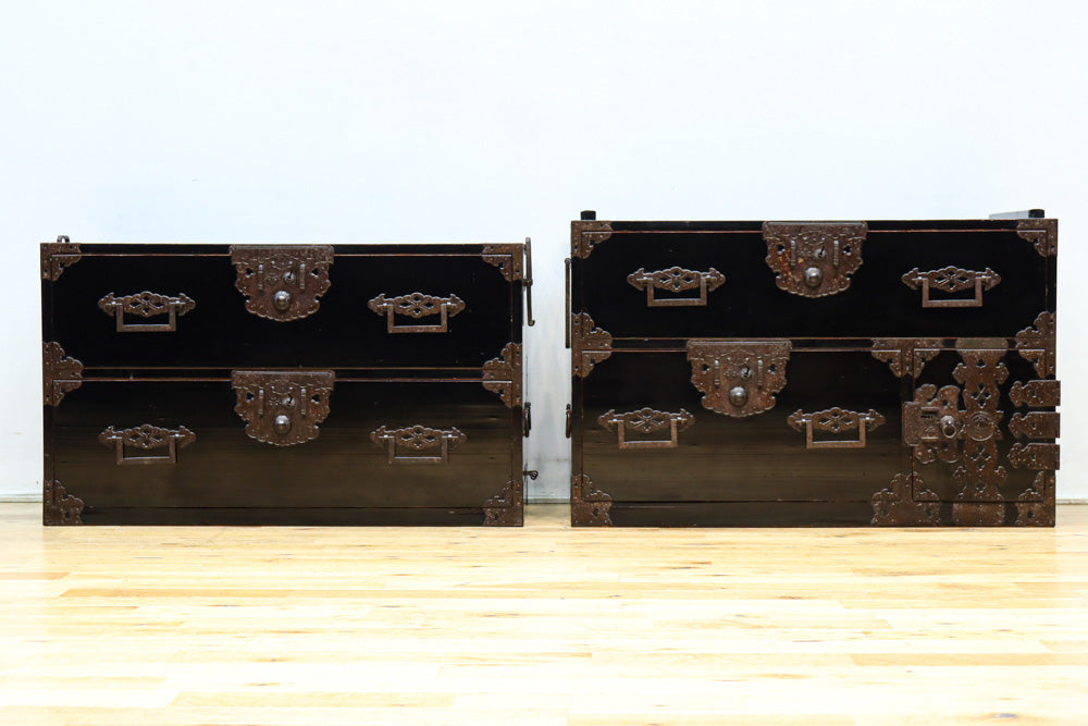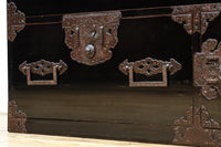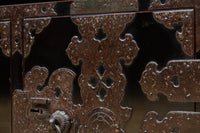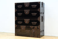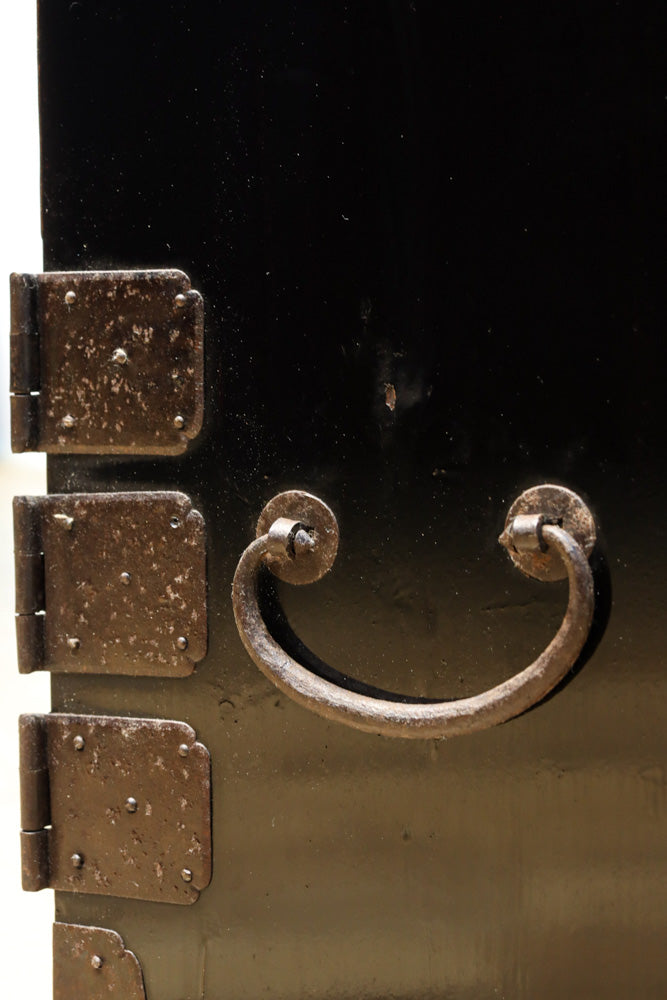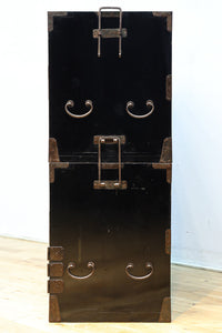 全面に黒漆を施された風情溢れる大型兜金具庄内衣裳箪笥 BB3018