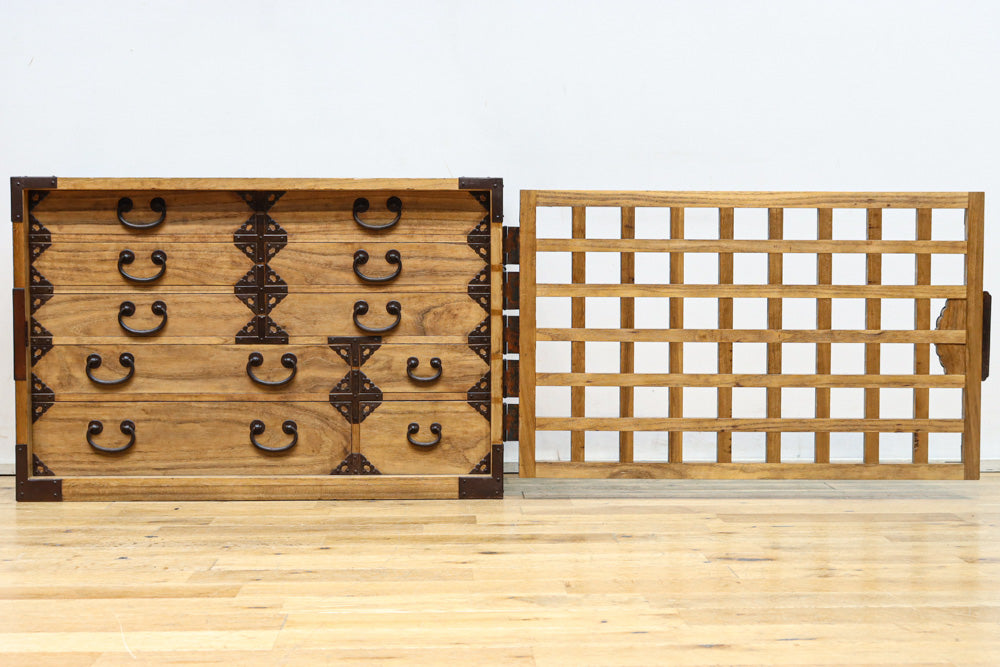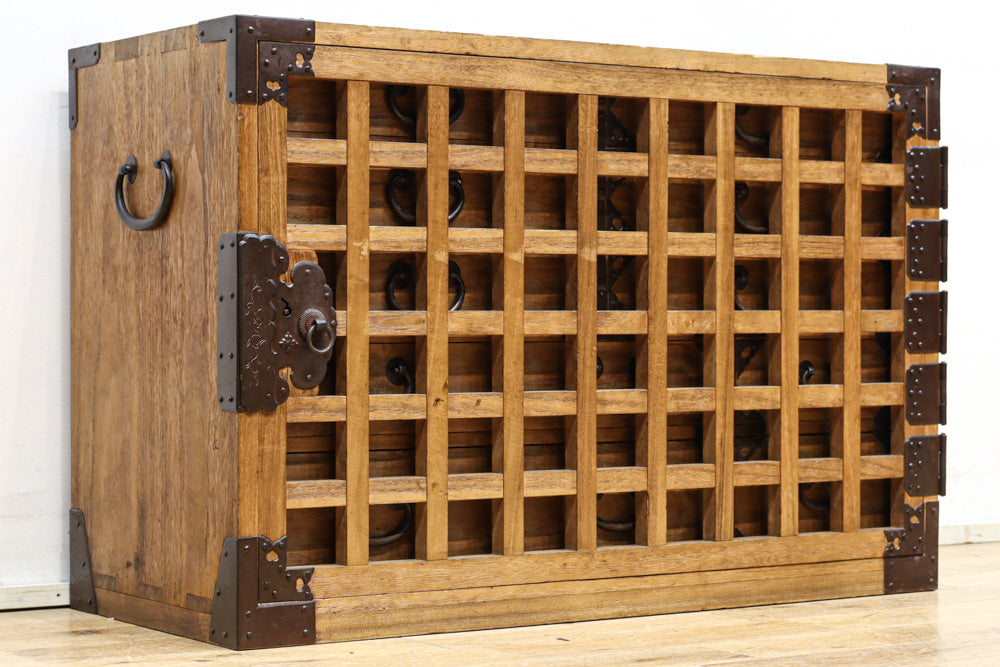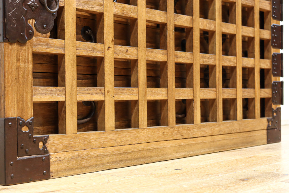 珍品!! 格子の片開き戸が珍しい総桐庄内帳場箪笥 BB3020