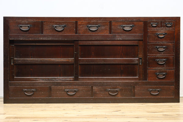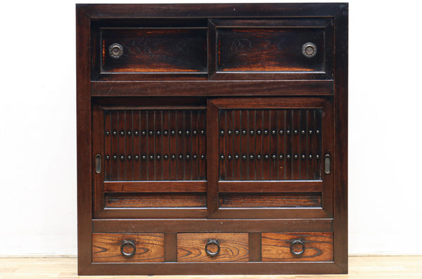 黒柿の上質な風合いで見映えの良い四枚引き戸の京水屋箪笥 BB3311