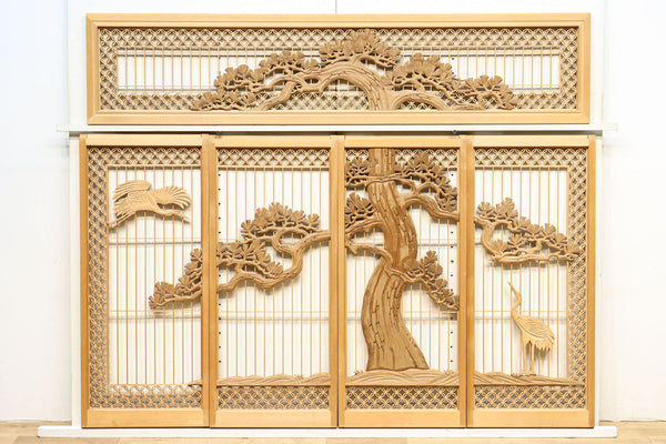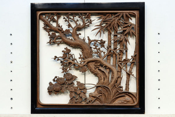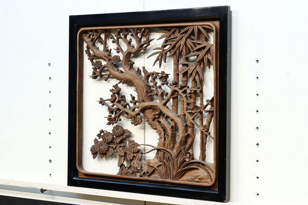 松竹梅を描いた見応えのある深掘り彫刻欄間 EZ2811