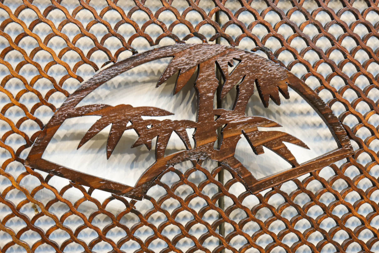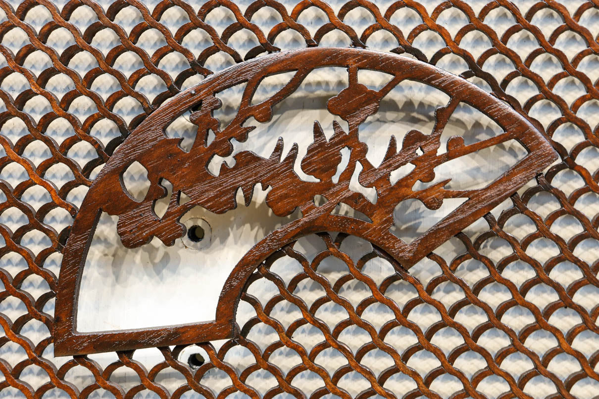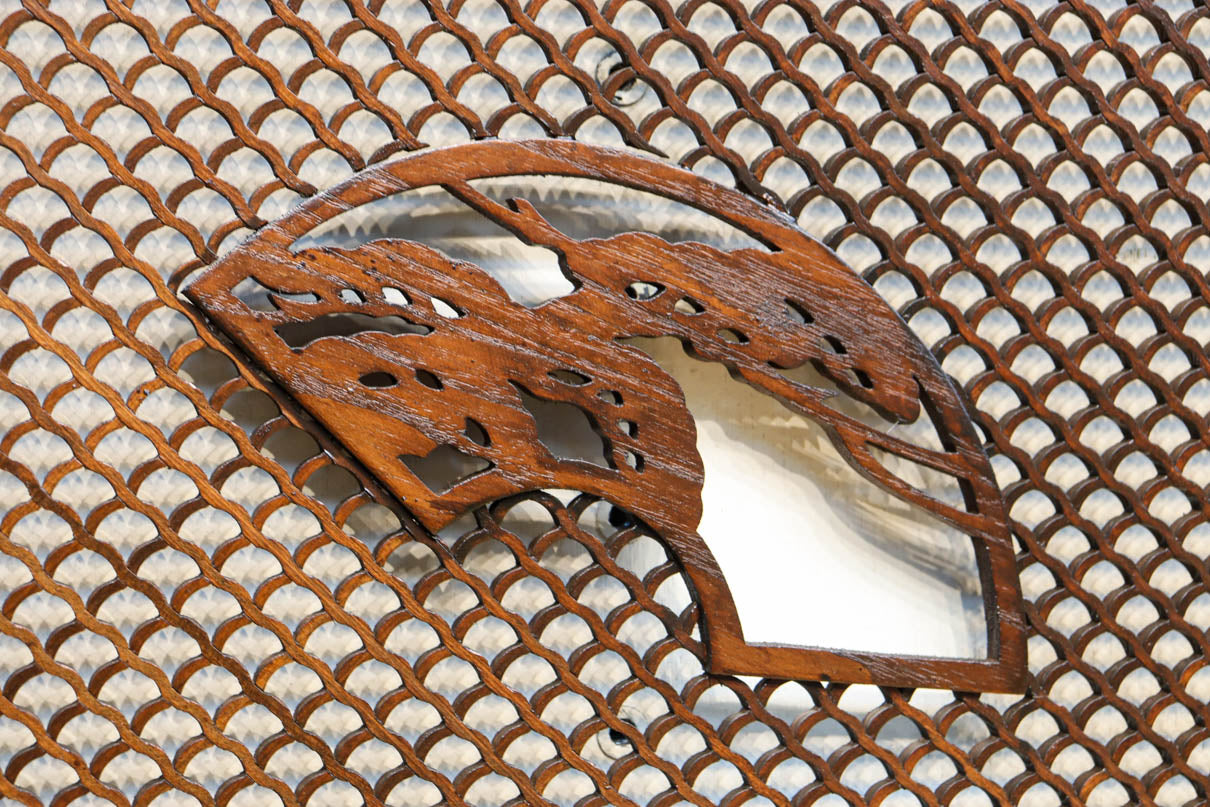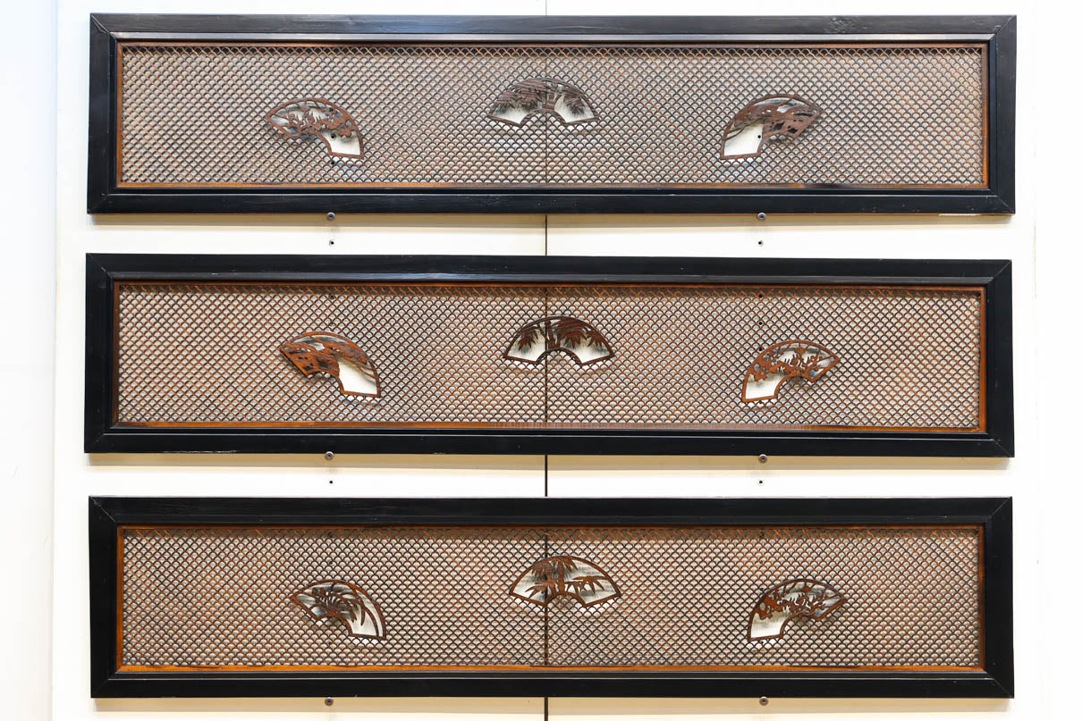 美しい青海波に松竹梅の扇枠の窓絵を備えたモダンな欄間 EZ2467abc 在庫(a:1 b:1 c:1)枚