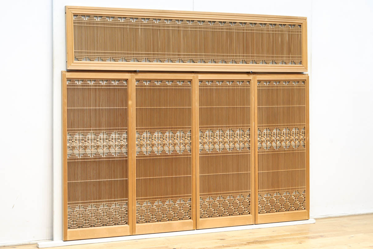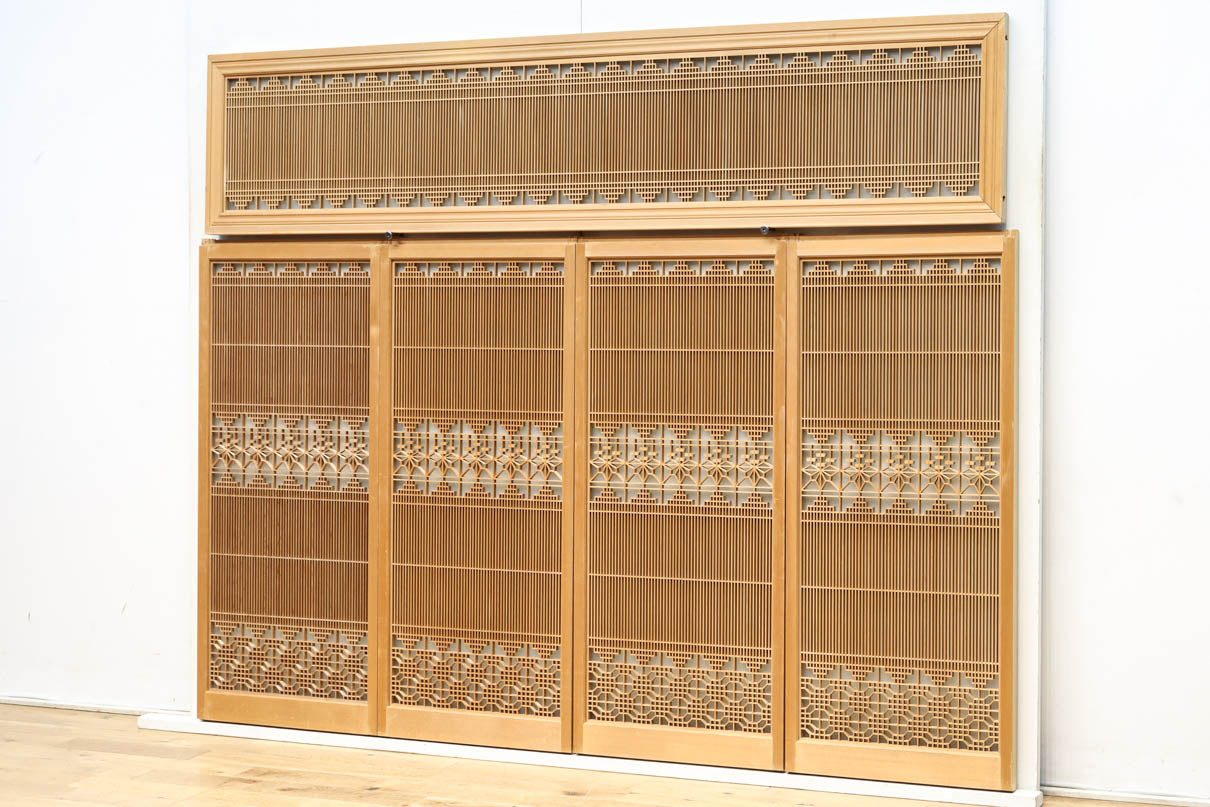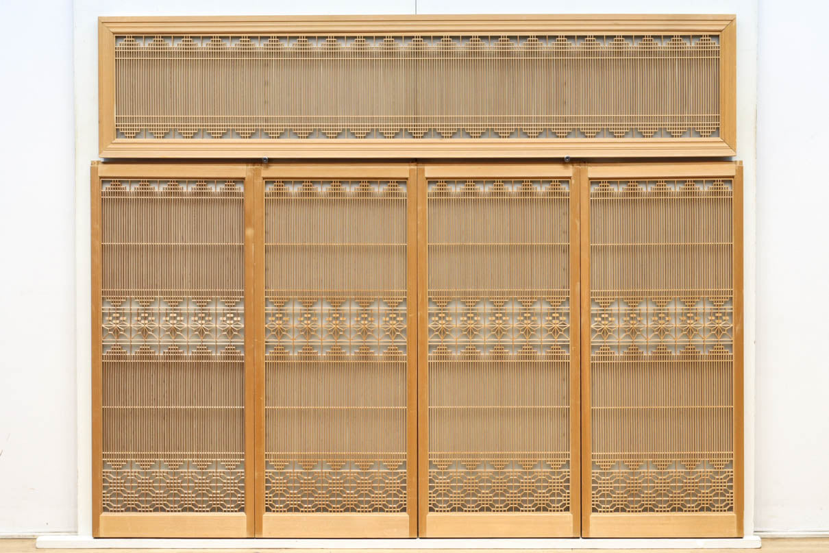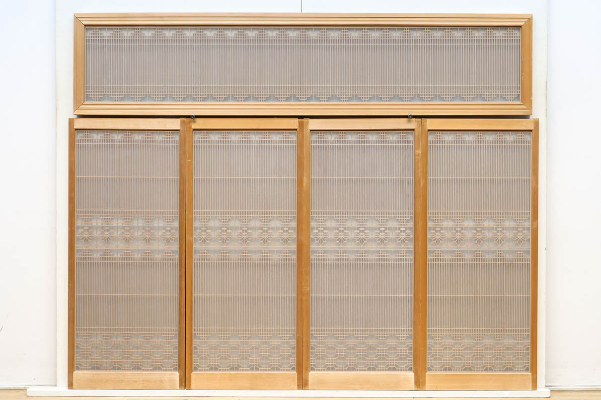 極上!! 繊細な格子づくりをした裏面スリガラス入り欄間・書院セット EZ2472 在庫5枚一組