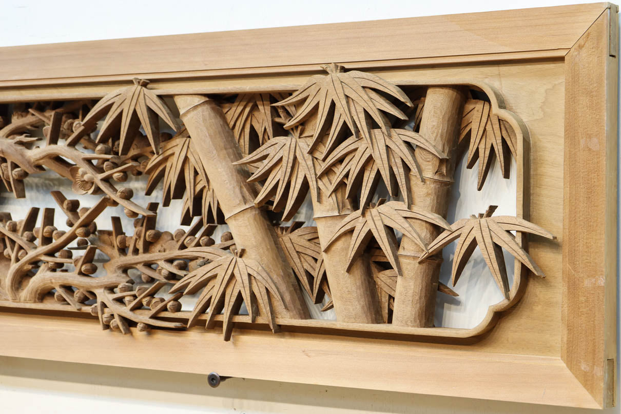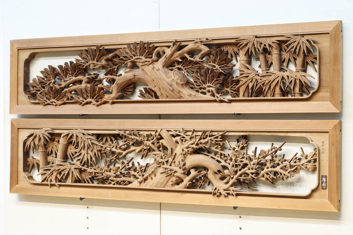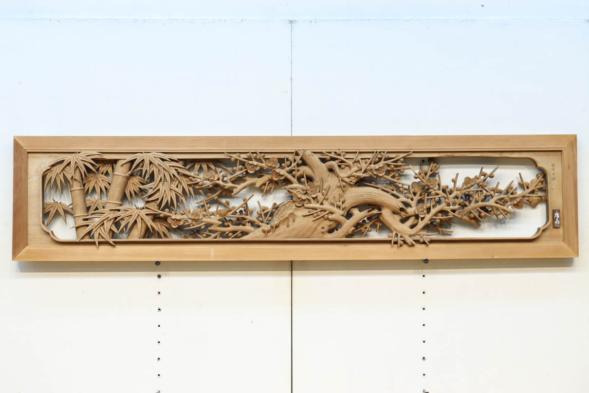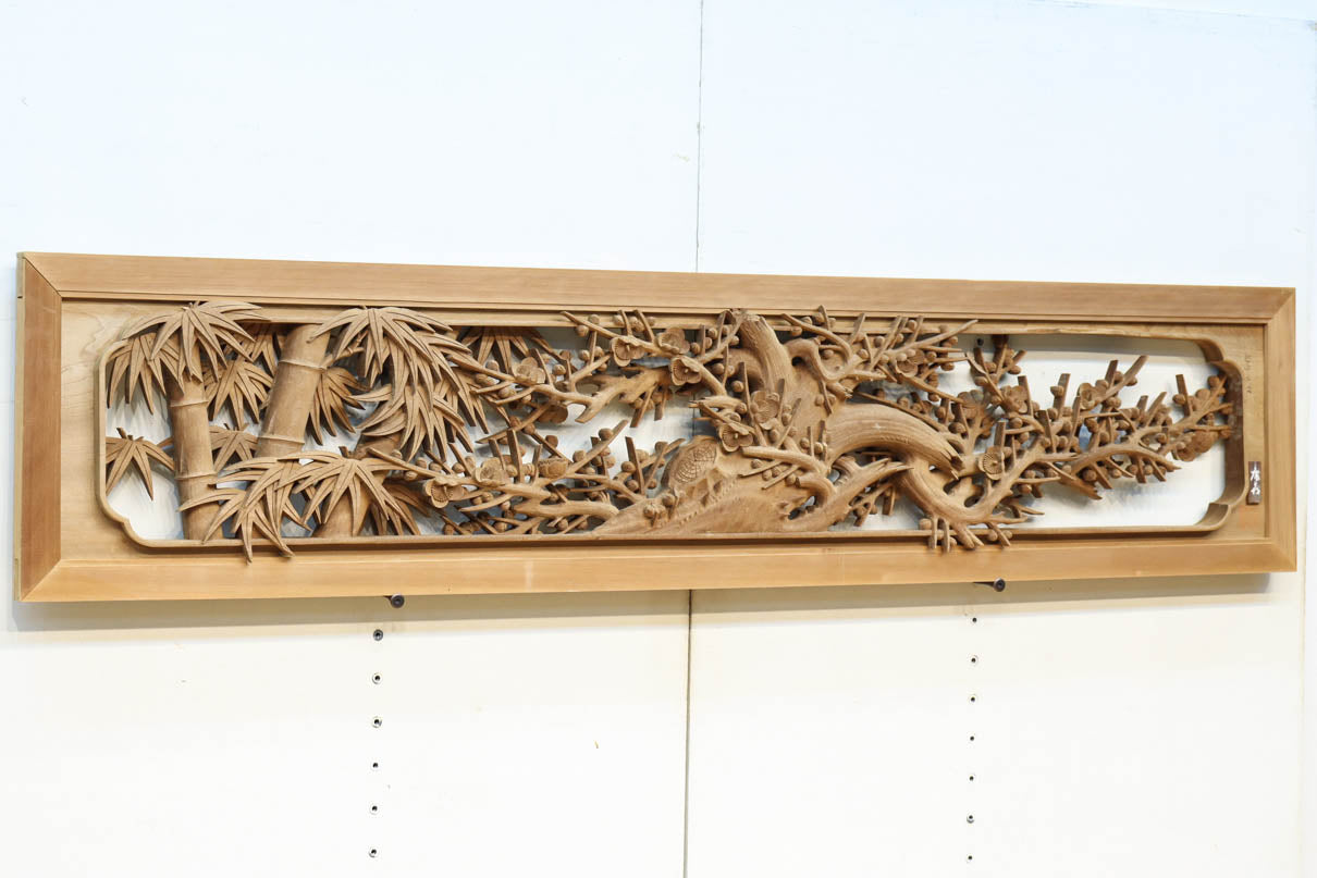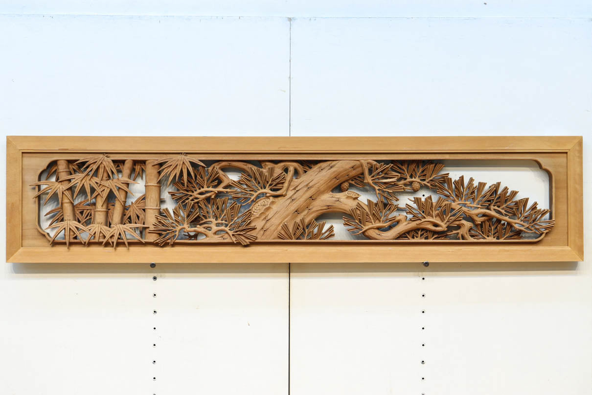 松竹梅を描いた見事な深彫り井波彫刻欄間 EZ2473ab 在庫(a:1 b:0)枚