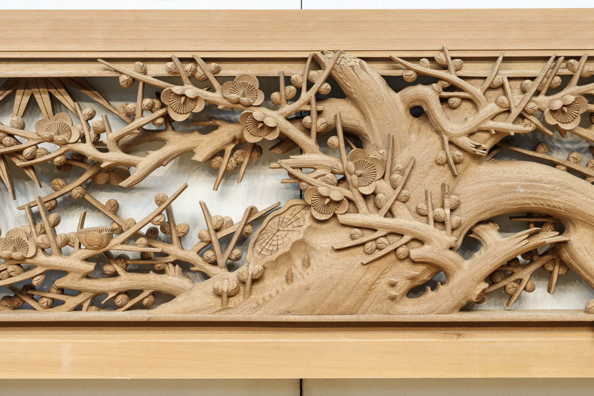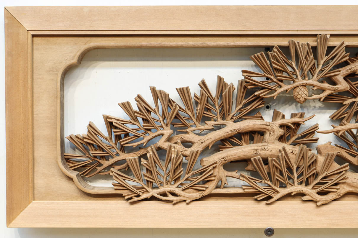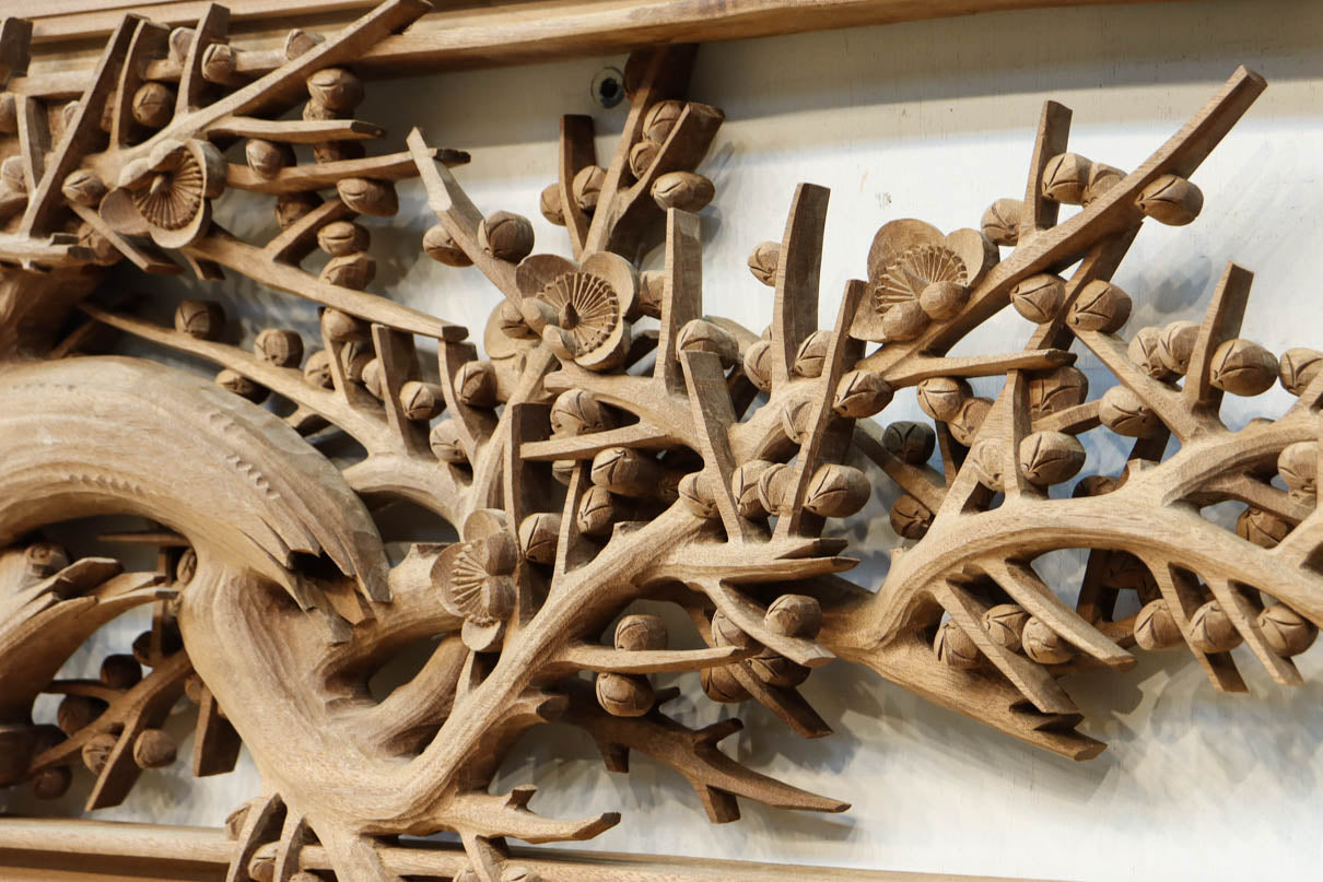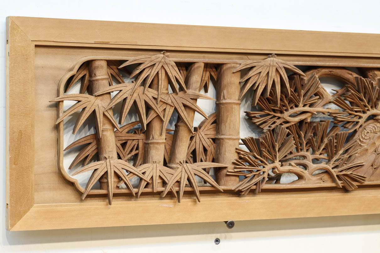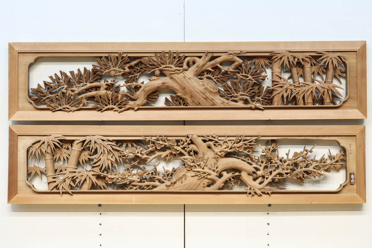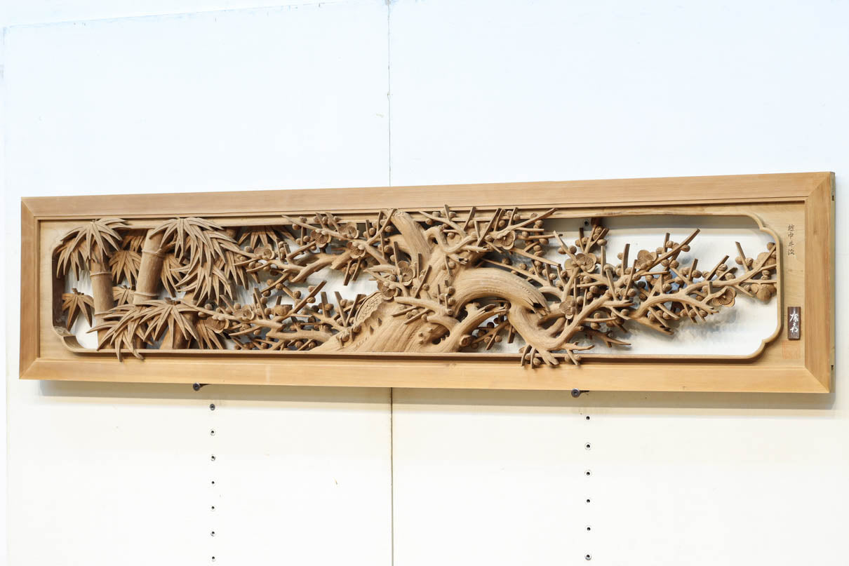 松竹梅を描いた見事な深彫り井波彫刻欄間 EZ2473ab 在庫(a:1 b:0)枚