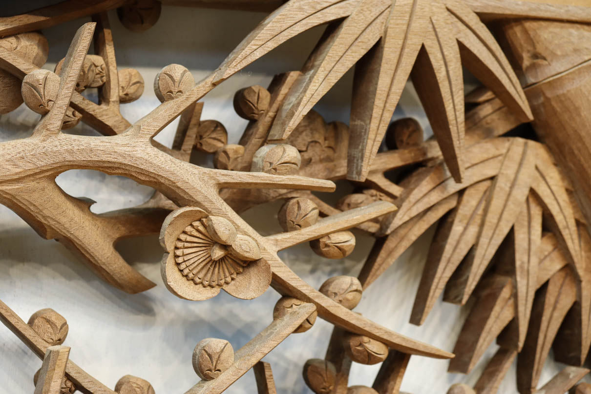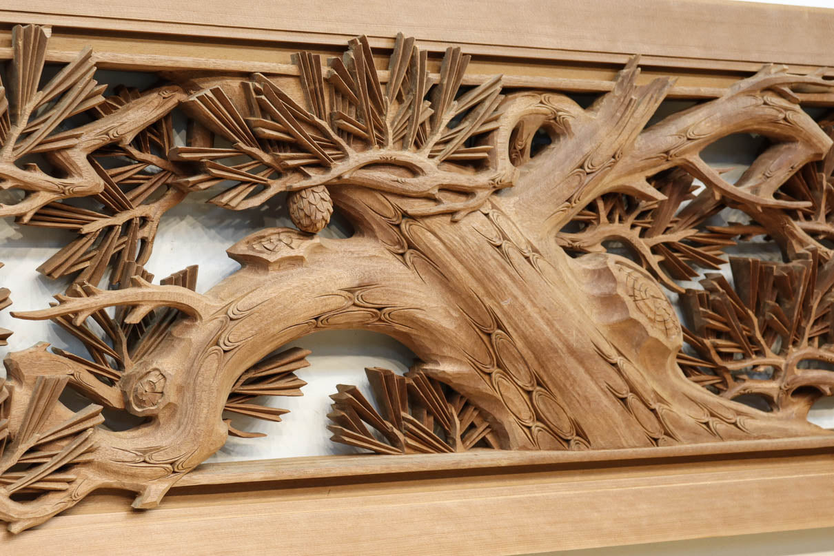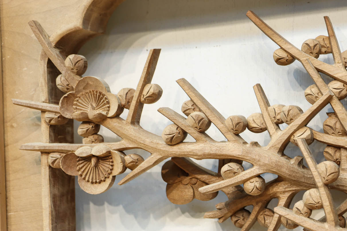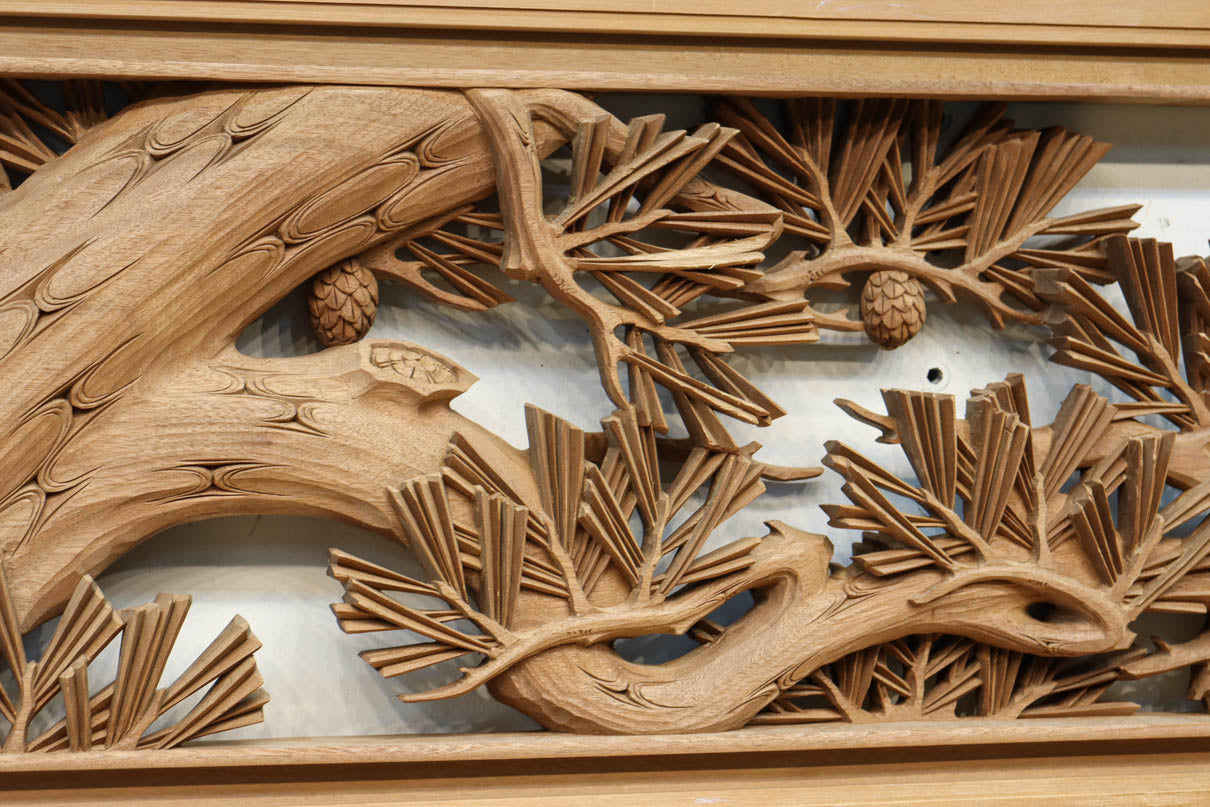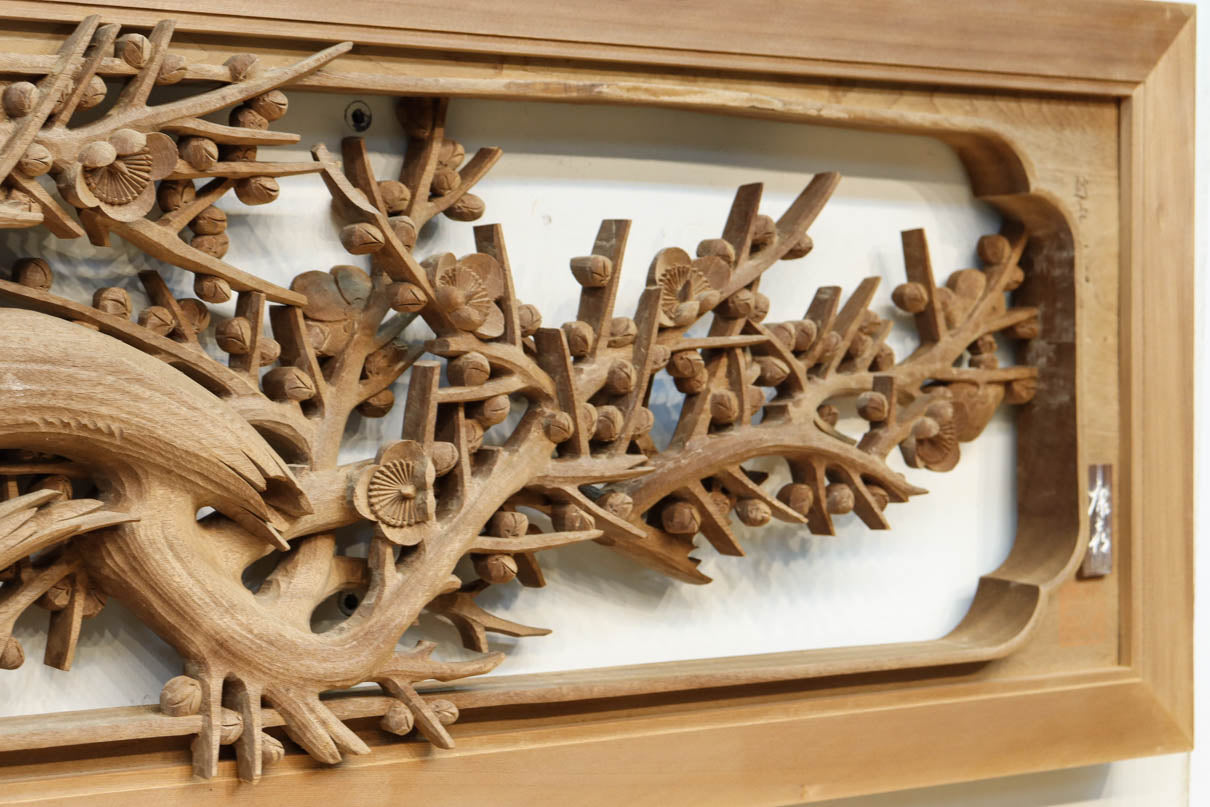 松竹梅を描いた見事な深彫り井波彫刻欄間 EZ2473ab 在庫(a:1 b:0)枚