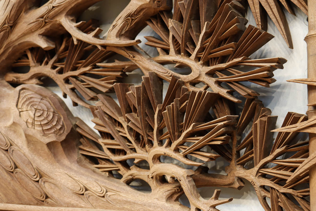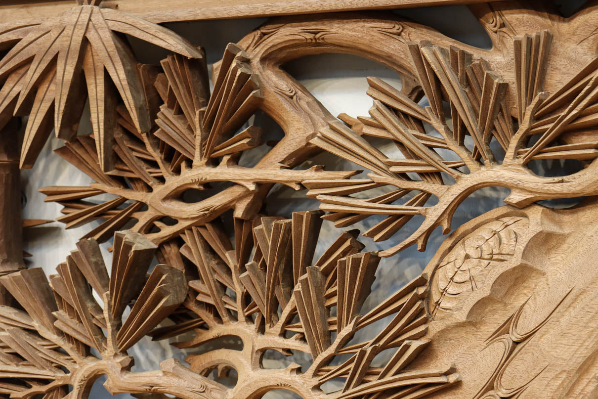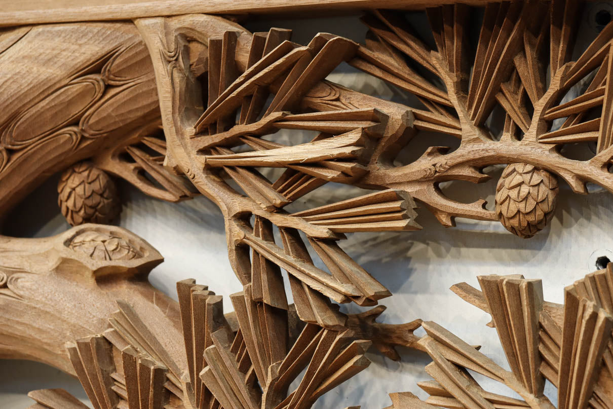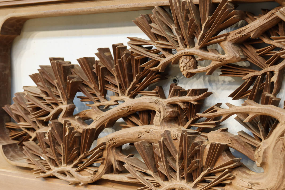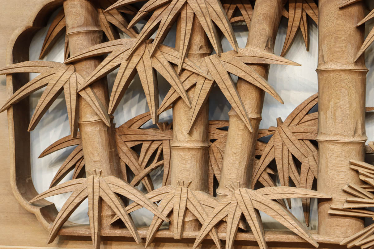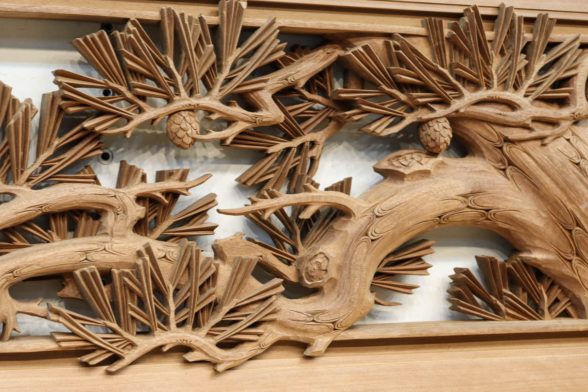 松竹梅を描いた見事な深彫り井波彫刻欄間 EZ2473ab 在庫(a:1 b:0)枚