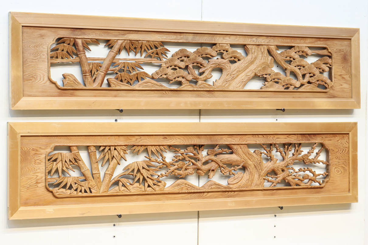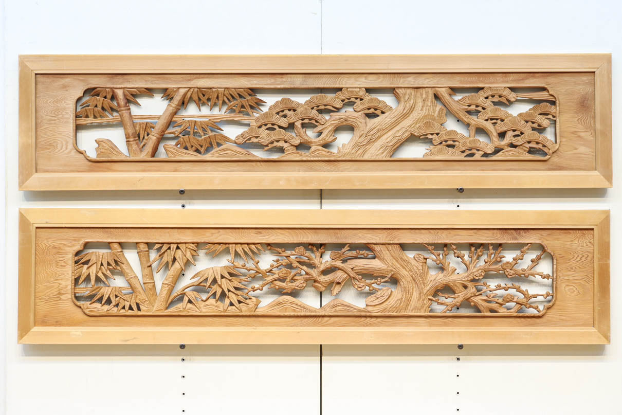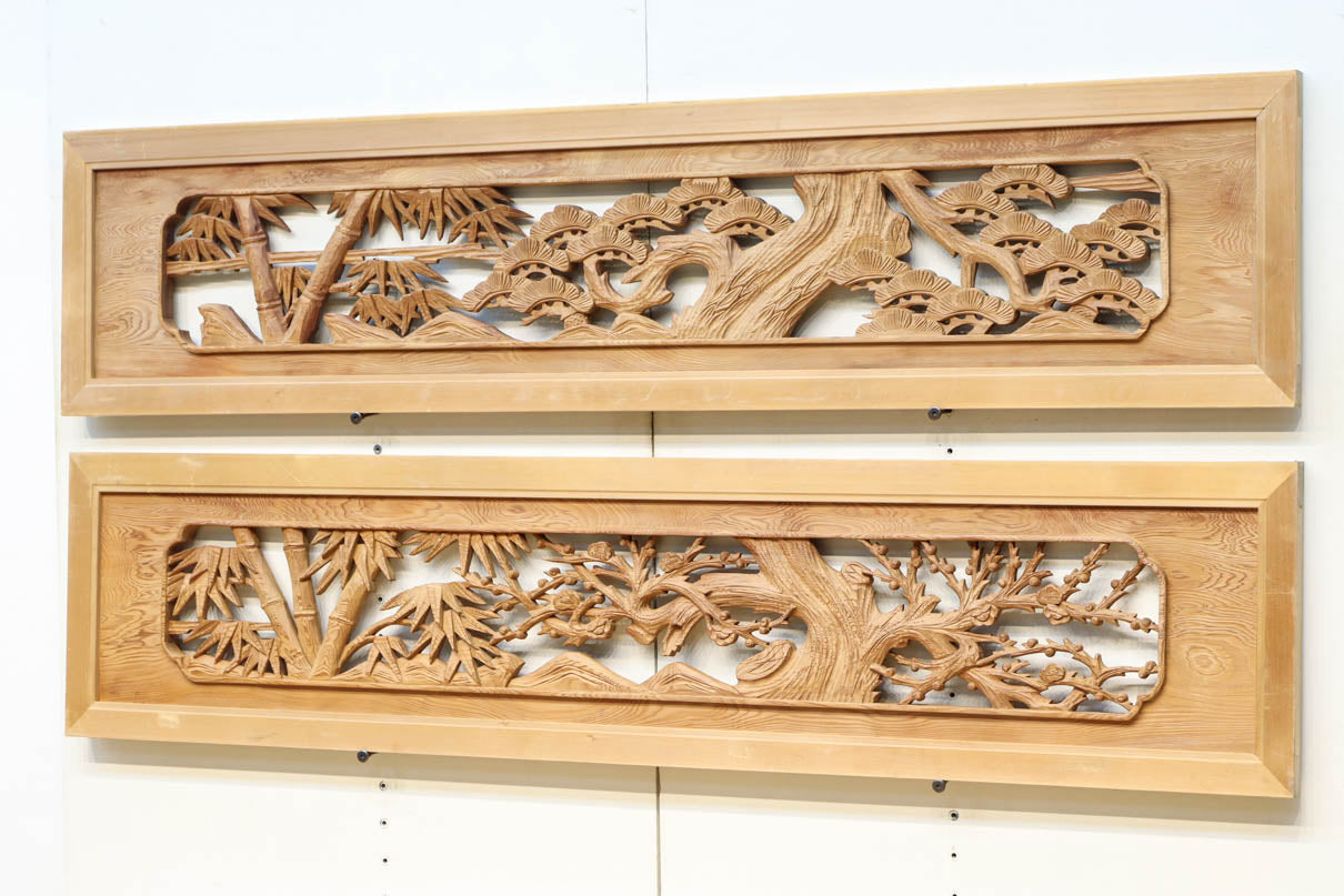 自然美が感じられる木地色の彫刻欄間 EZ2475ab 在庫(a:0 b:1)枚