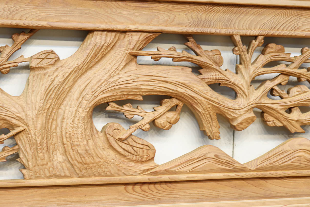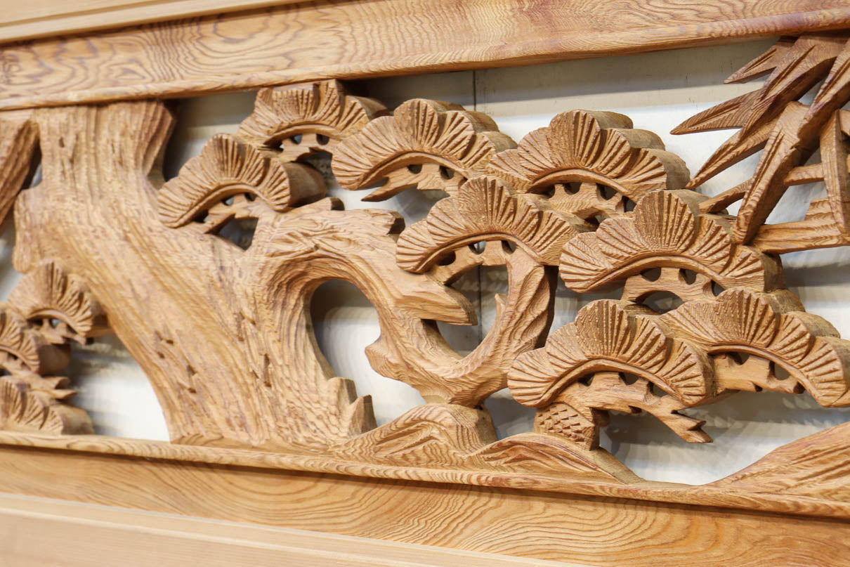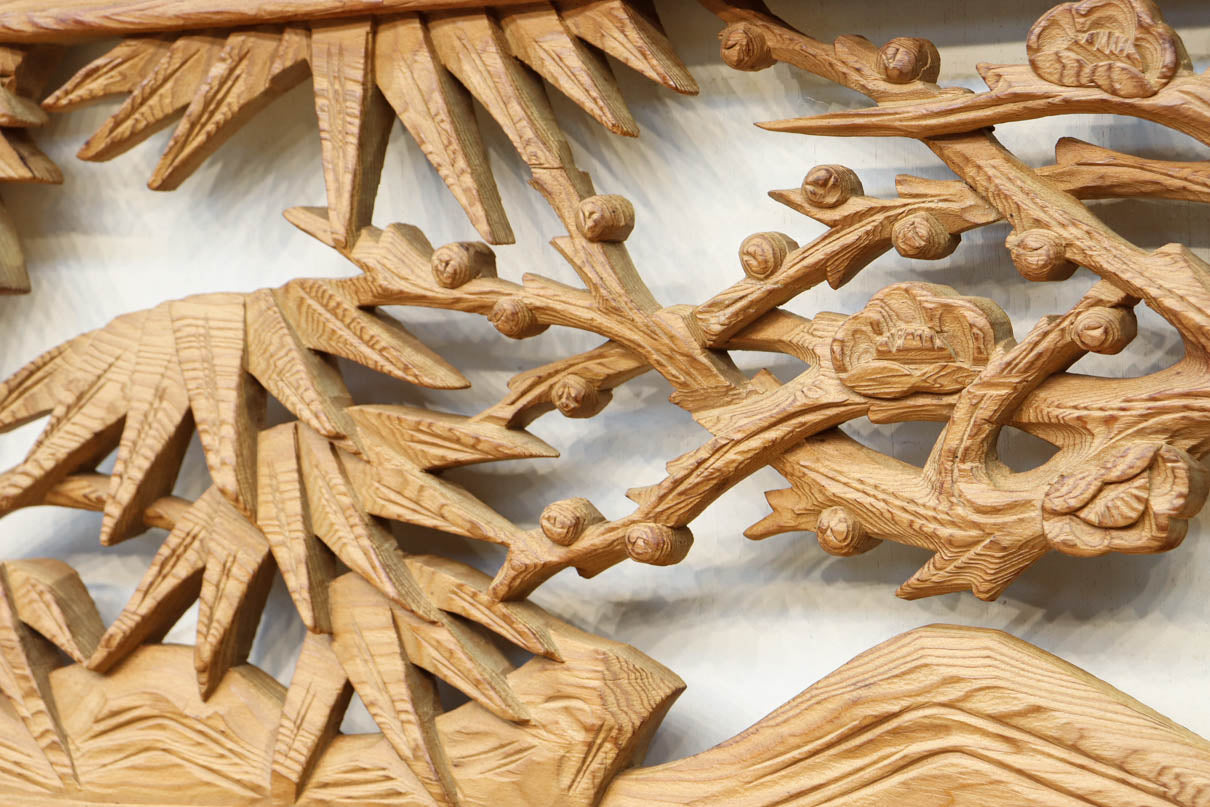 繊細に表現されたな緻密な彫刻技術によって美しい和の風景が広がっています。