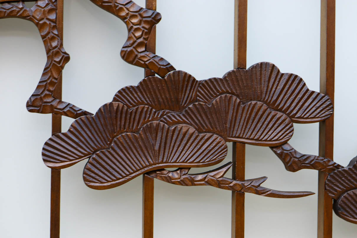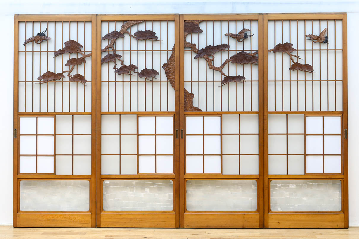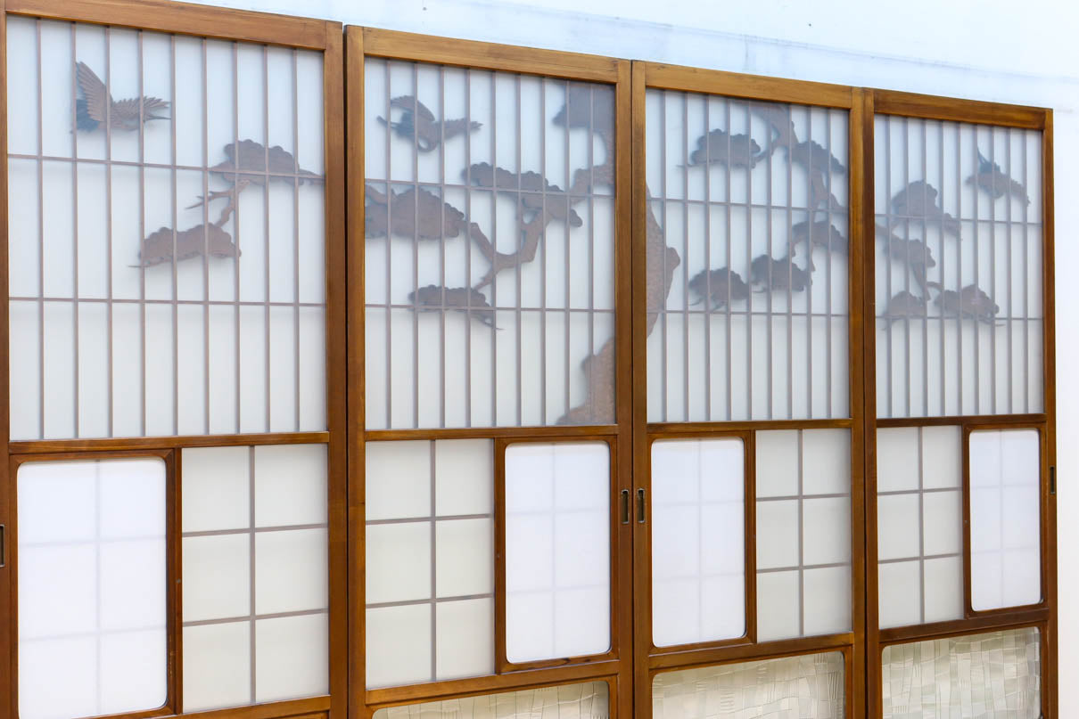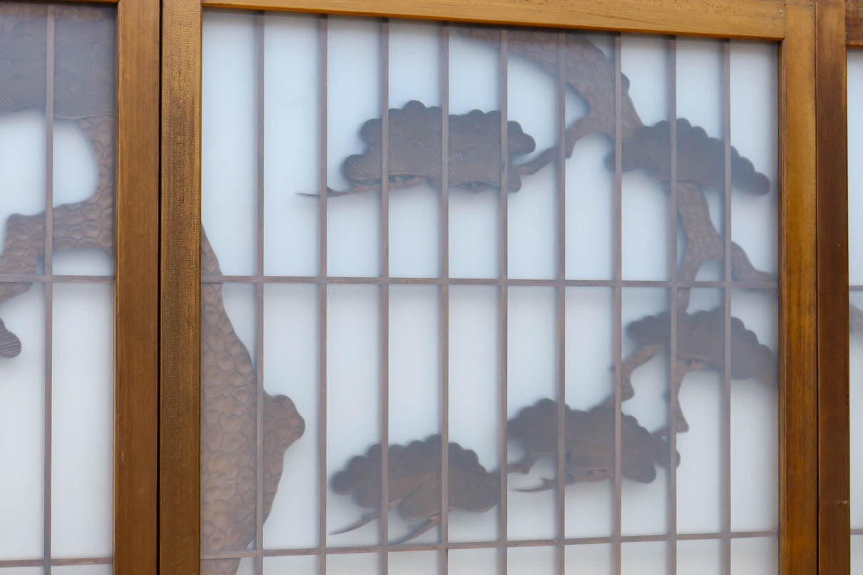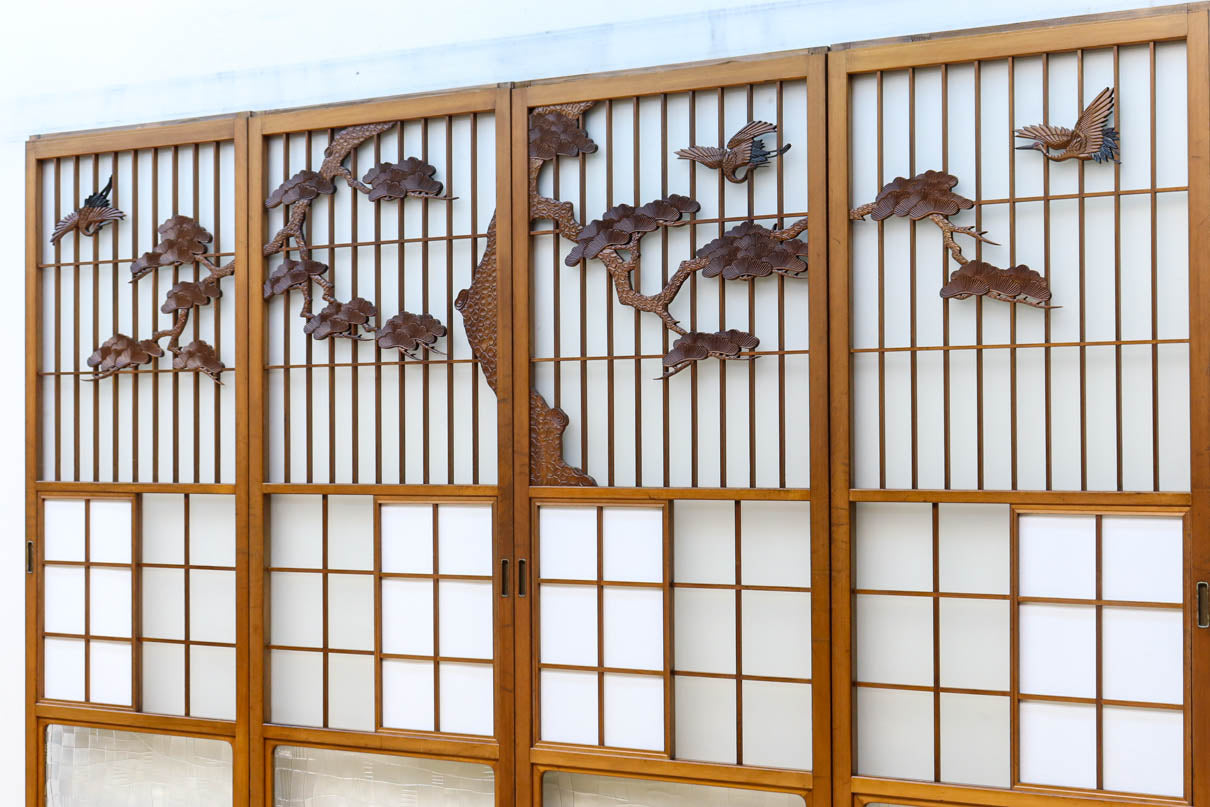 The pine landscape depicted over the four fittings is majestic, and the shoji screen fittings on the middle shelf are part of the scenery, giving it an elegant design that gives off a Japanese atmosphere.