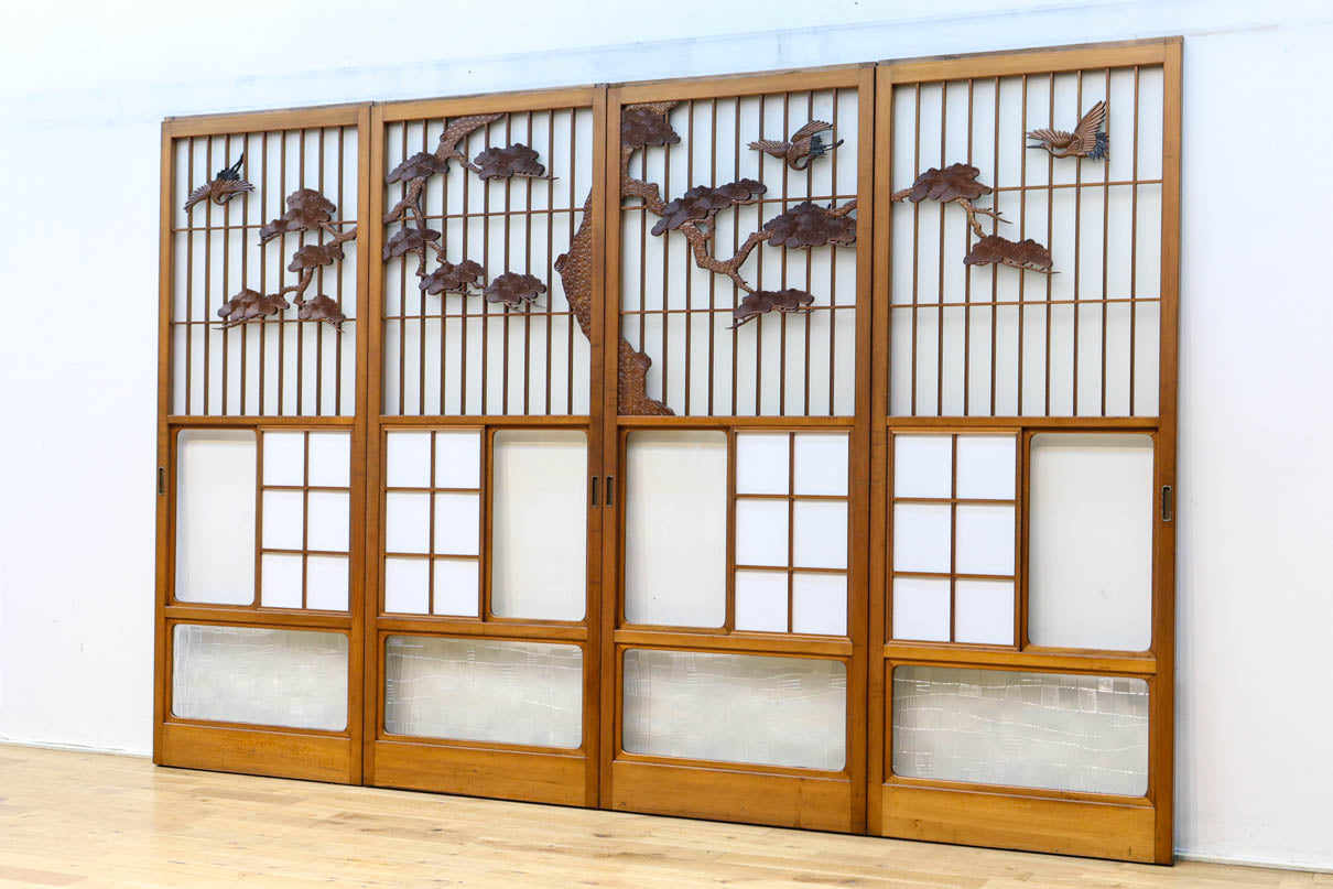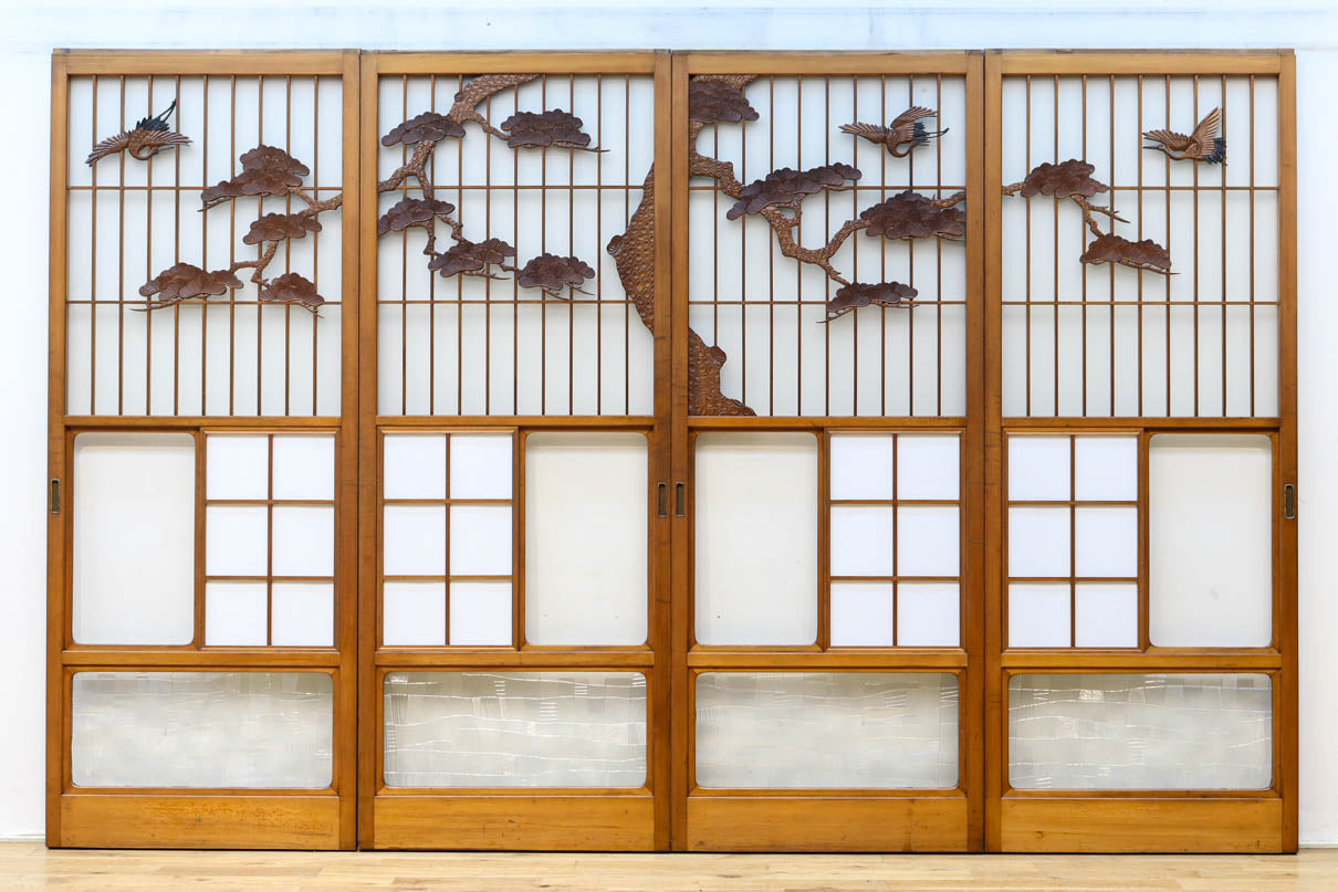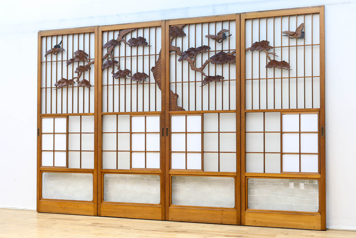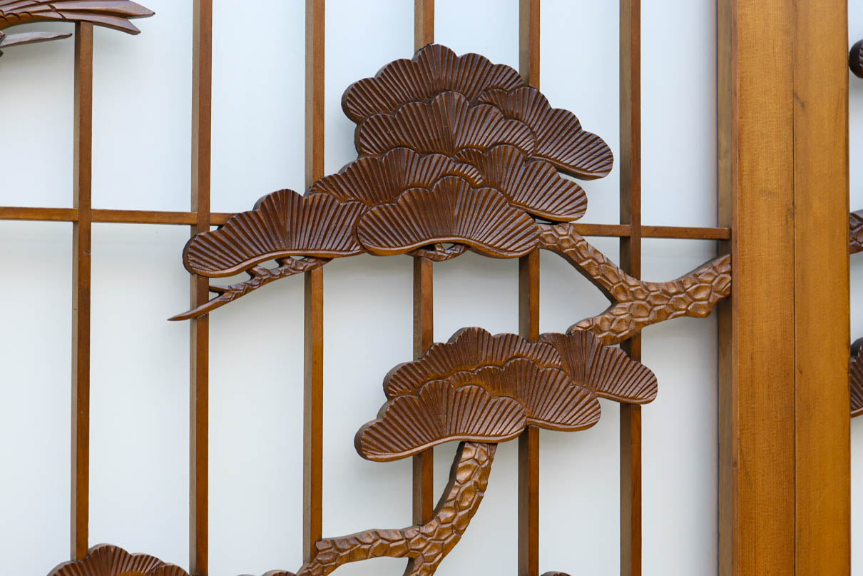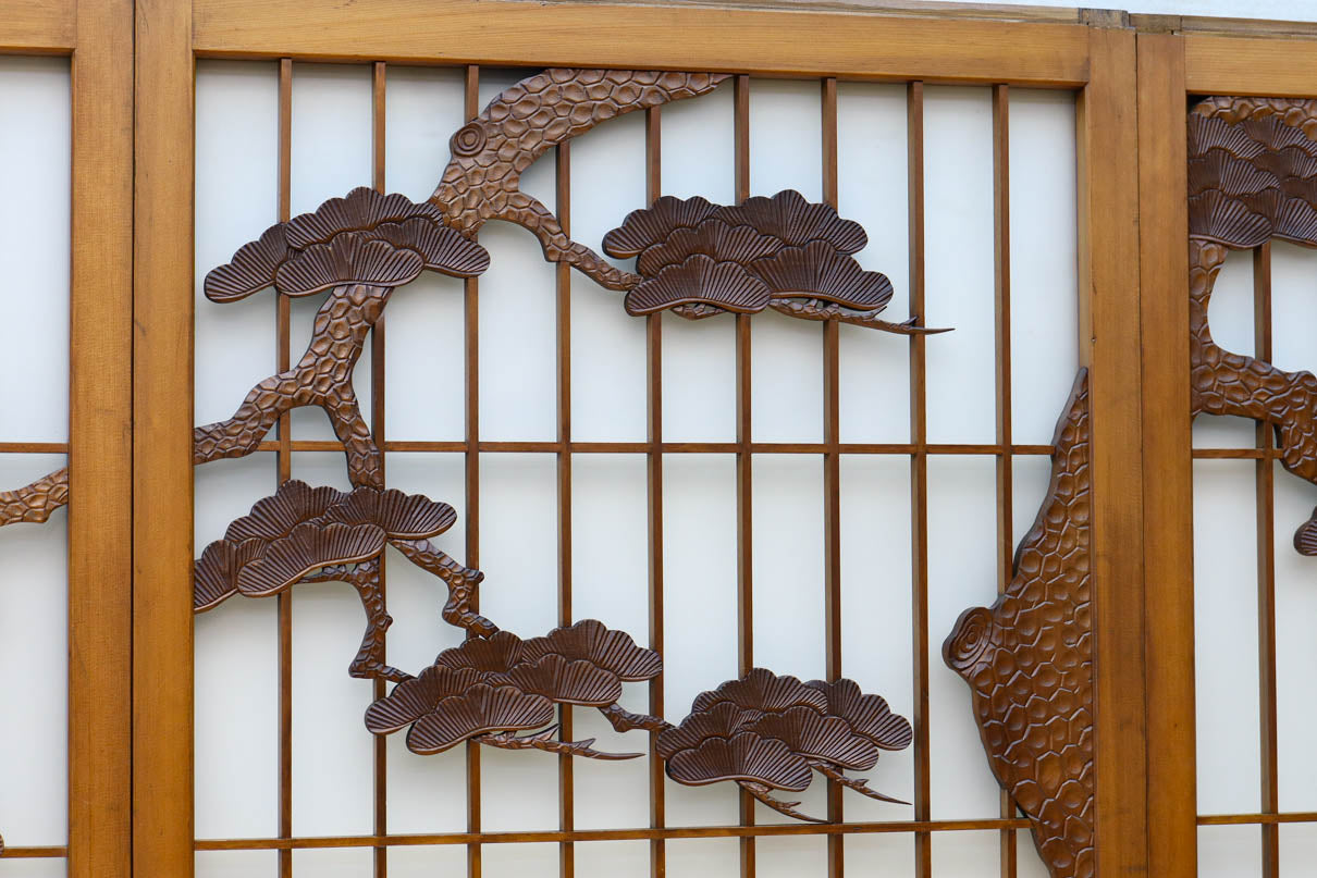 The pine landscape depicted over the four fittings is majestic, and the shoji screen fittings on the middle shelf are part of the scenery, giving it an elegant design that gives off a Japanese atmosphere.