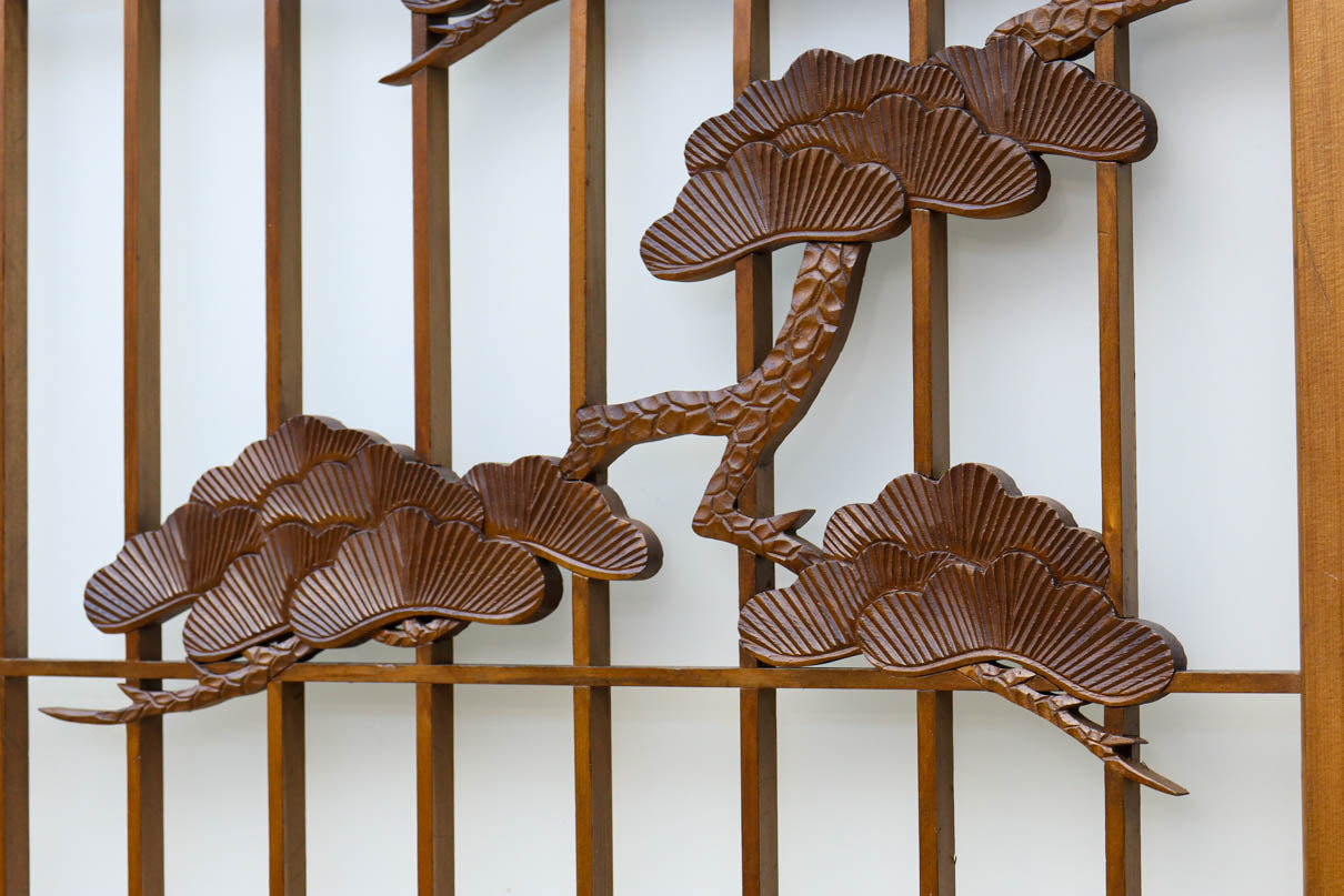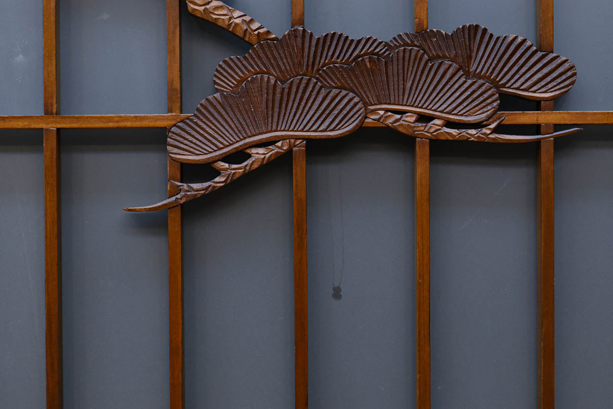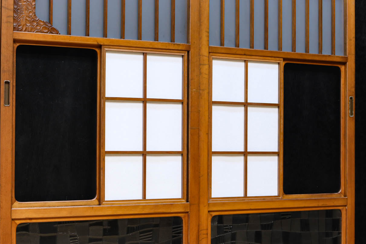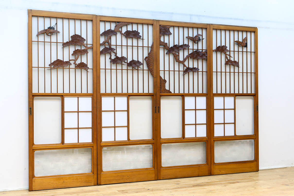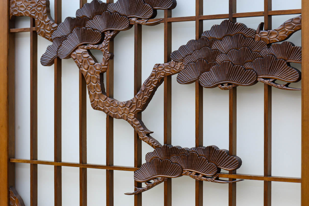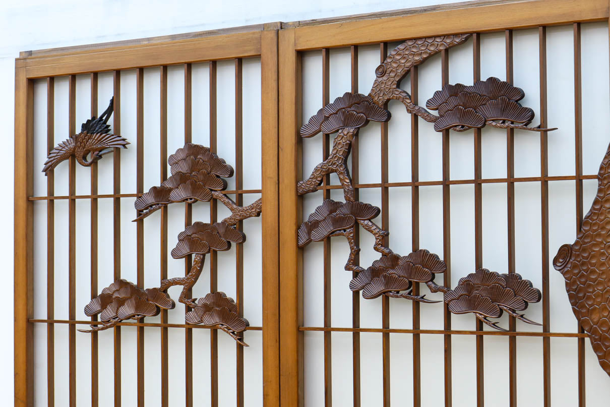 The pine landscape depicted over the four fittings is majestic, and the shoji screen fittings on the middle shelf are part of the scenery, giving it an elegant design that gives off a Japanese atmosphere.