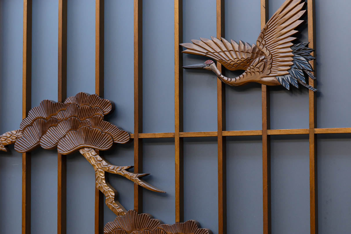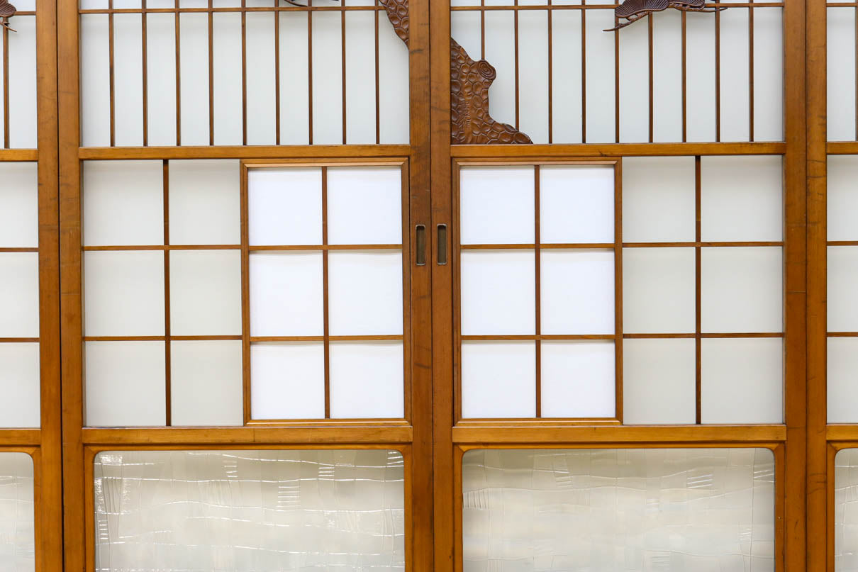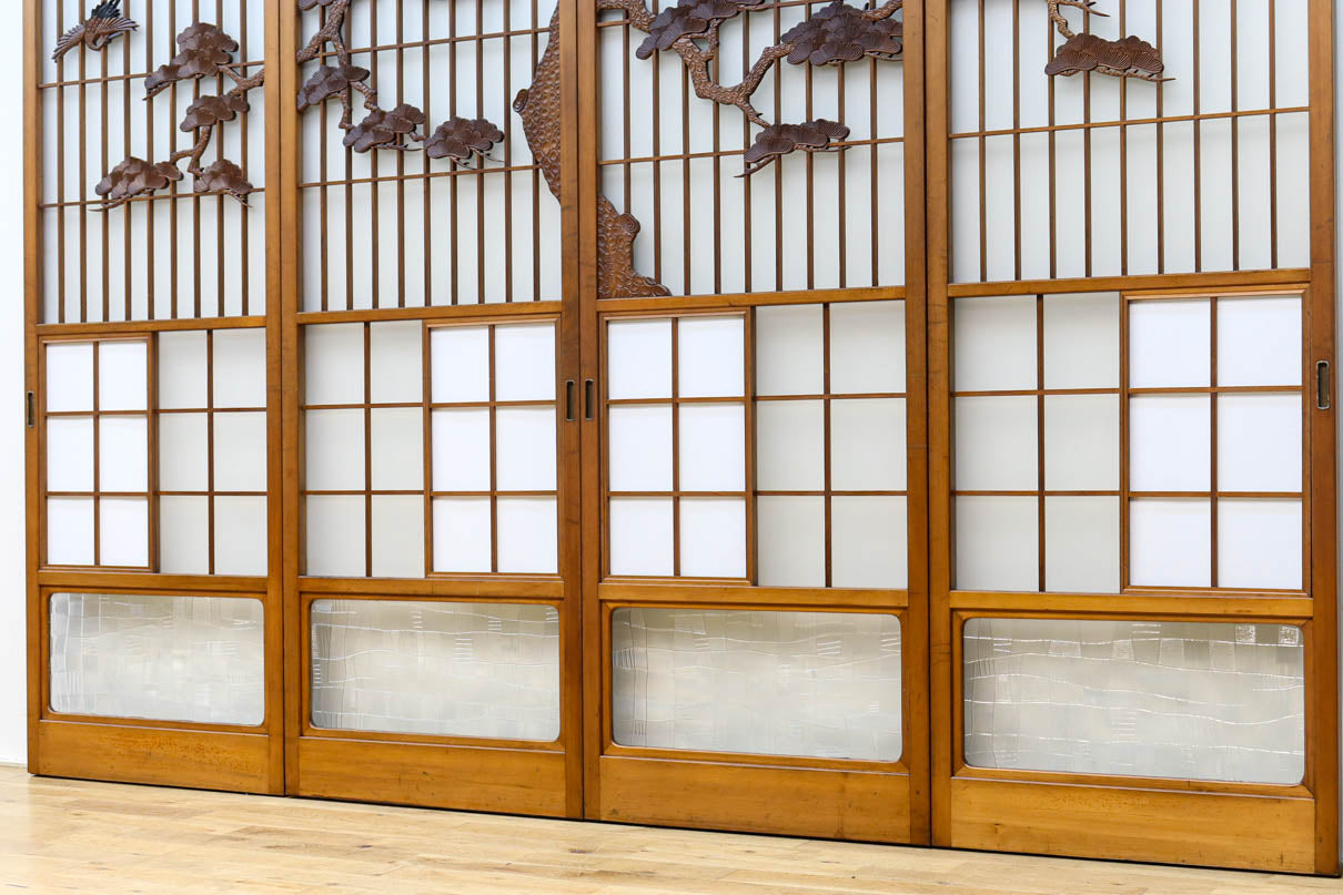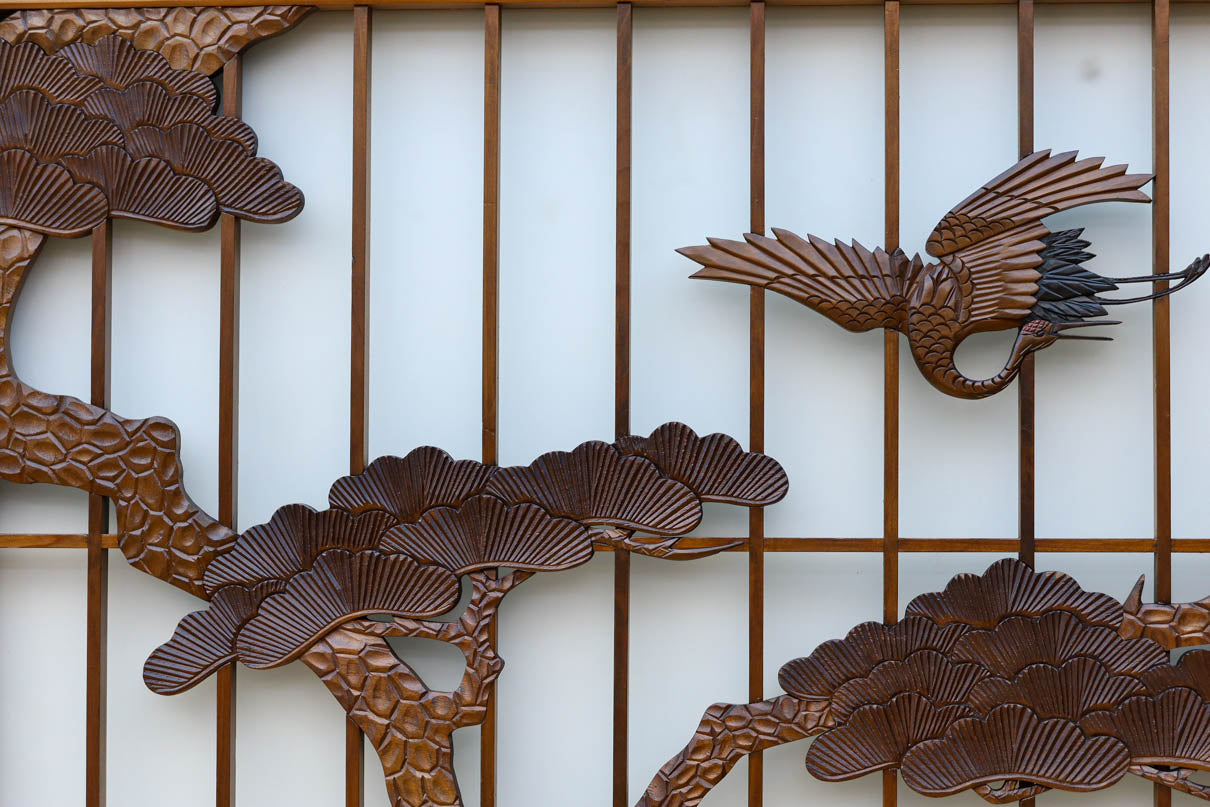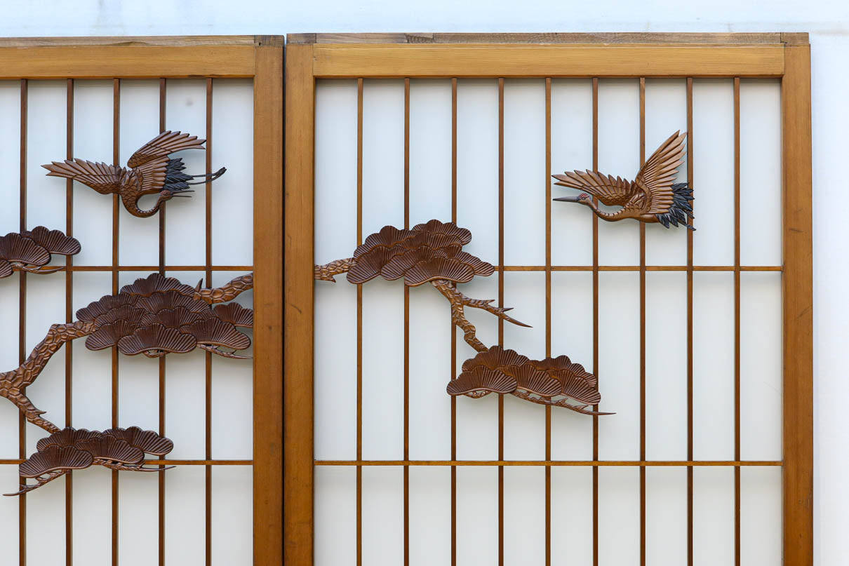 The pine landscape depicted over the four fittings is majestic, and the shoji screen fittings on the middle shelf are part of the scenery, giving it an elegant design that gives off a Japanese atmosphere.