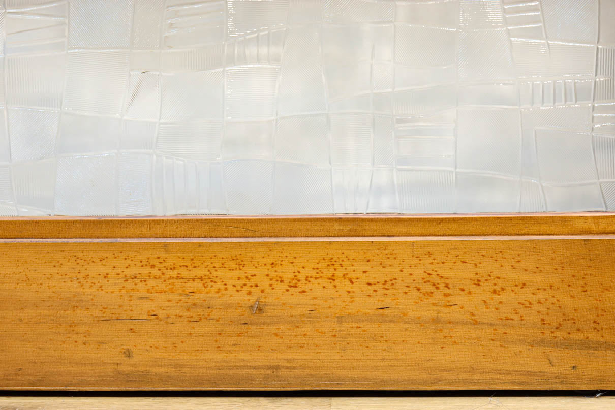 The gentle colour of the wood and the soft texture of the snug glass and warron are well-balanced.
