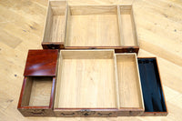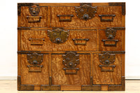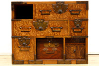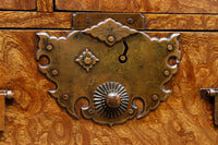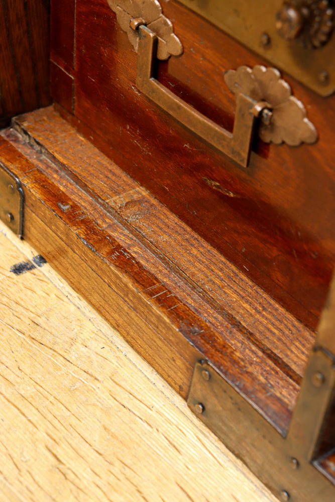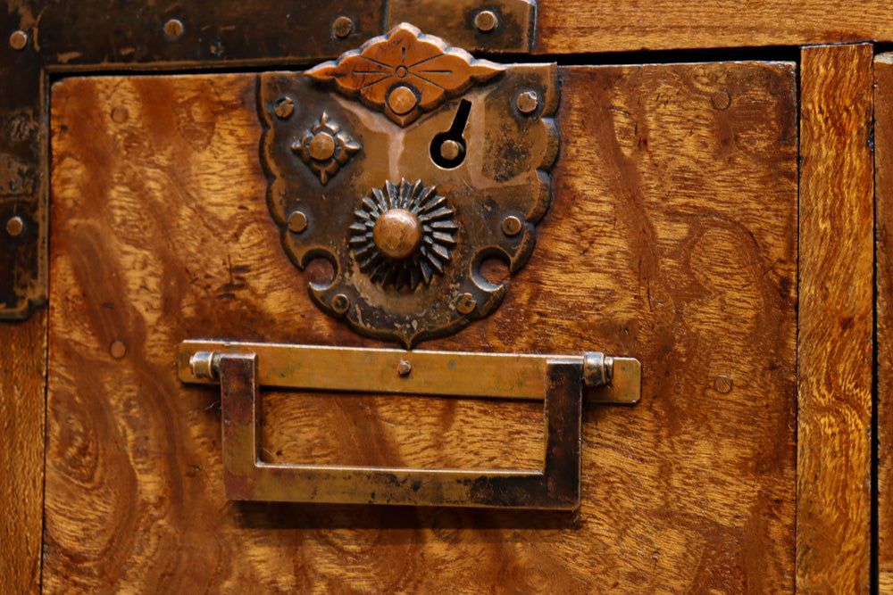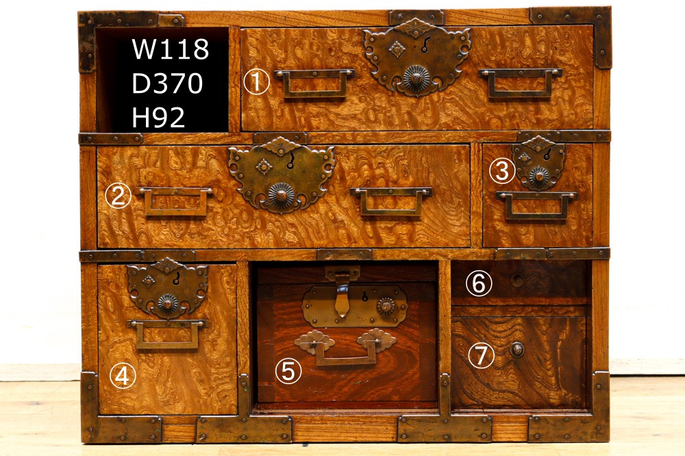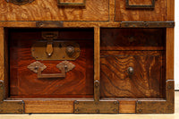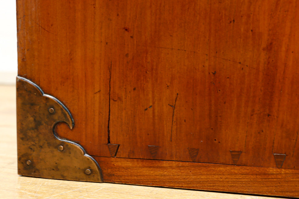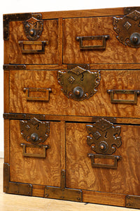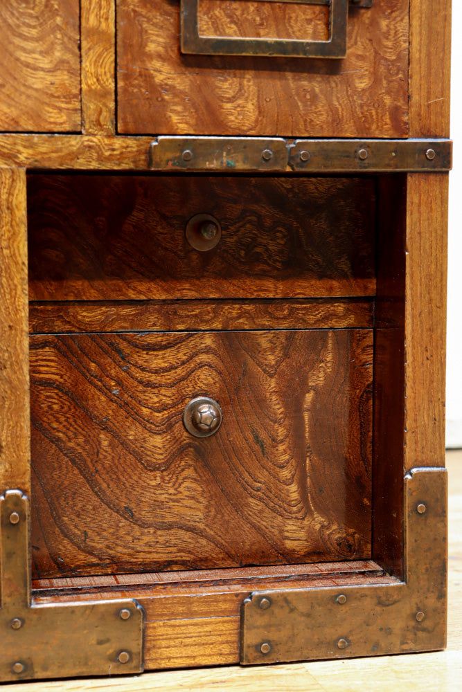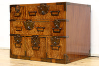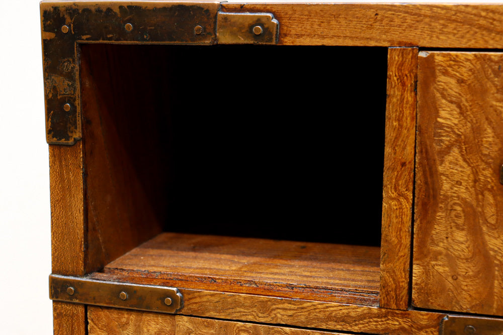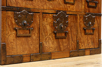 The high-quality zelkova grain, including beads, decorates the chest of drawers along with highly decorative metal fittings.
