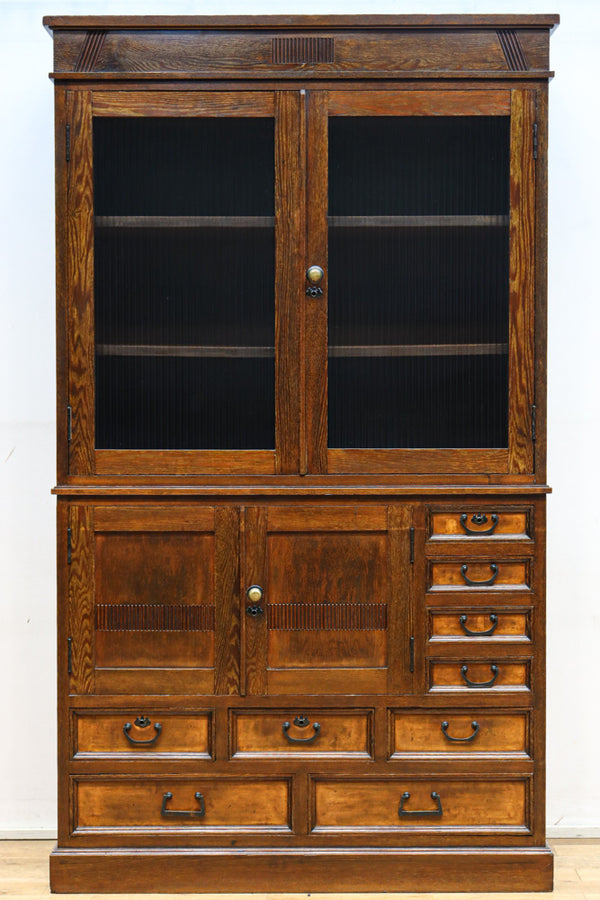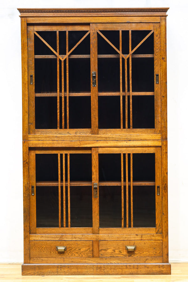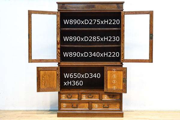 木地色に扉デザインも素敵なアールデコ調レトロガラスケース BB3248
