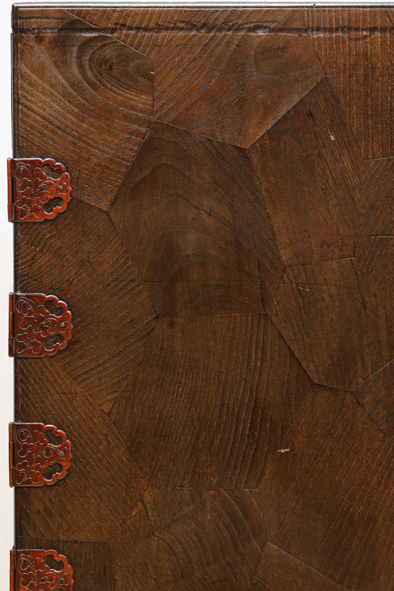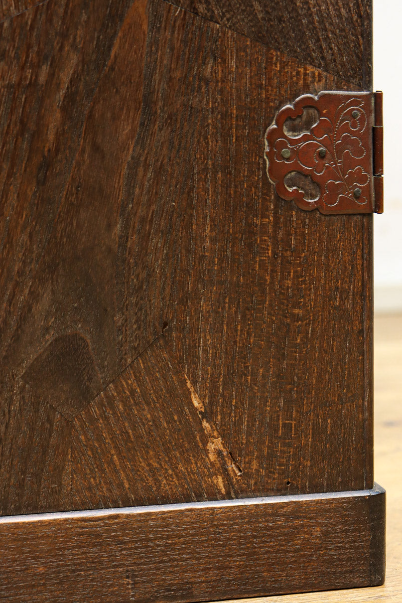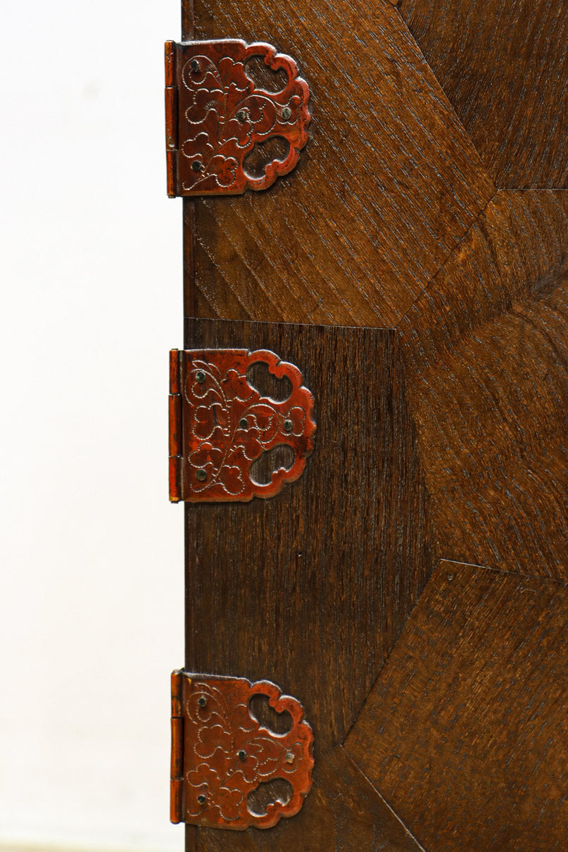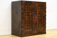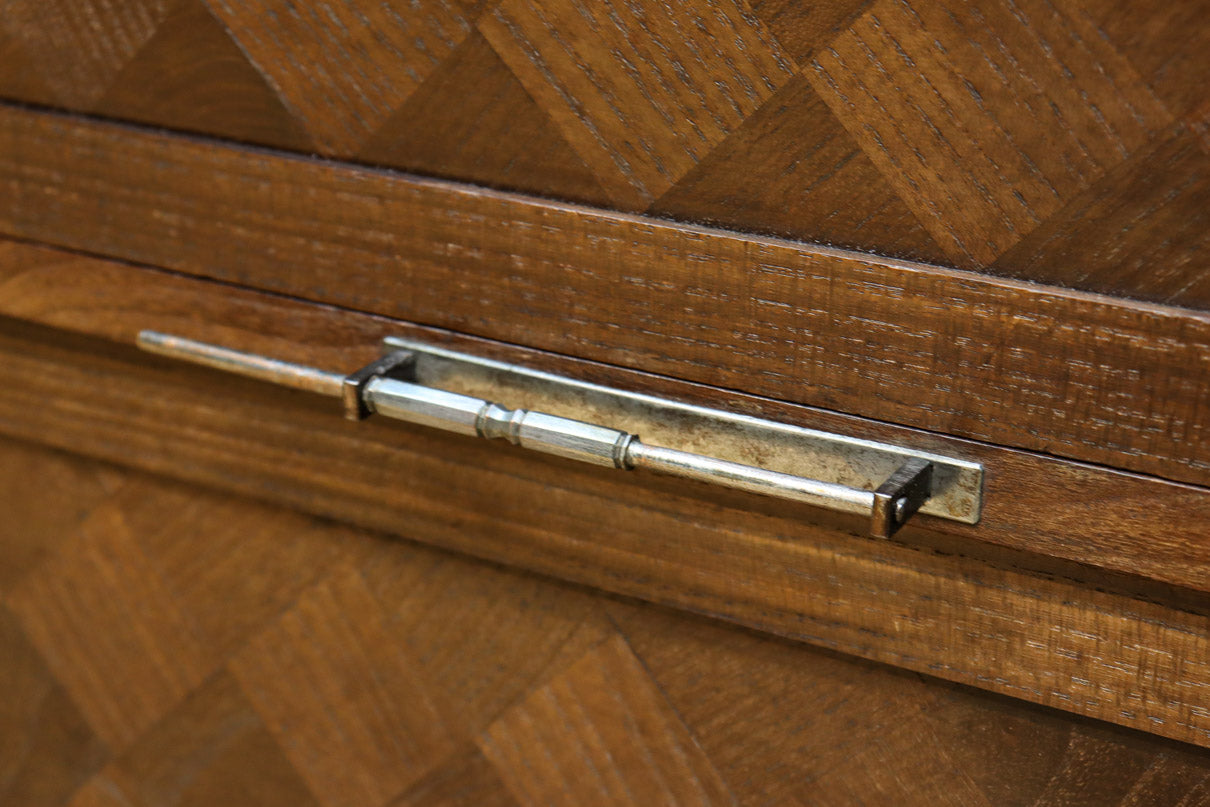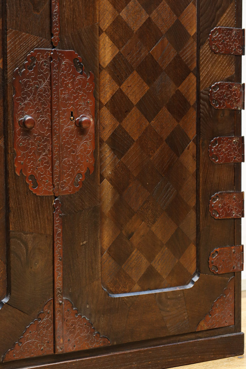 The parquet is decorated with elegant decorative hardware and pull handle hardware with a slightly vermilion-like texture, making it a small chest of drawers with a high degree of interior design, along with the shades of color.