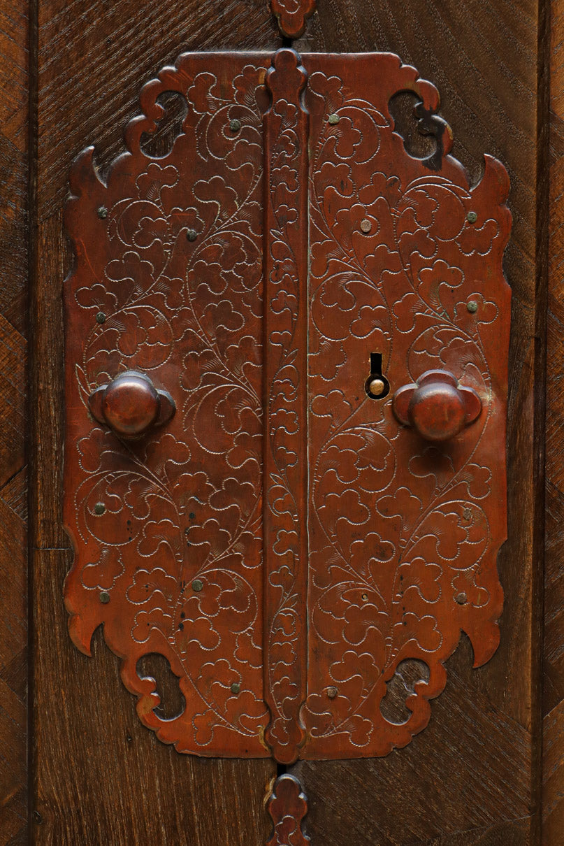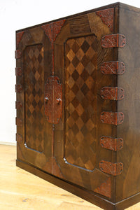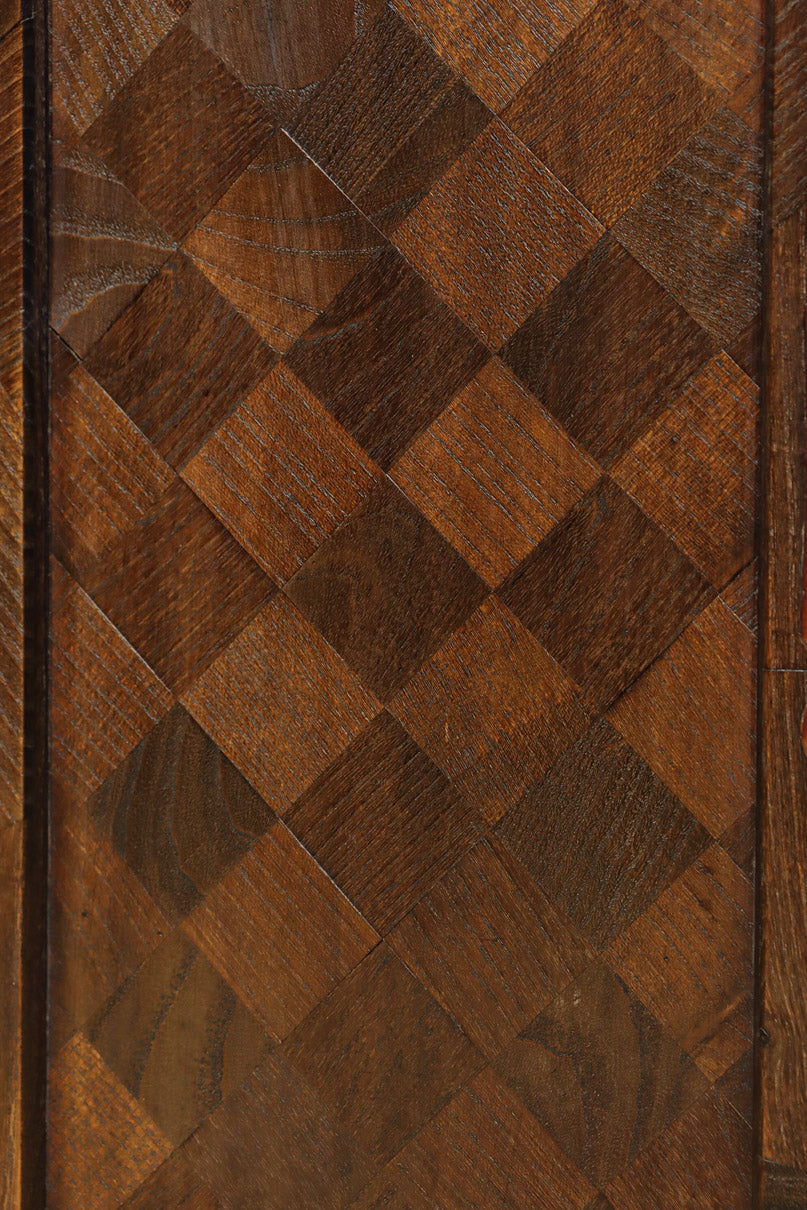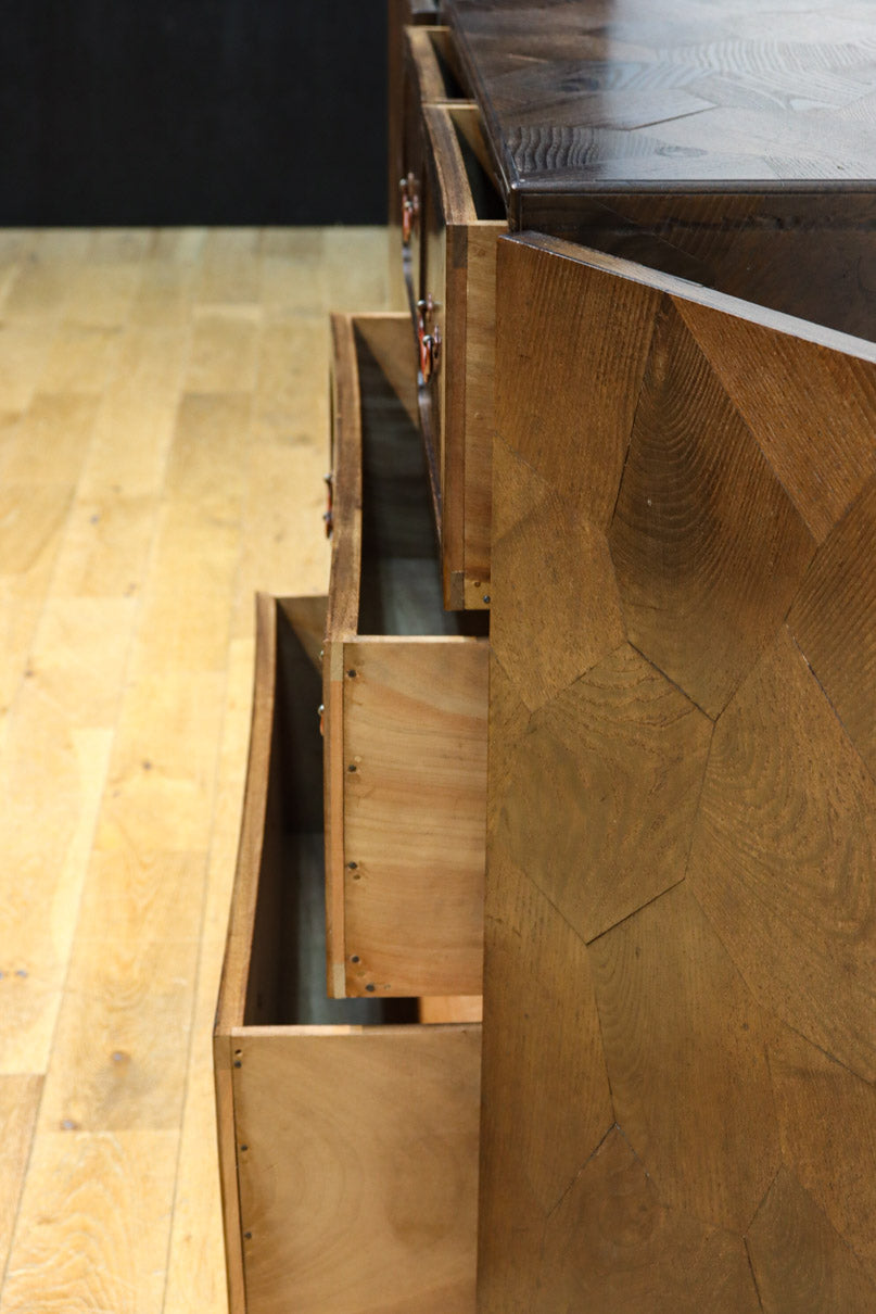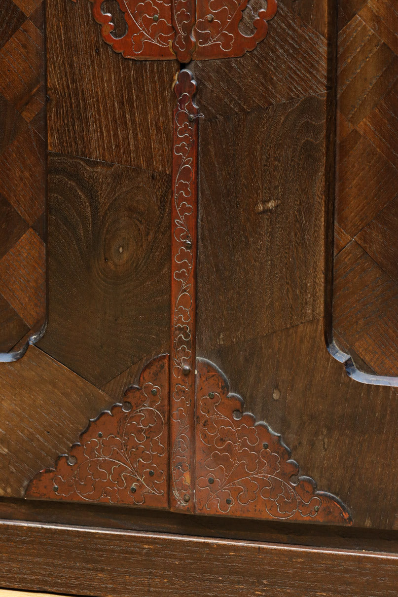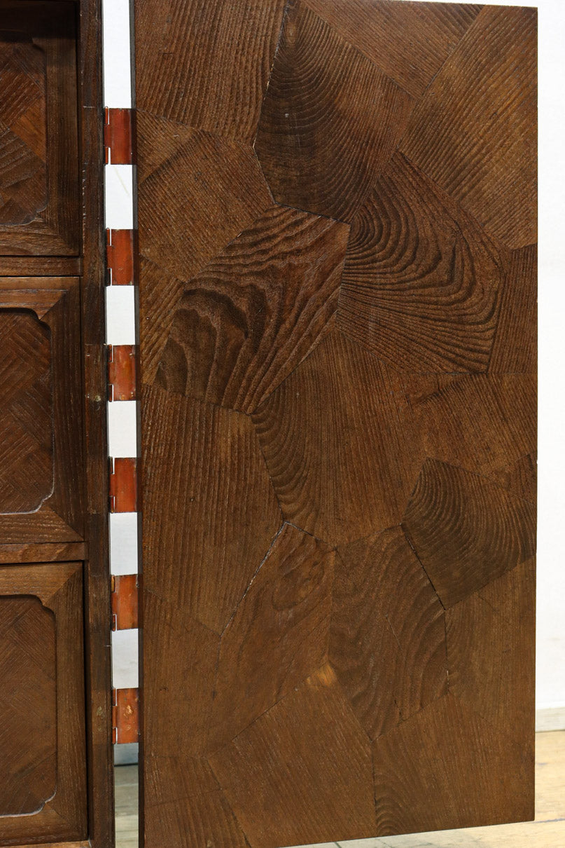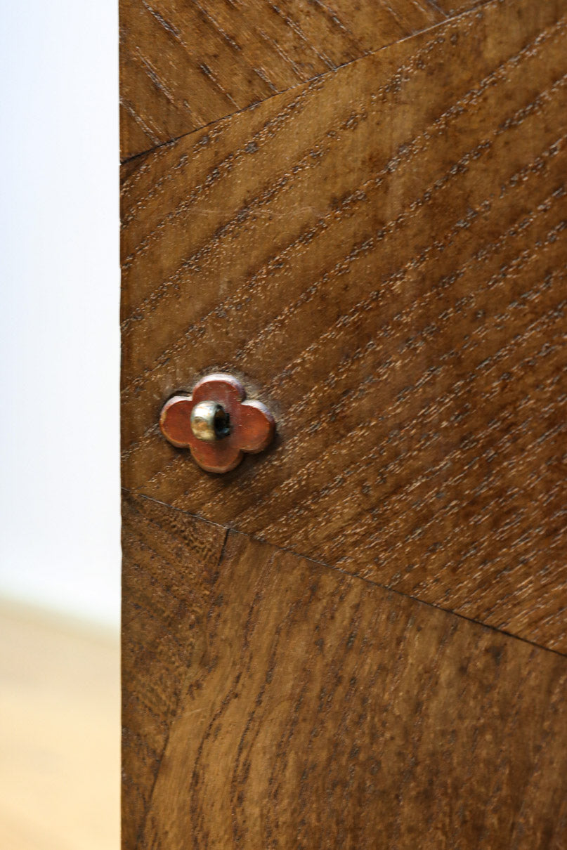 The parquet is decorated with elegant decorative hardware and pull handle hardware with a slightly vermilion-like texture, making it a small chest of drawers with a high degree of interior design, along with the shades of color.
