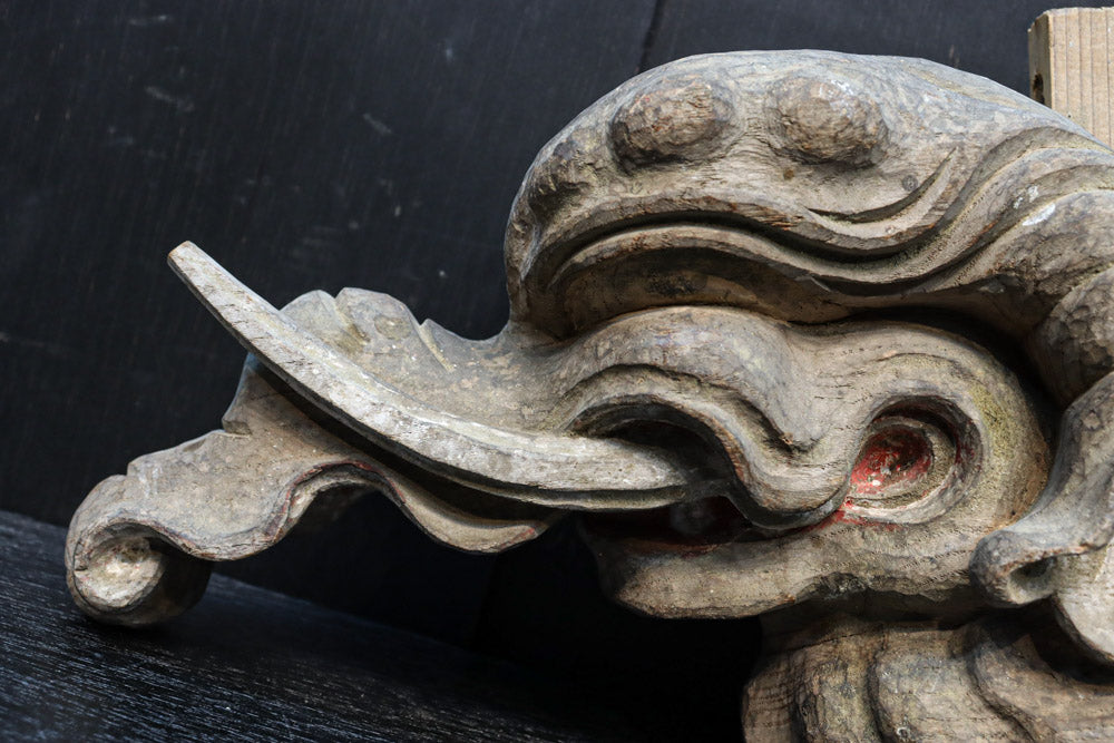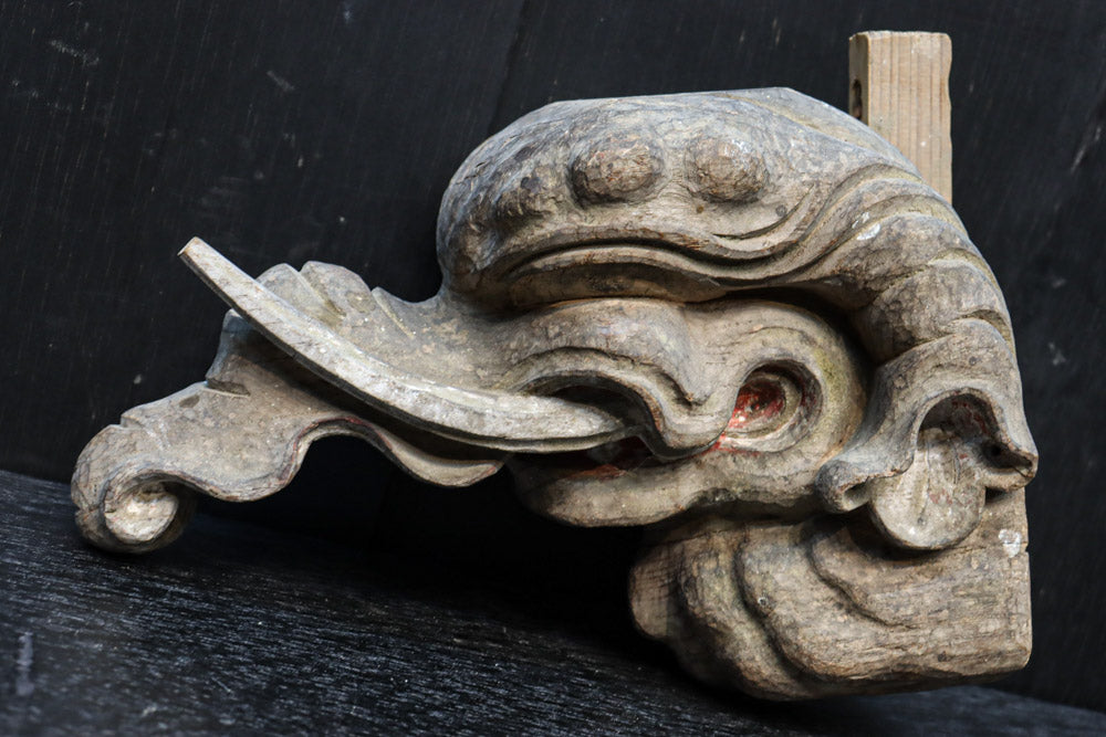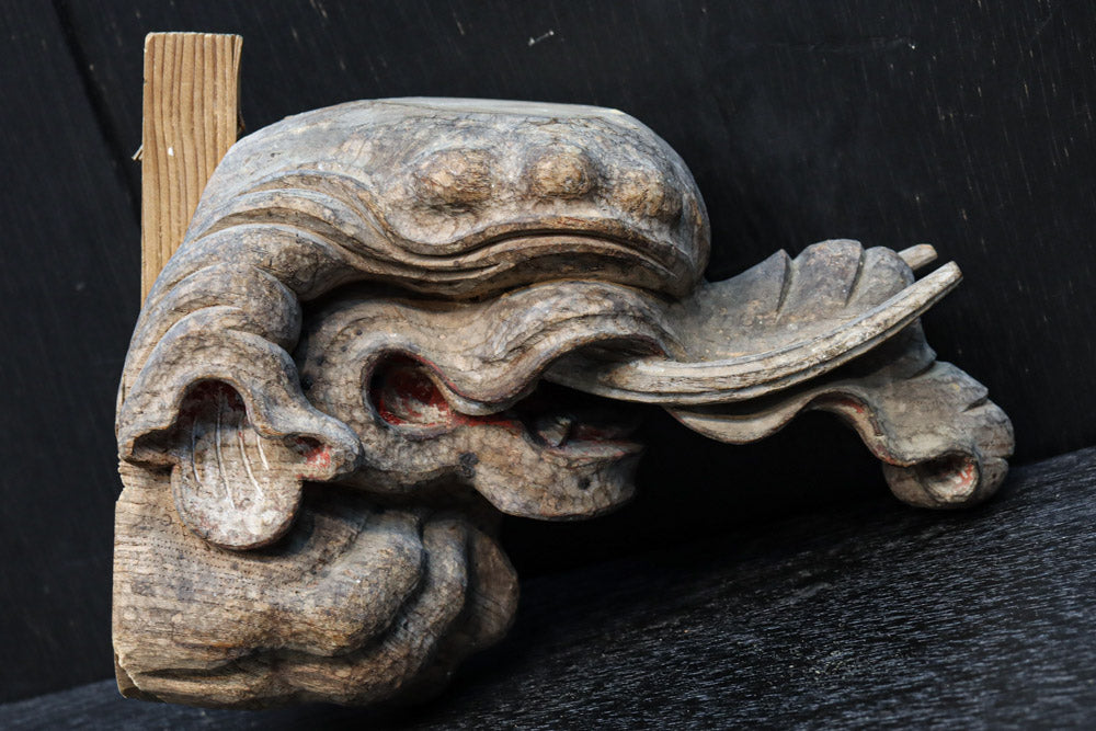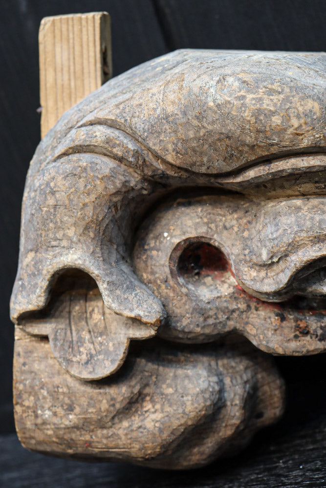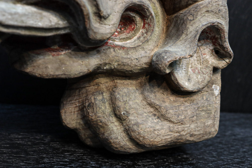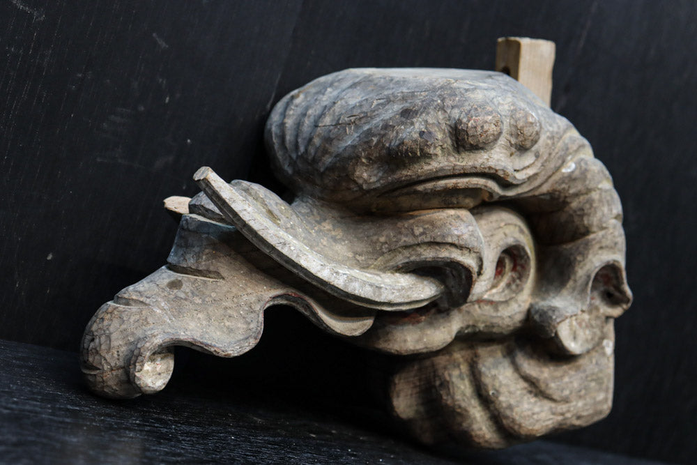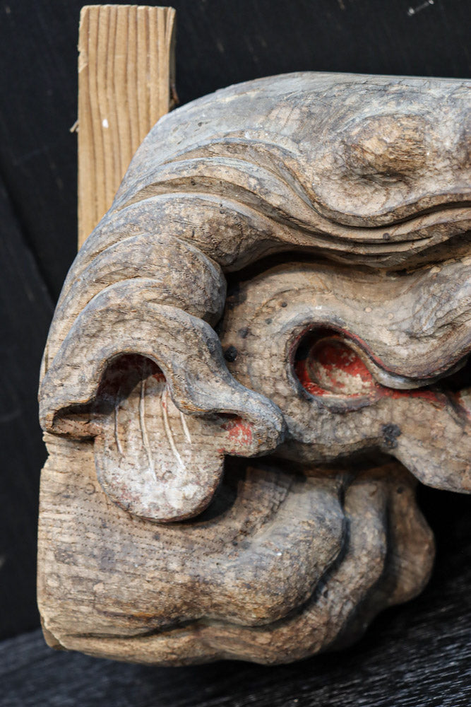 Despite his impressive fangs, he also has a gentle expression reminiscent of an old man with a Noh mask.