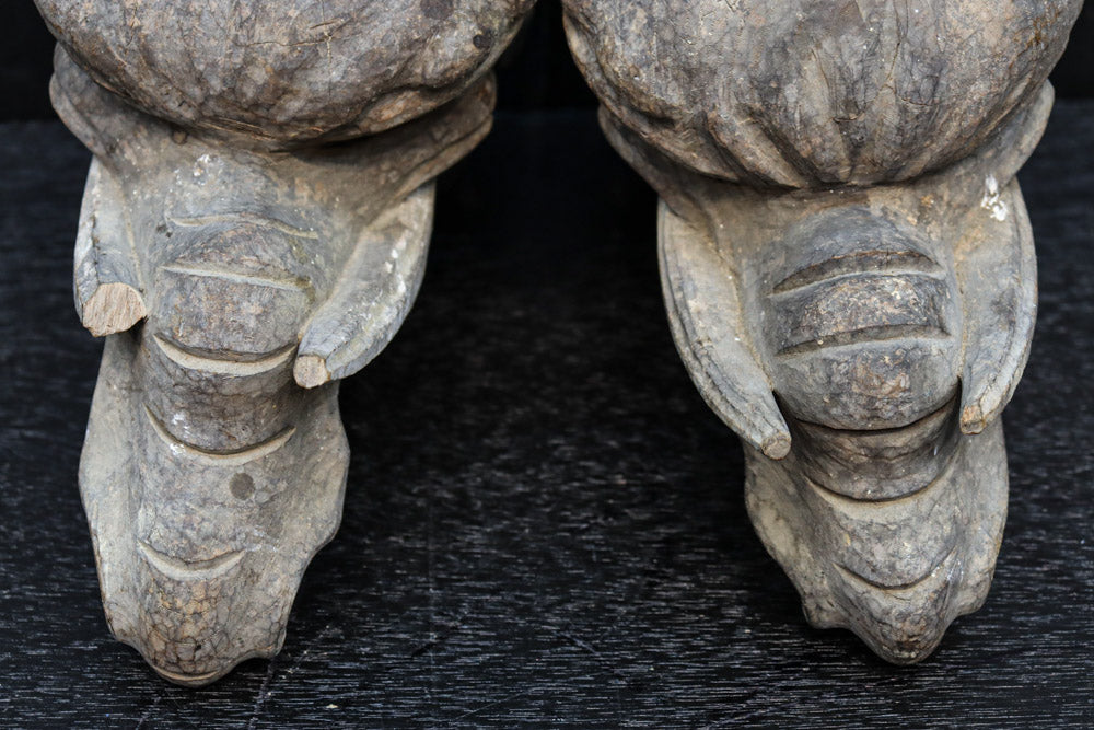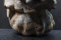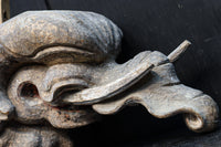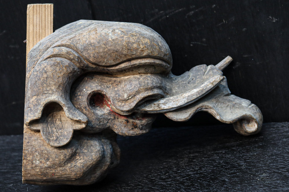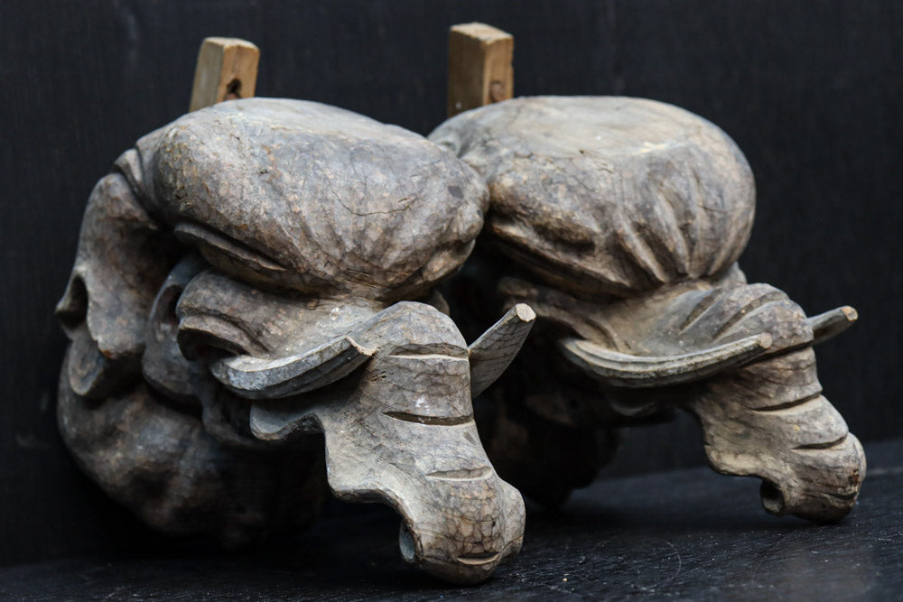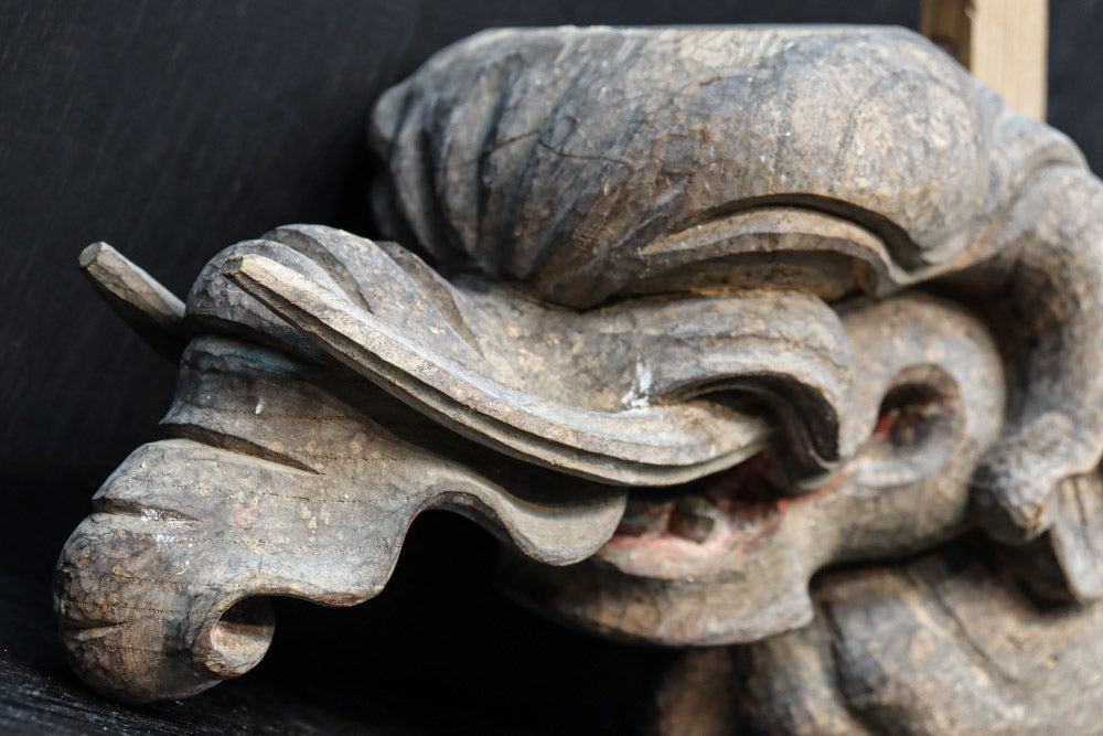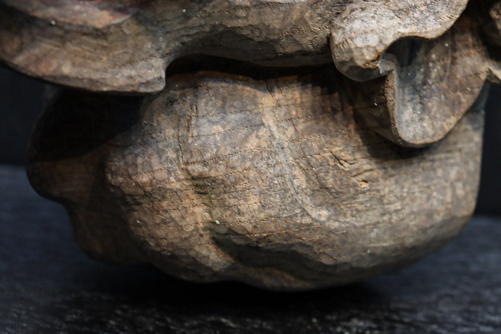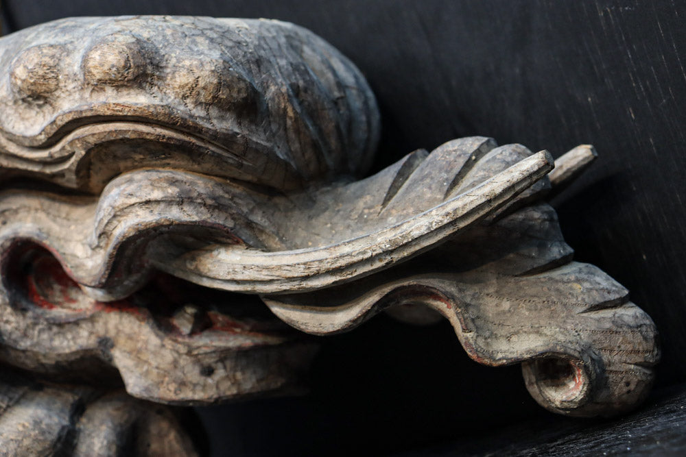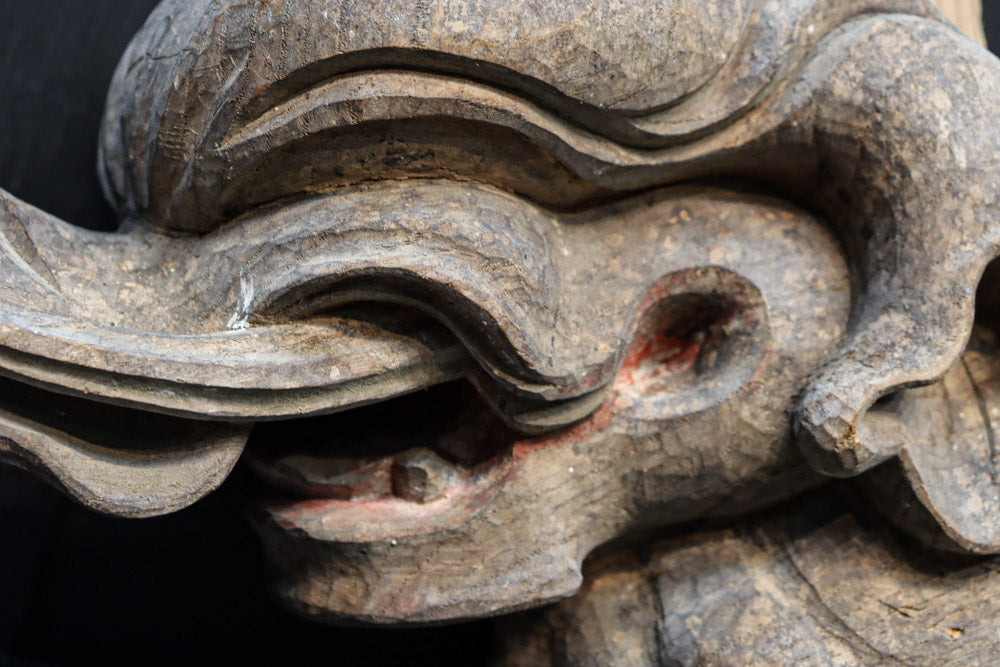 Despite his impressive fangs, he also has a gentle expression reminiscent of an old man with a Noh mask.