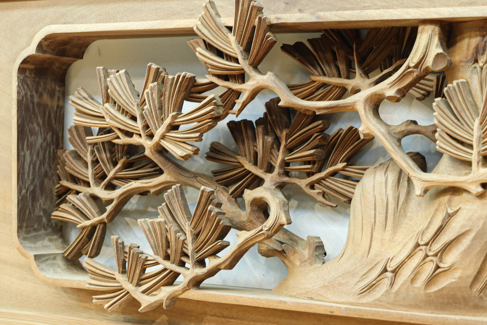 The design is carefully carved and gives it a distinctive three-dimensional look.