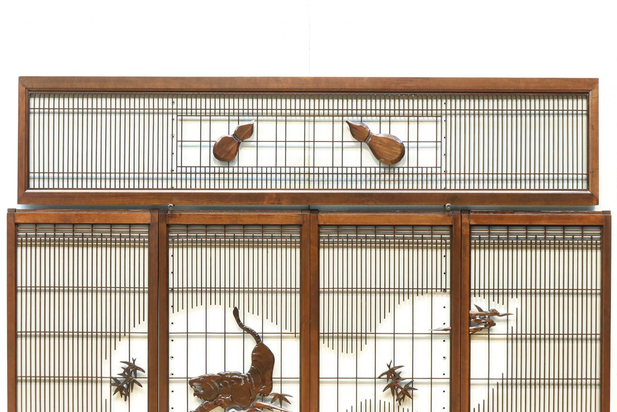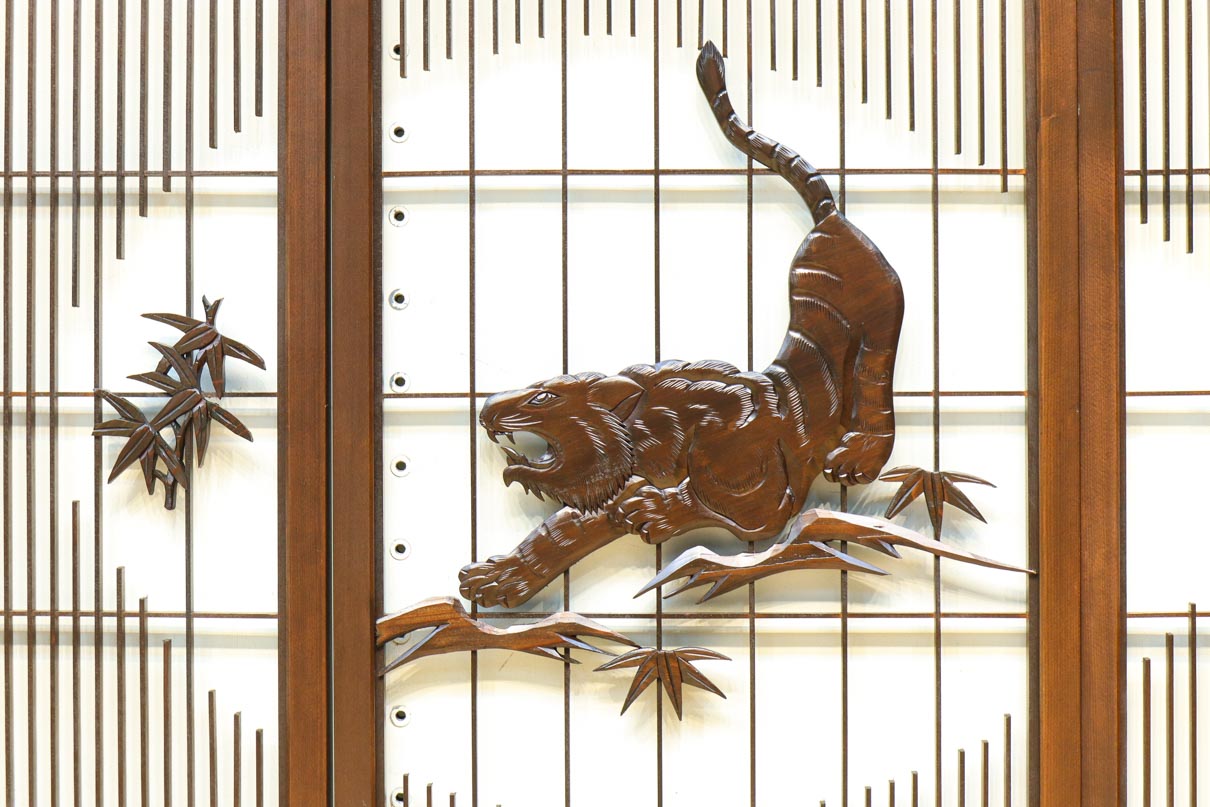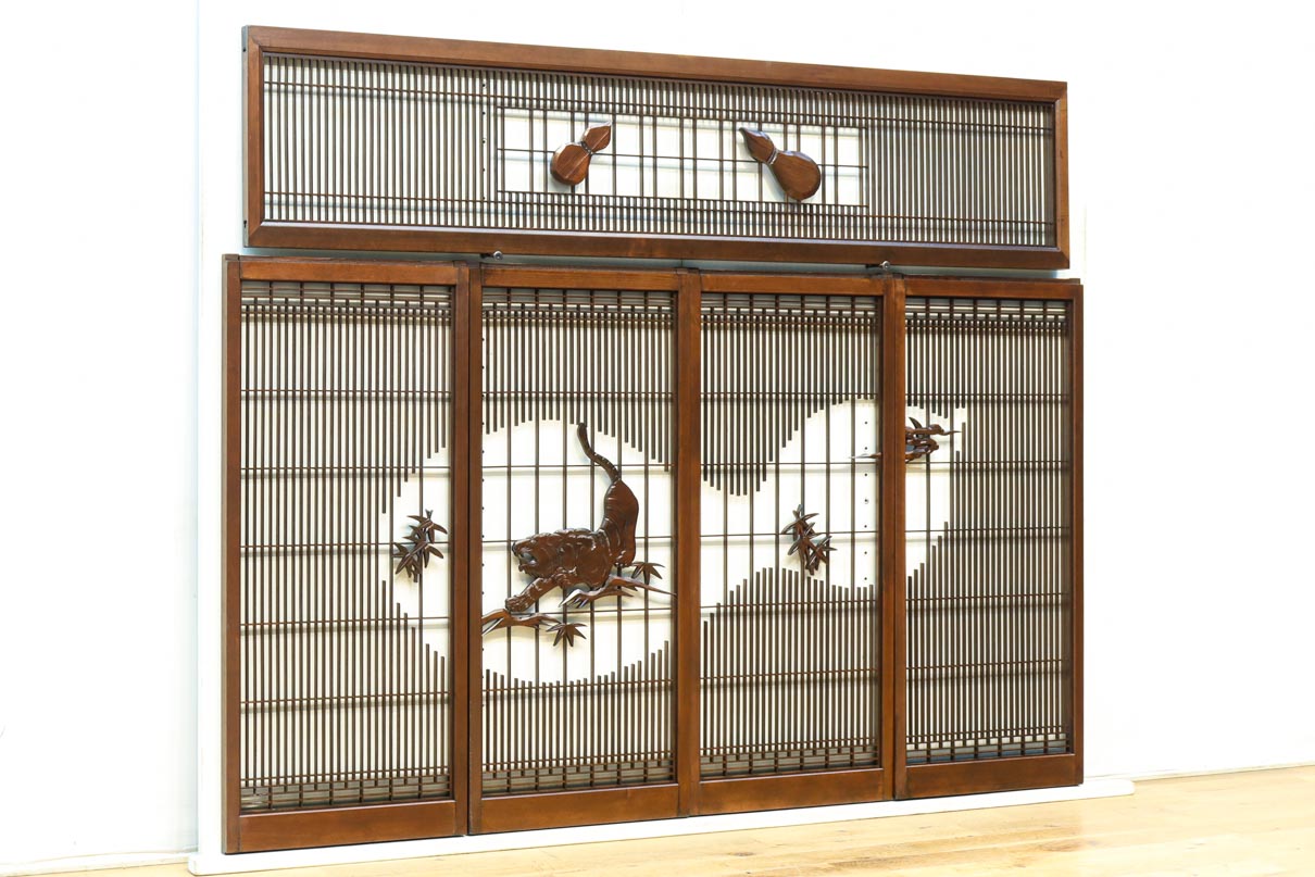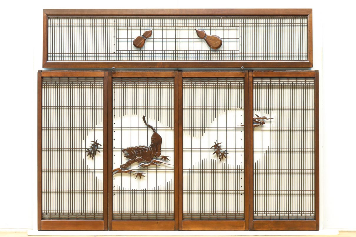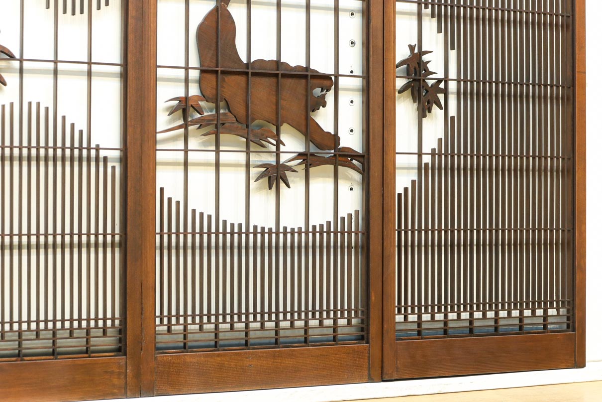 This is a set of four Shoin pieces decorated with majestic tiger and bamboo window paintings.